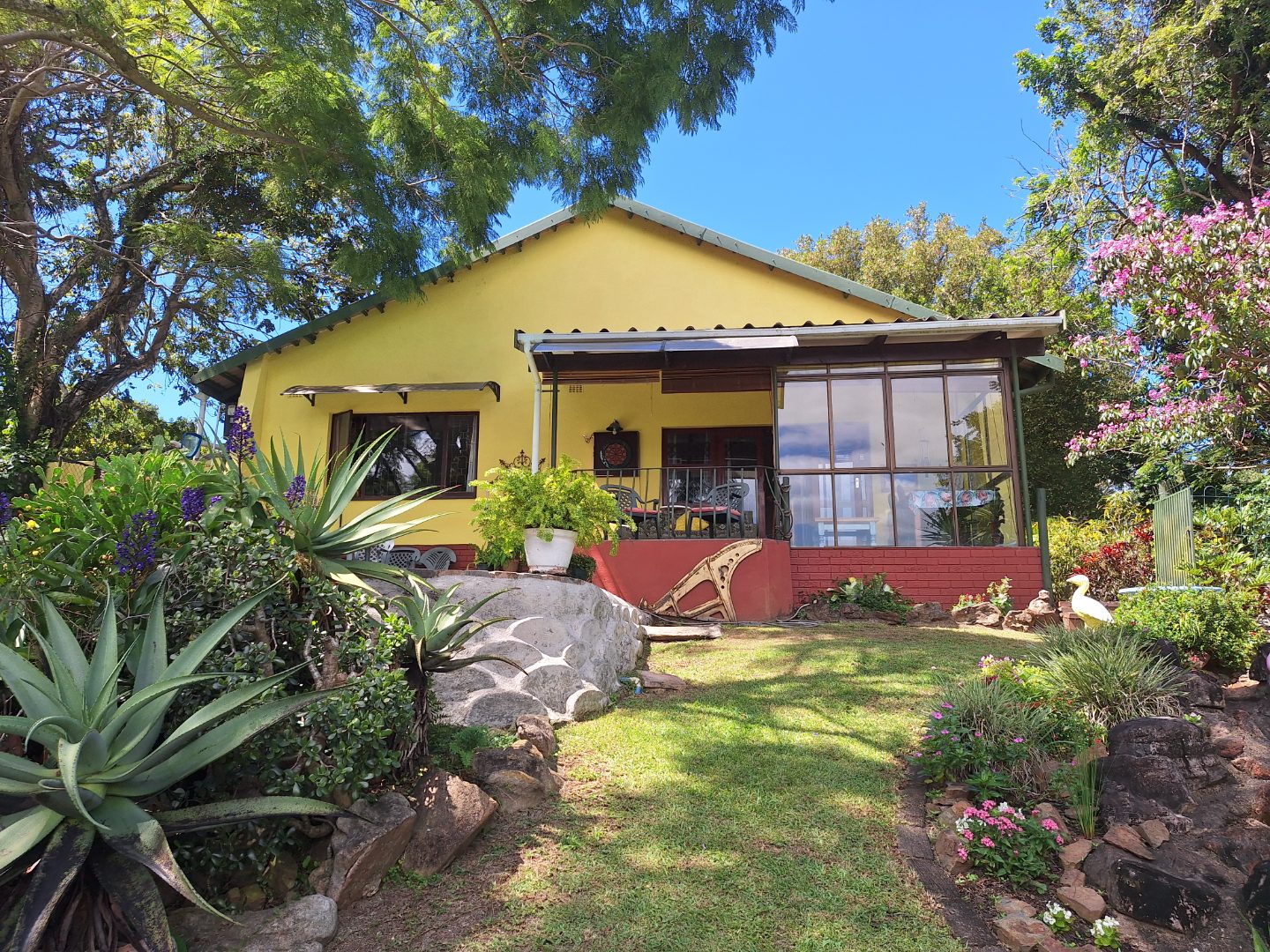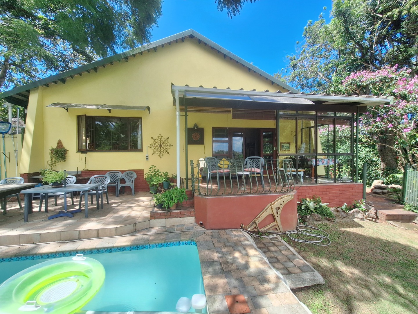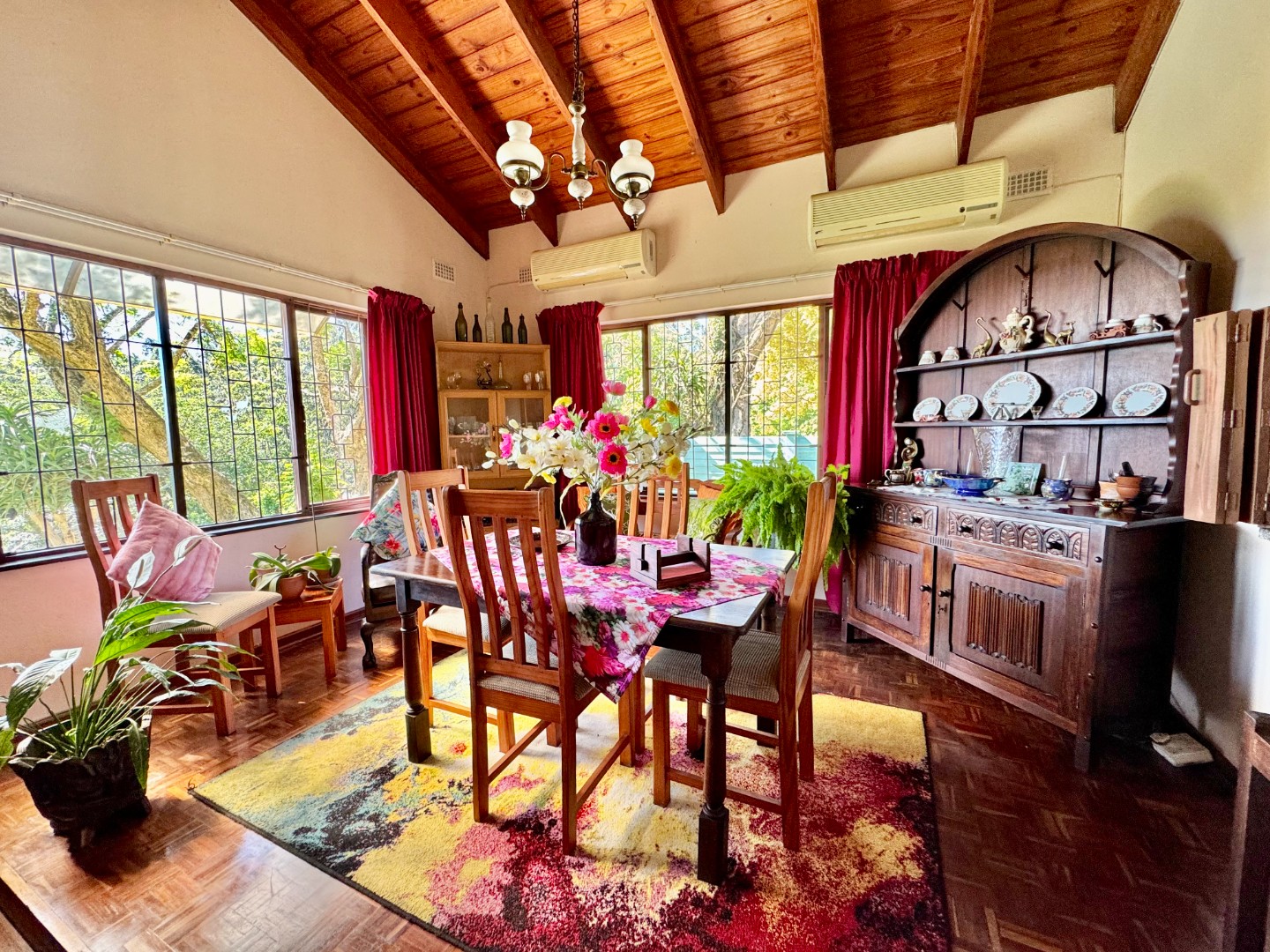 This enchanting farm-style home in Umtentweni is nestled among lush trees and vibrant vegetation, offering peaceful living with gentle river views. Boasting 3 bedrooms and 2 bathrooms, the home blends rustic charm with modern convenience, featuring unique character elements throughout. It comes equipped with a backup inverter, a reliable water supply fed by pumped JoJo tanks, an outside laundry and staff toilet, plus a single lock-up garage with additional secure parking for up to four vehicles.