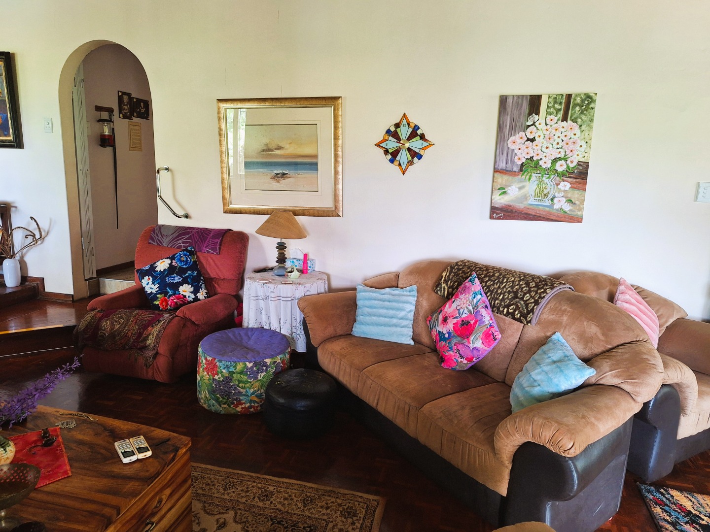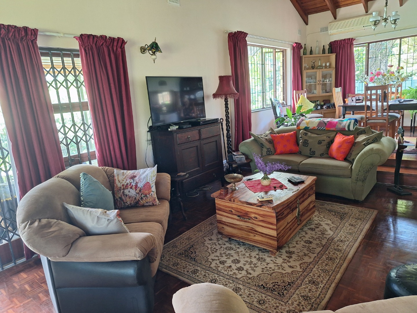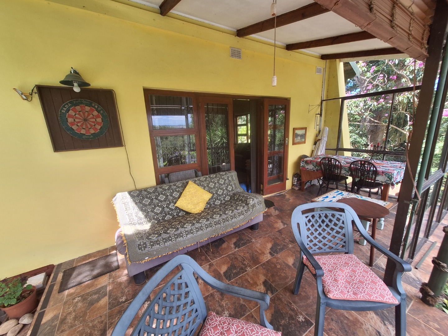 This enchanting farm-style home in Umtentweni is nestled among lush trees and vibrant vegetation, offering peaceful living with gentle river views. Boasting 3 bedrooms and 2 bathrooms, the home blends rustic charm with modern convenience, featuring unique character elements throughout. It comes equipped with a backup inverter, a reliable water supply fed by pumped JoJo tanks, an outside laundry and staff toilet, plus a single lock-up garage with additional secure parking for up to four vehicles.