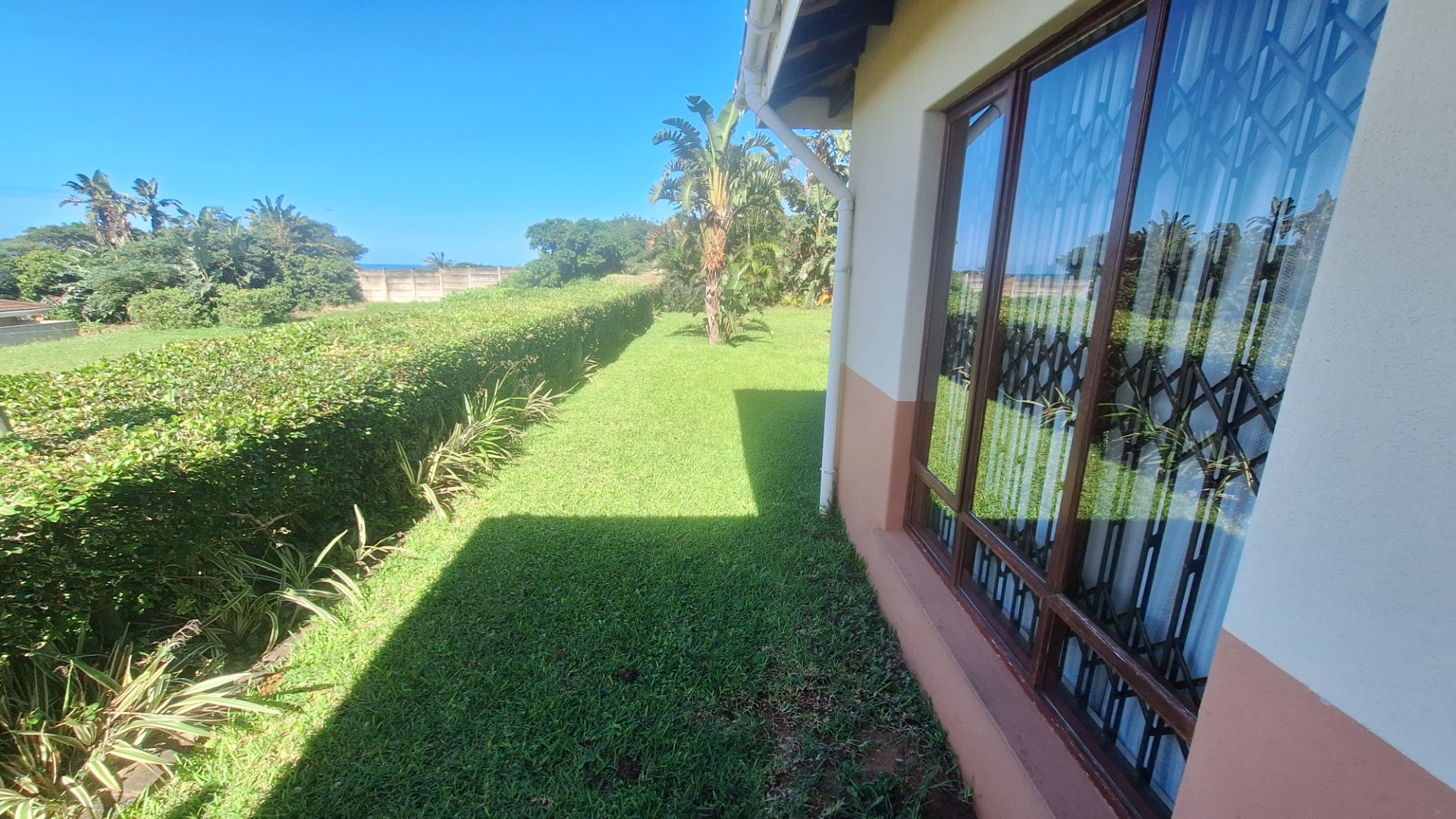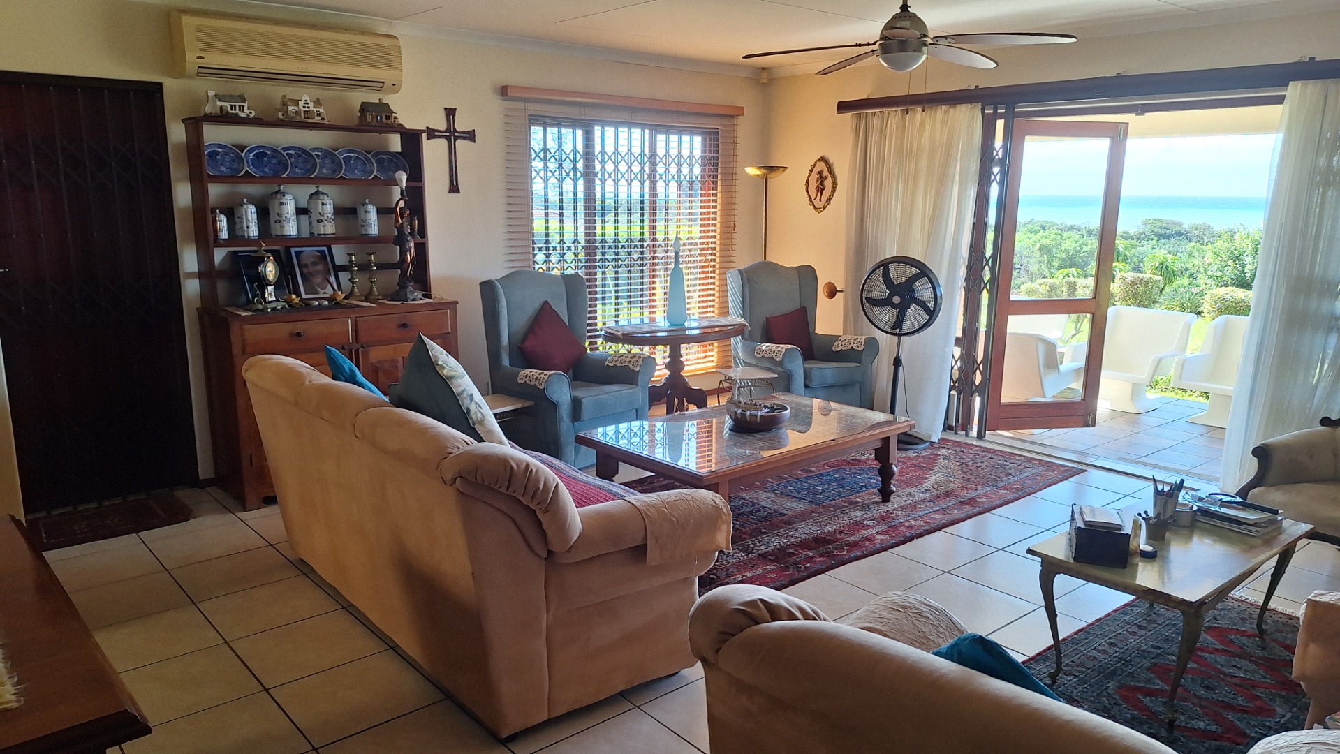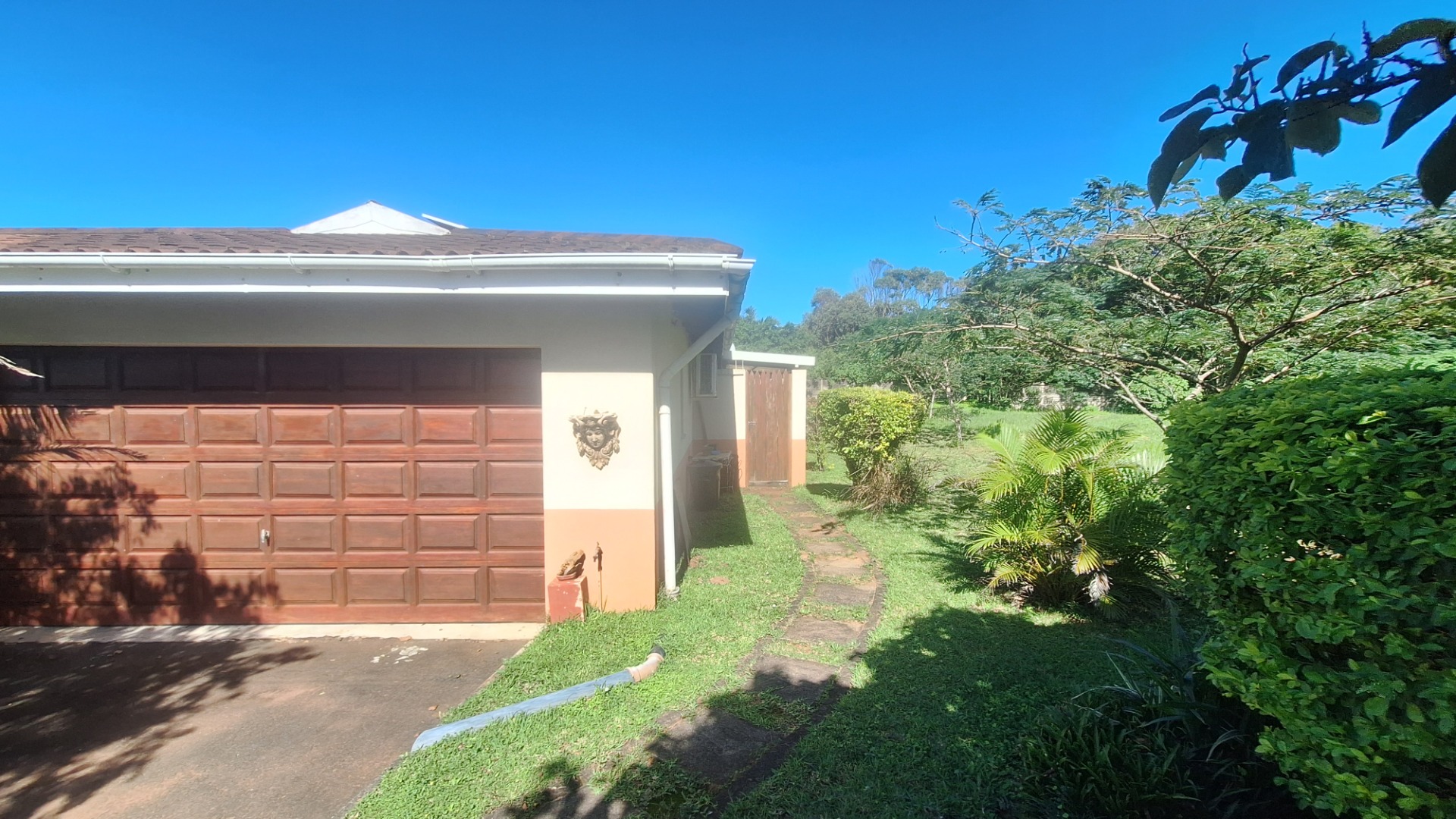 This 3 bedroom townhouse is situated a short distance from the Umtentweni beach, close to shops and a 4km drive to the nearest hospital and schools. Tiled throughout, with a lovely seaview from the patio and lounge area. Open plan concept with kitchen and lounge area, the kitchen has granit tops, eye level oven and plenty of cupboard space. The garage has direct access into the lounge, all three bedrooms are tiled have built in cupboards and aircon in 2 of them. The main bedroom is large and has an en-suite bathoom. There is a covered back patio that is currentl a small oasis with plants and a water feature.