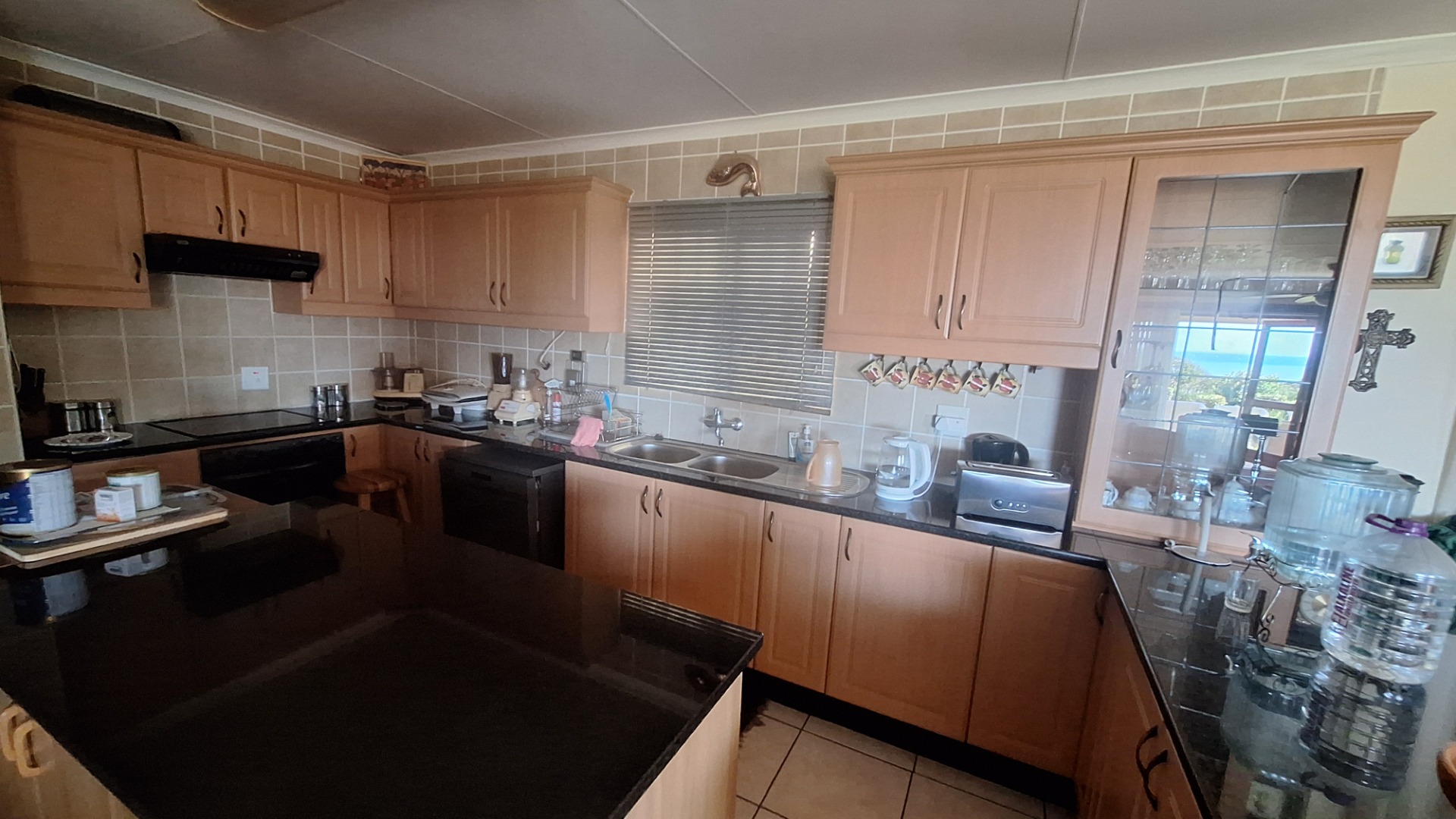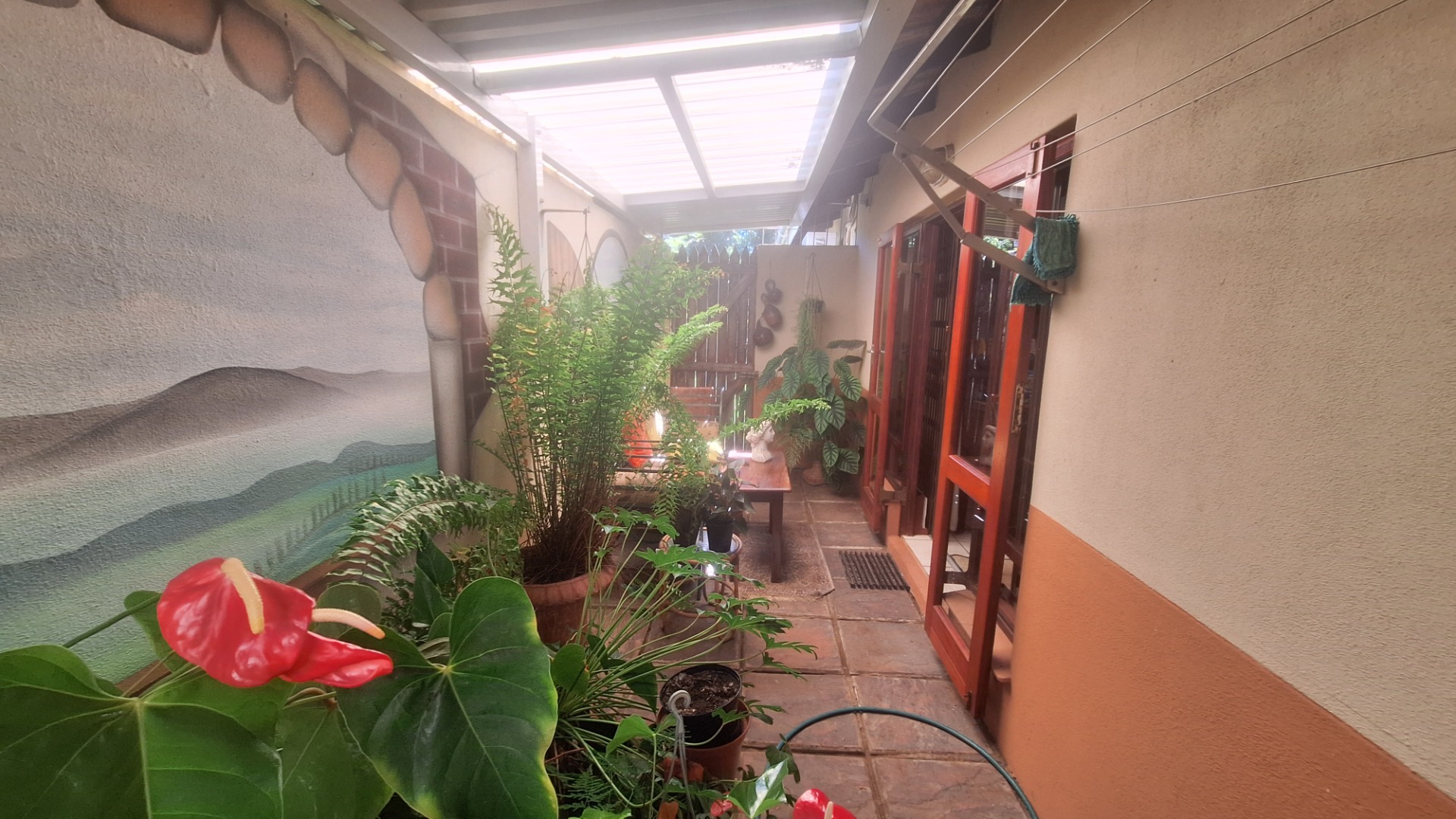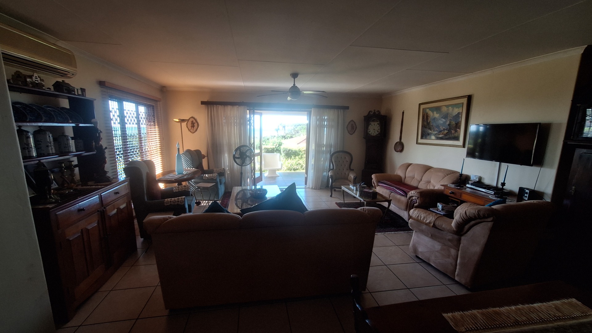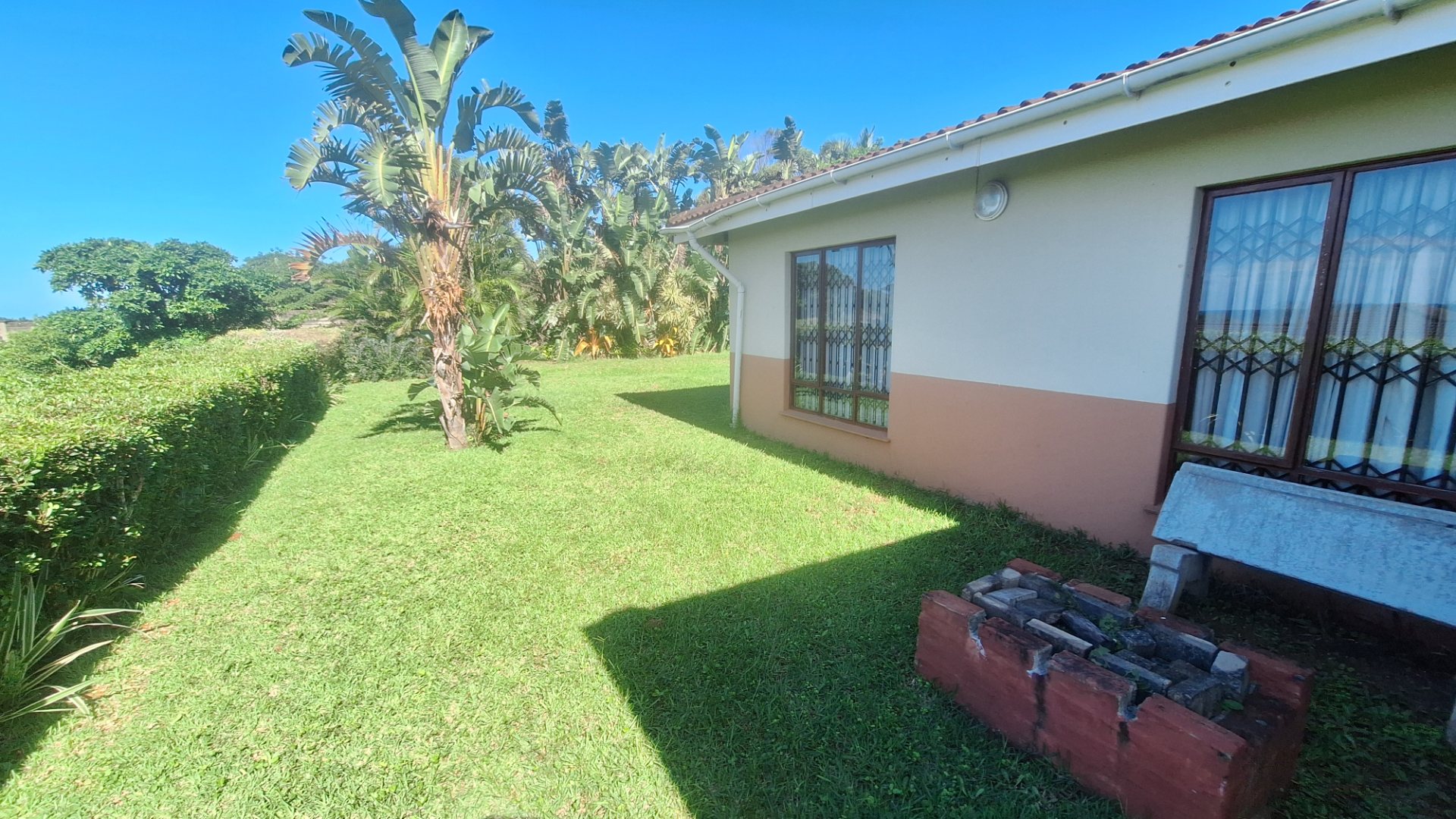 This 3 bedroom townhouse is situated a short distance from the Umtentweni beach, close to shops and a 4km drive to the nearest hospital and schools. Tiled throughout, with a lovely seaview from the patio and lounge area. Open plan concept with kitchen and lounge area, the kitchen has granit tops, eye level oven and plenty of cupboard space. The garage has direct access into the lounge, all three bedrooms are tiled have built in cupboards and aircon in 2 of them. The main bedroom is large and has an en-suite bathoom. There is a covered back patio that is currentl a small oasis with plants and a water feature.