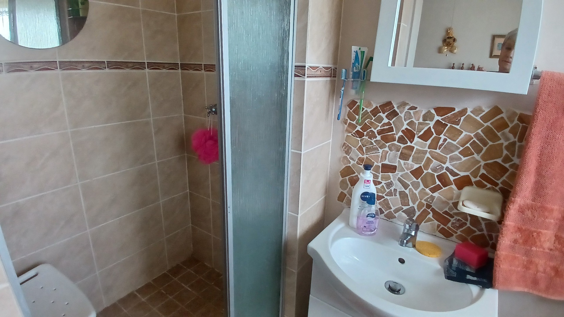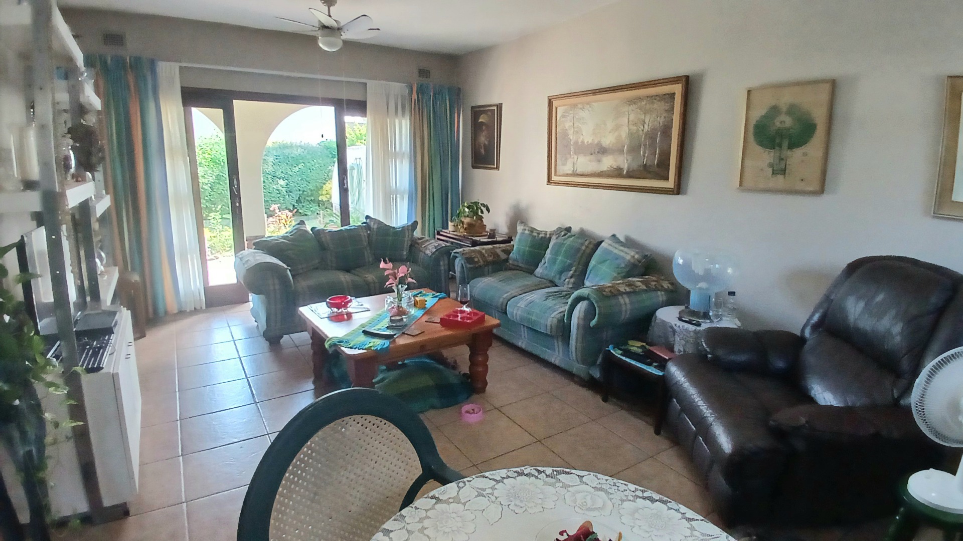 The heart of this home is its welcoming lounge area, which seamlessly extends through sliding doors to a communal open area featuring a lush, well-kept garden – perfect for relaxation or entertaining. The practical layout includes a well-appointed kitchen and an enclosed courtyard, ideal for laundry and additional utility space. Two large water tanks are also on hand, adding to the property's self-sufficiency and convenience.