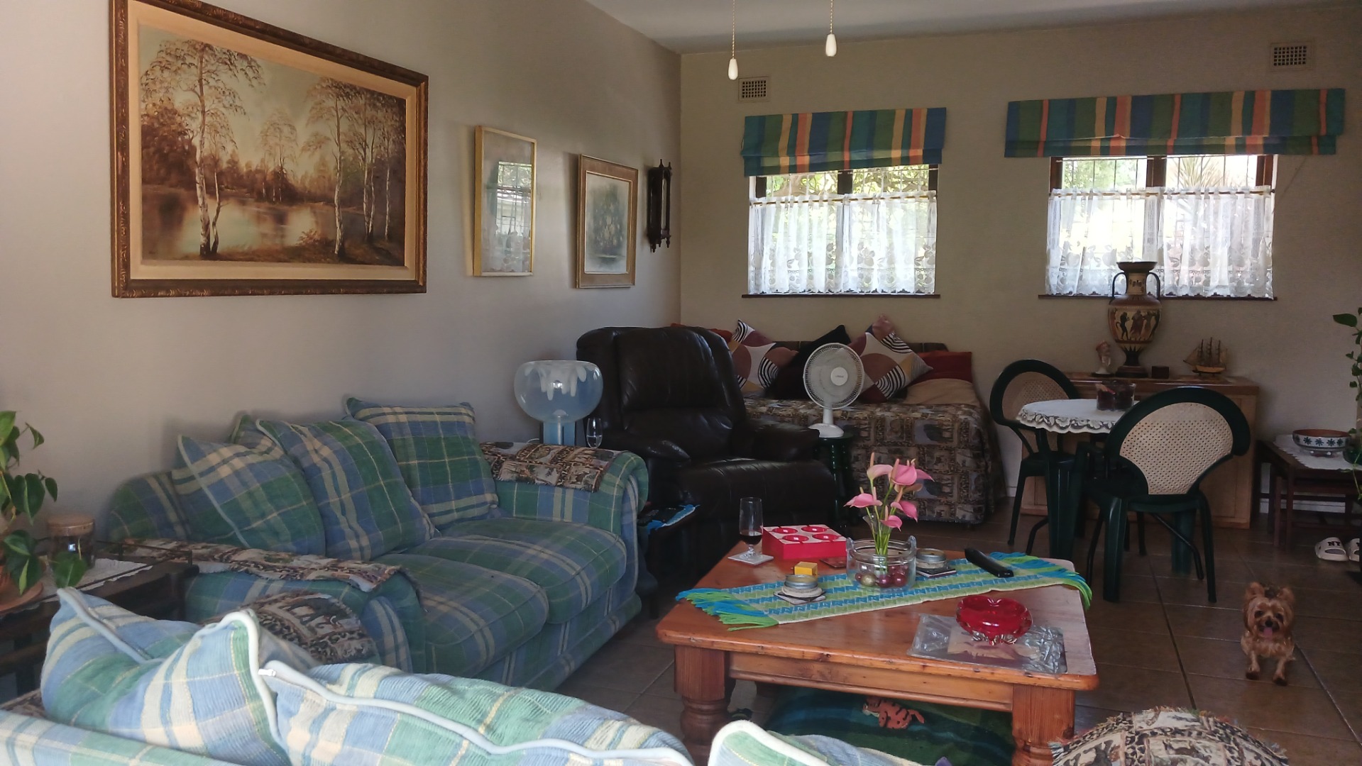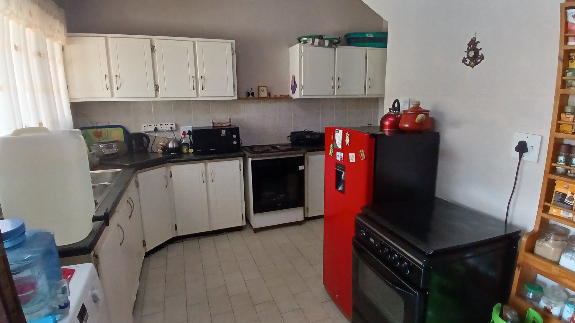 The heart of this home is its welcoming lounge area, which seamlessly extends through sliding doors to a communal open area featuring a lush, well-kept garden – perfect for relaxation or entertaining. The practical layout includes a well-appointed kitchen and an enclosed courtyard, ideal for laundry and additional utility space. Two large water tanks are also on hand, adding to the property's self-sufficiency and convenience.
