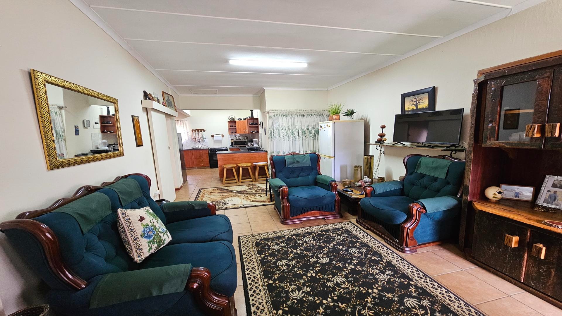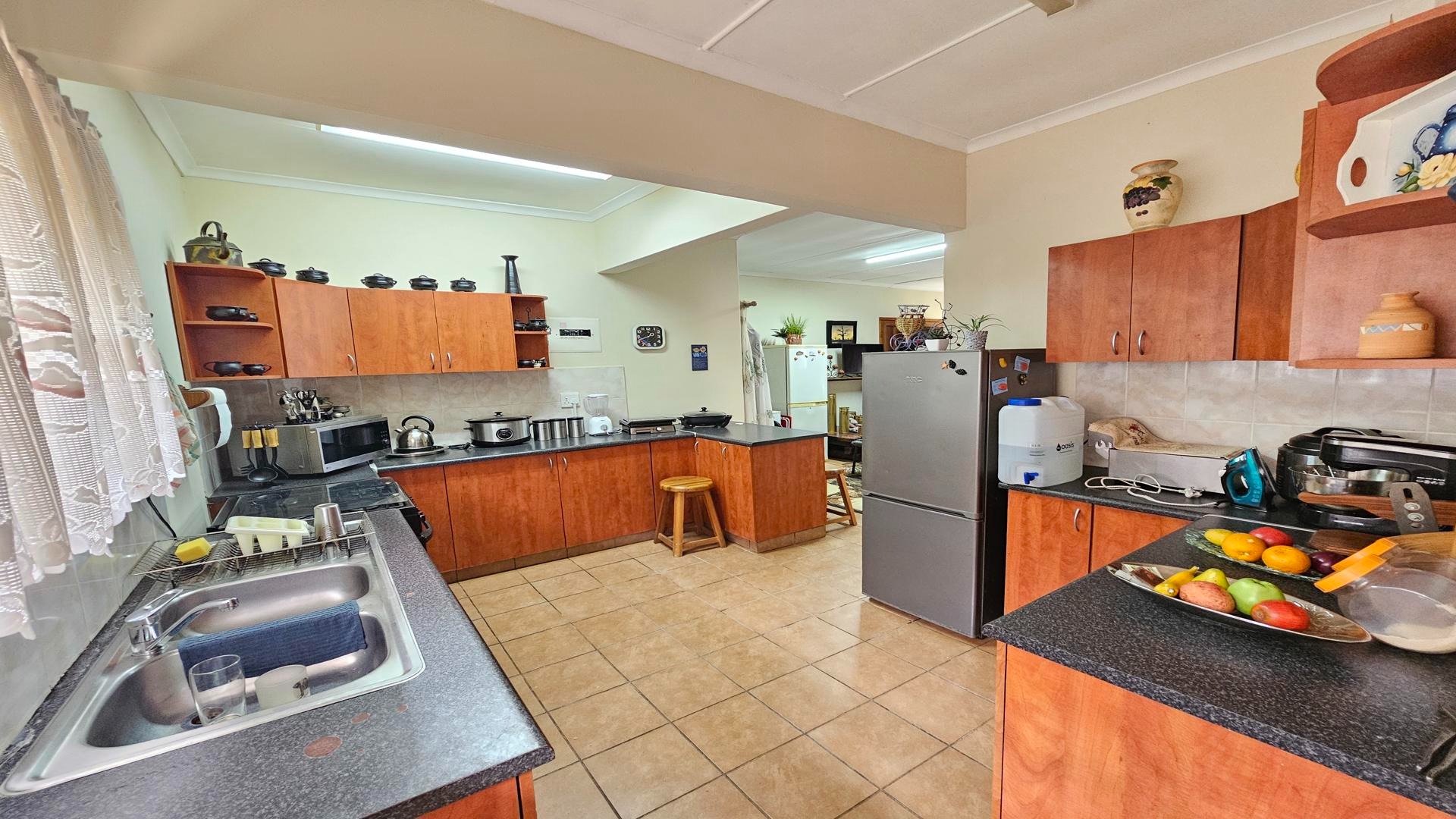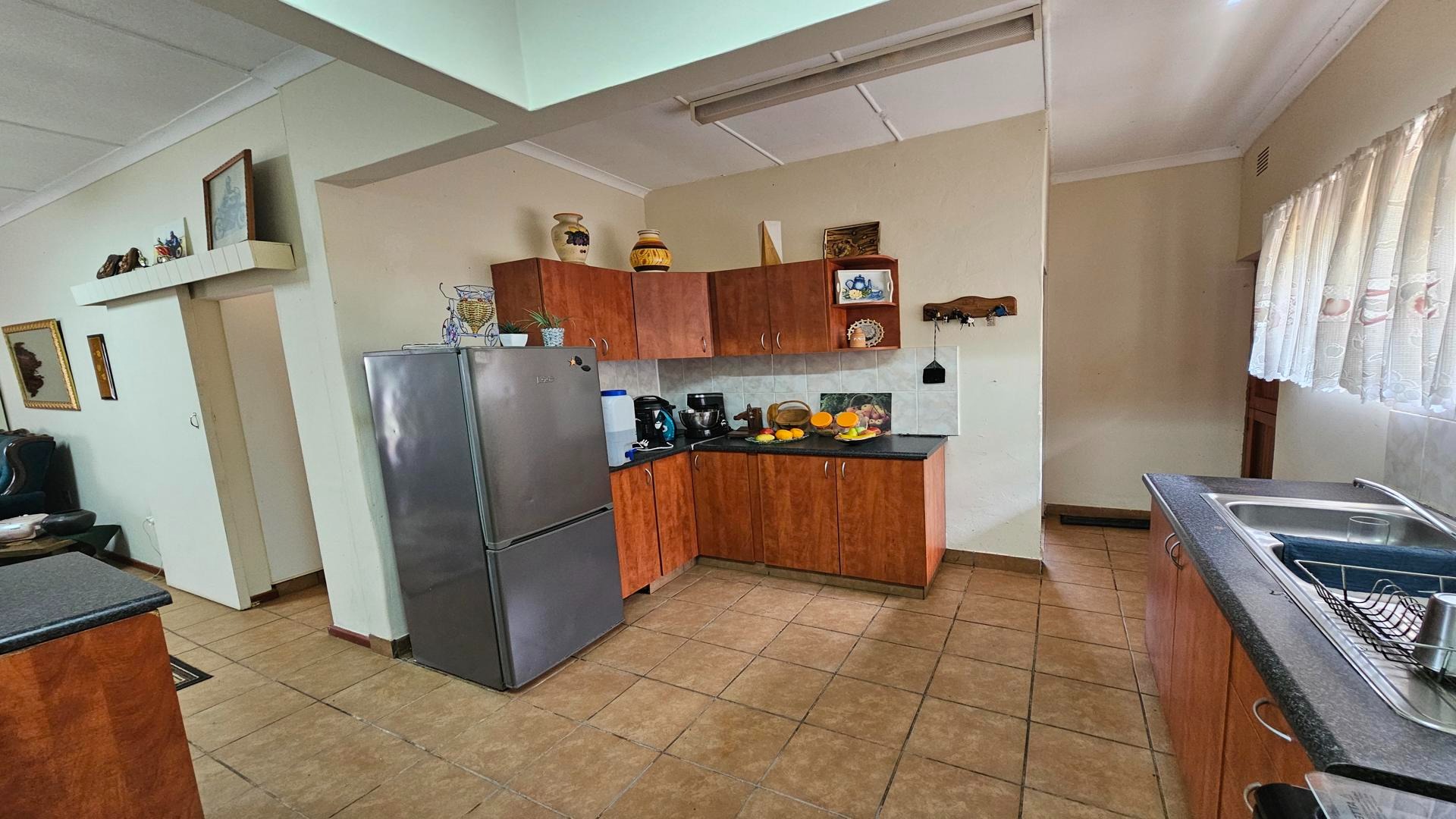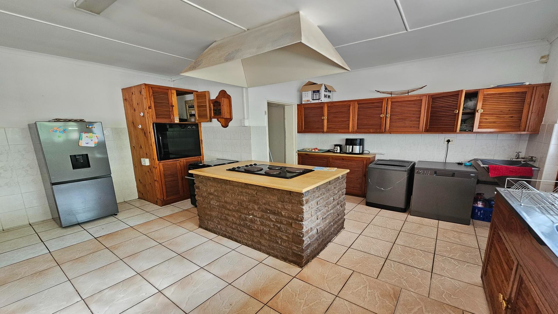 The interior comprises two distinct kitchens, two dining rooms, and two lounges, offering versatile living arrangements. The primary kitchen features ample wooden cabinetry and practical tiled flooring, flowing into an open-plan living area. While functional, these spaces present an opportunity for discerning purchasers to implement contemporary upgrades, enhancing the property's inherent value and aesthetic appeal.