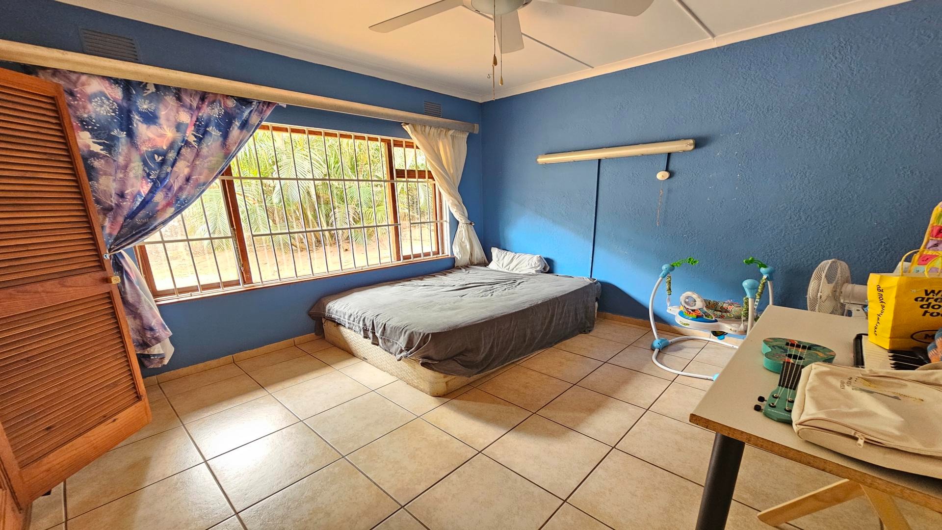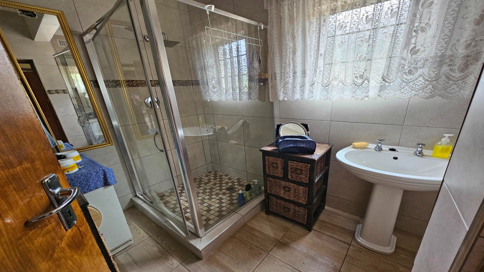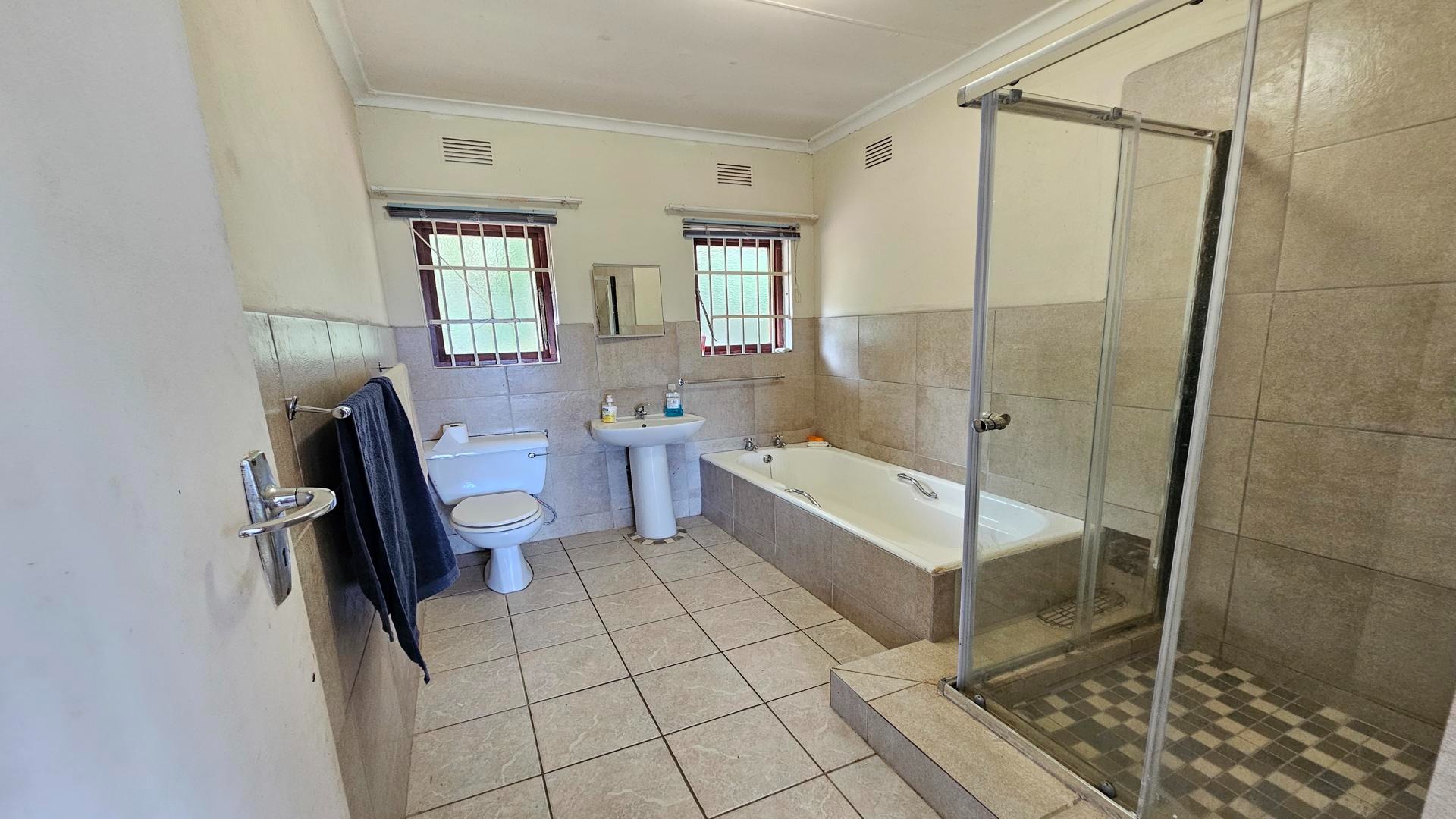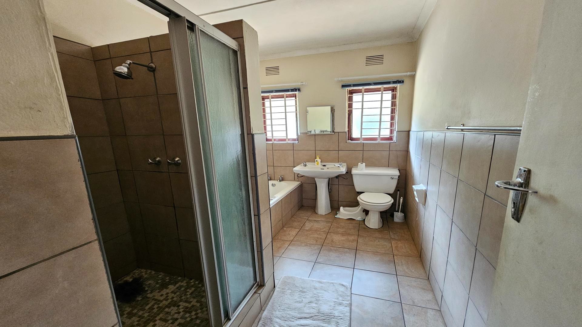 Accommodation includes five generously proportioned bedrooms, each benefiting from abundant natural light, tiled flooring, and ceiling fans. Built-in wardrobes provide practical storage solutions. The three bathrooms, while functional, offer scope for renovation to align with modern design preferences, ensuring a personalized sanctuary. Currently divided into two sections for maximum usage of property.