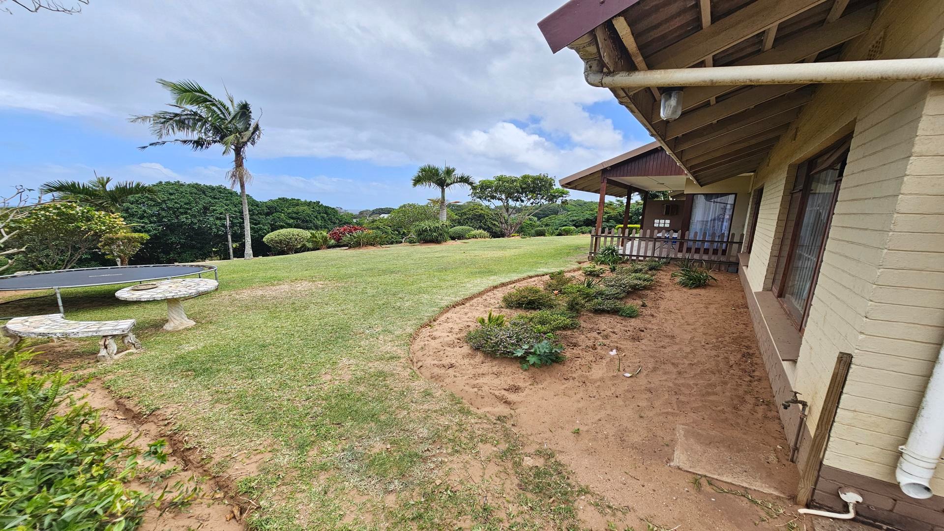 This distinguished residential property in Umtentweni presents an exceptional opportunity for coastal living. Boasting an expansive 2587 sqm erf, the residence offers breathtaking panoramic ocean views, complemented by lush tropical landscaping and meticulously maintained lawns. Multiple outdoor entertainment areas, including a covered veranda, provide ideal settings for al fresco dining and relaxation.