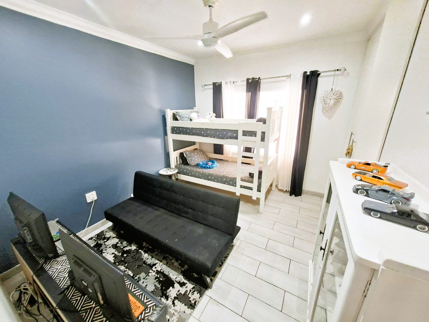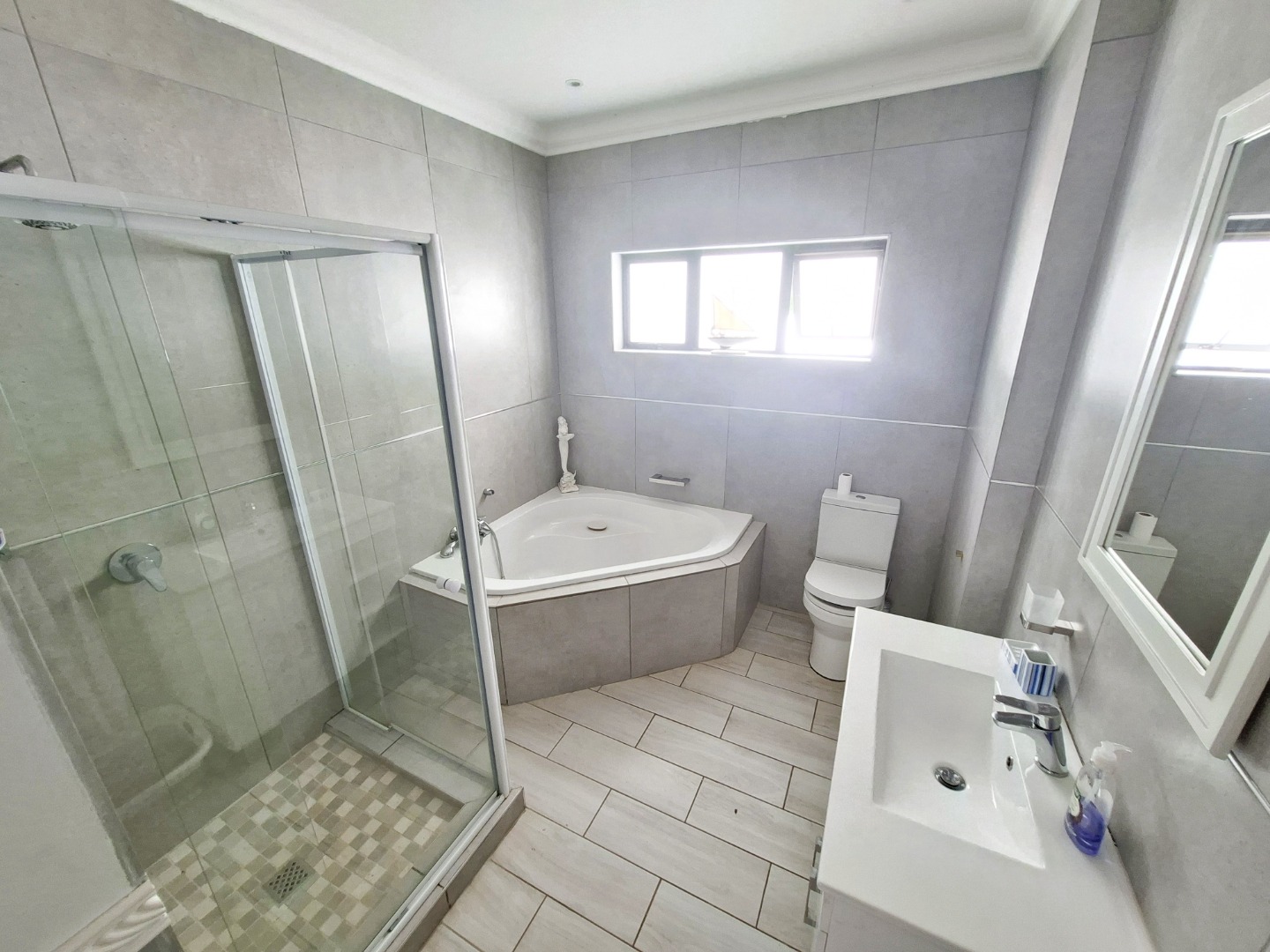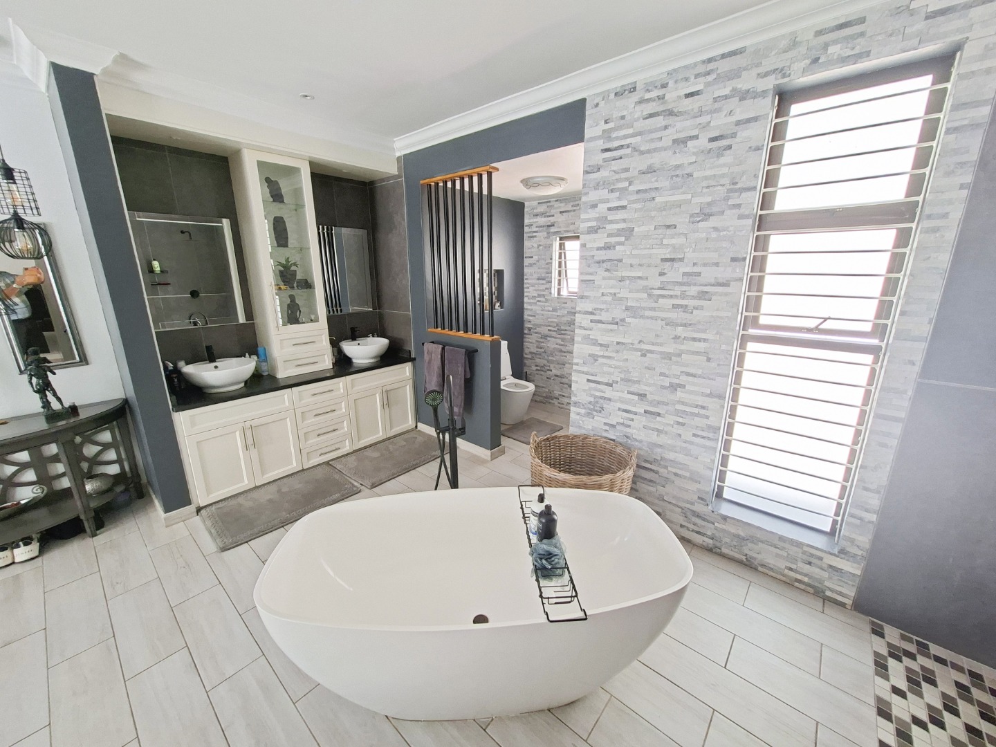 On this level you will find three spacious bedrooms, all with built-in cupboards. The two guest bedrooms share a modern bathroom. The main bedroom is an absolute oasis, offering the most beautiful open-plan bathroom with a large imported bathtub, huge shower and walk in closet.