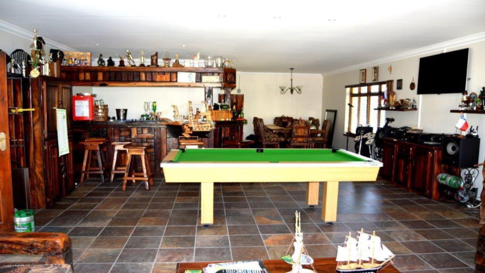 - Separate pub and entertainment room located above the double garages, designed to double as a self-contained apartment.