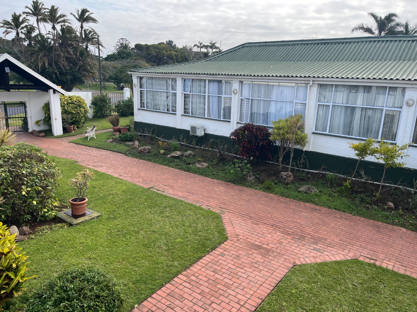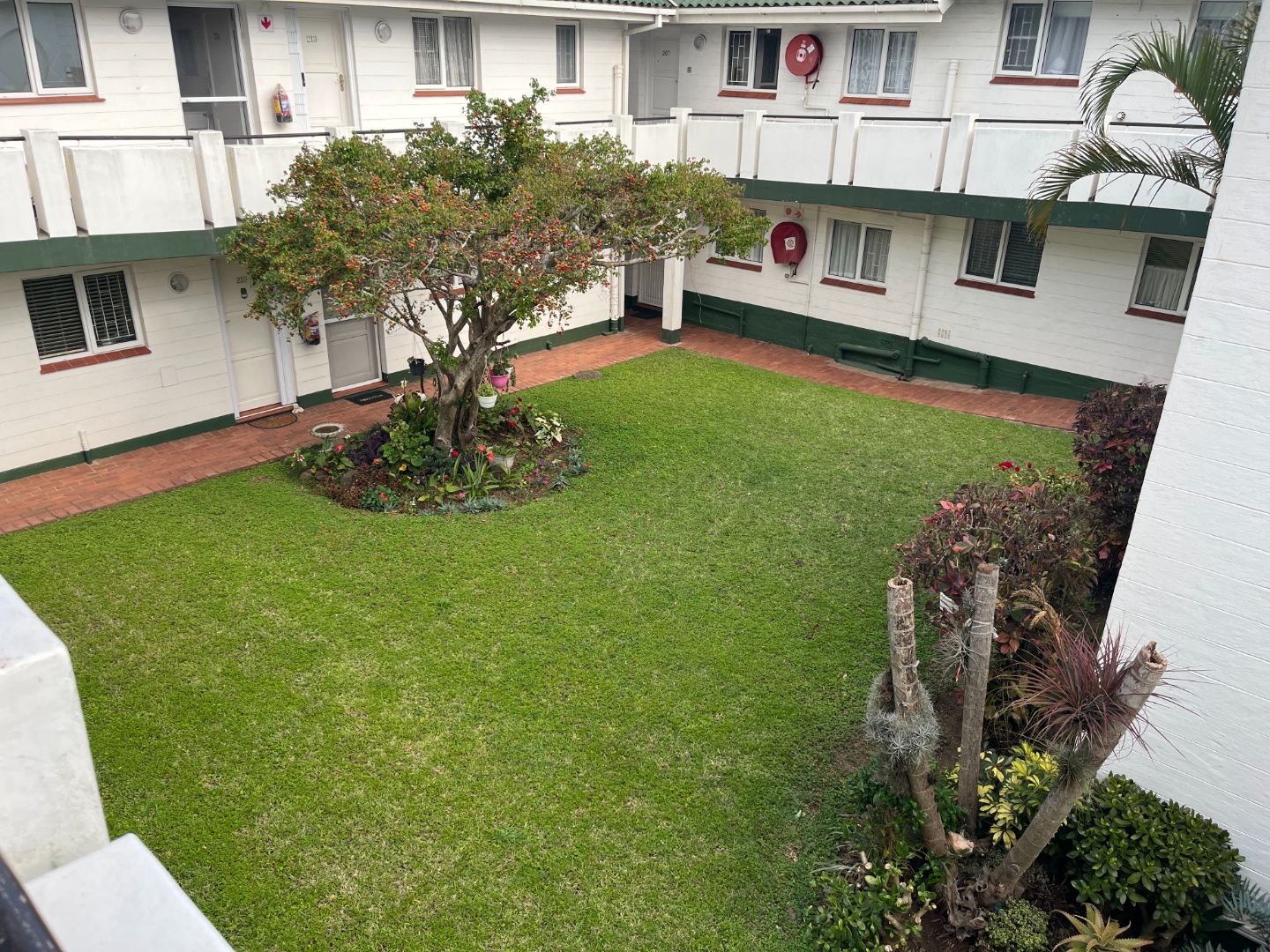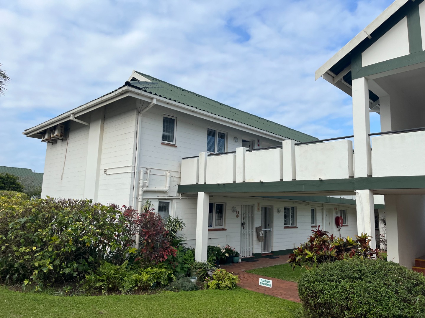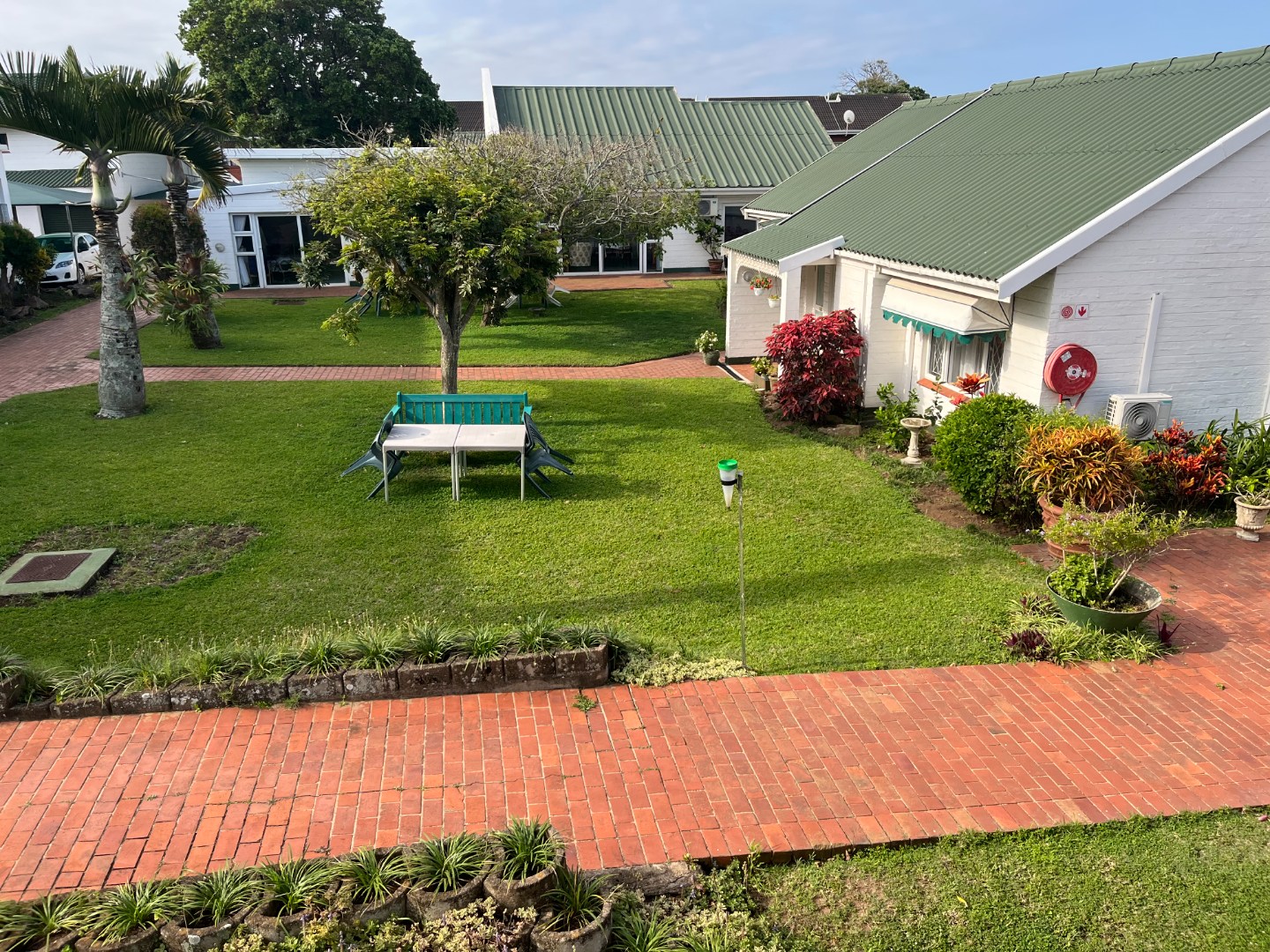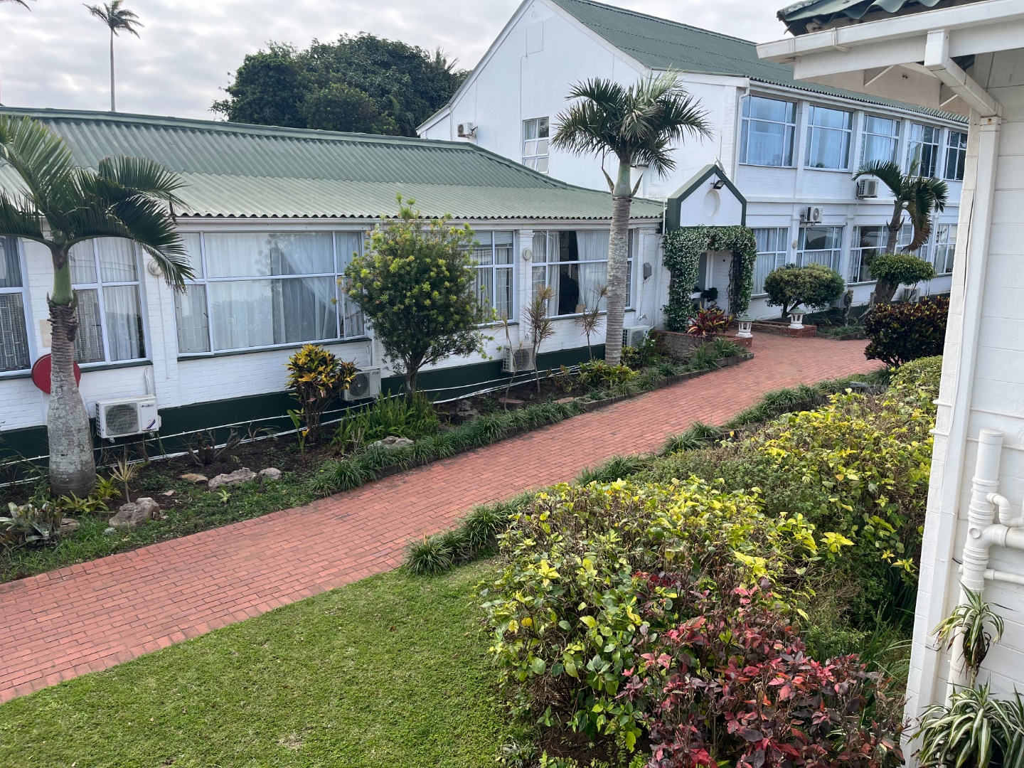 Retirement upstairs flat, neat 1 bedroom, self-catering on first floor (lift) with open living area off fitted kitchen offering serving counter. Extra spacious bedroom with BIC, carpets, aircon and en-suit bathroom with shower. Overlooking the lovely well maintained gardens and main building that offers a communal dining, lounge and separate laundry (extra costs). Meals can be arranged but is not compulsory. Levy includes water, electricity, wifi, 3 days per week clean, insurance on exterior and wash of 1 set of linen and towels per week. A minibus runs within the Scottburgh area to the mall. Parking can be arranged for a vehicle with access from the back. Communal pool in the back garden and separate washing lines. Walking distance to all amenities with security after hours. Medical interview - compulsory.