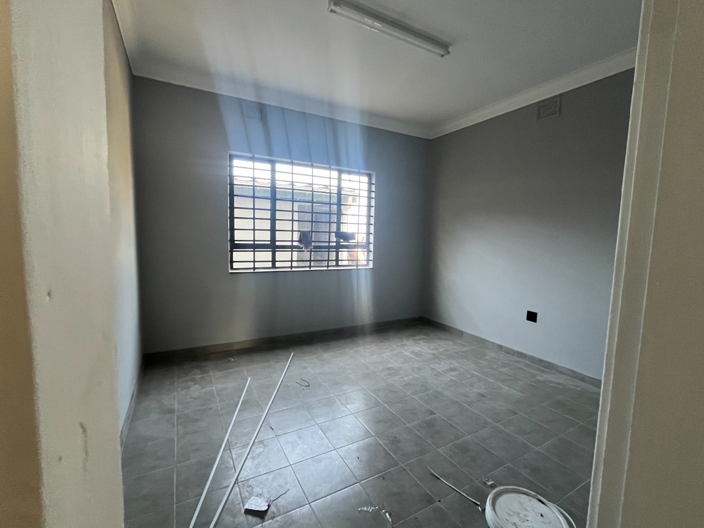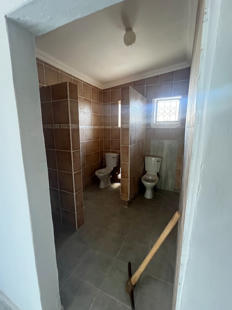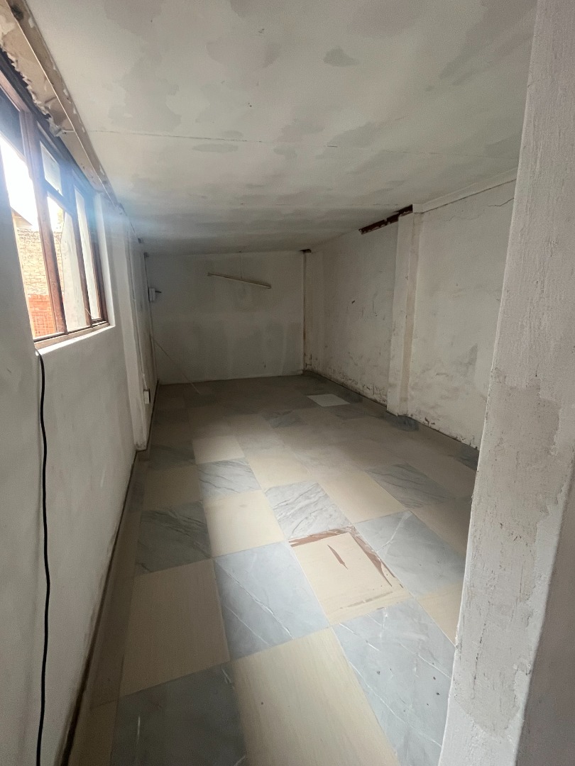 Renovated commercial property that can be used as offices with extra back room with semi-bathroom and store room. Main building with 4 door entrances, 5 rooms and open double reception area, communal bathroom with 2 toilets and 3 pre-paid electricity meters. Extra outside toilet with basin. Internal level parking area, walls and gated. On main road with access. Much potential with commercial rights.