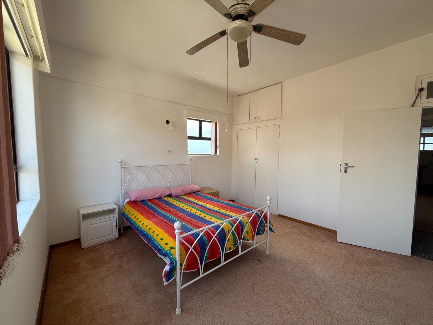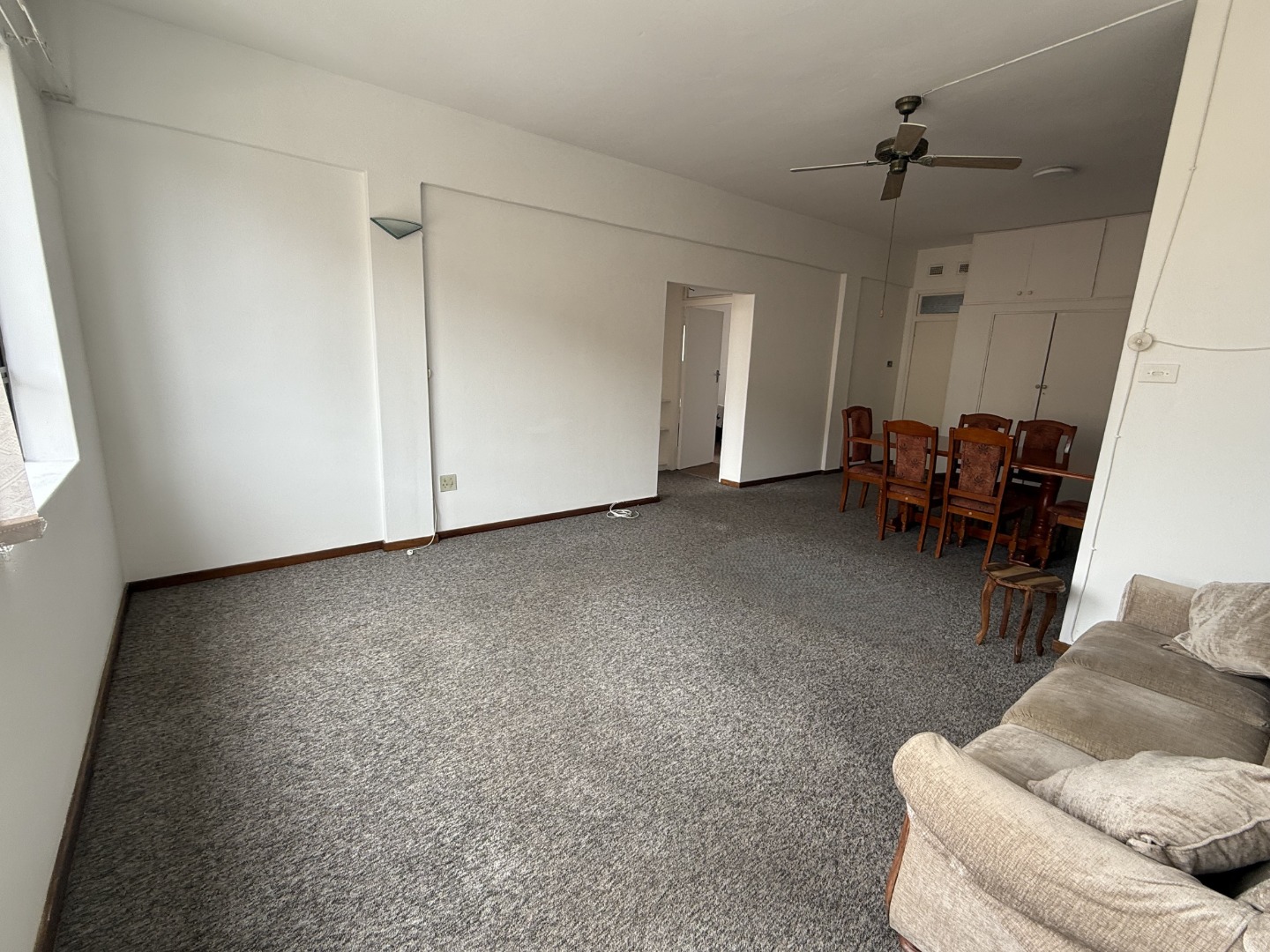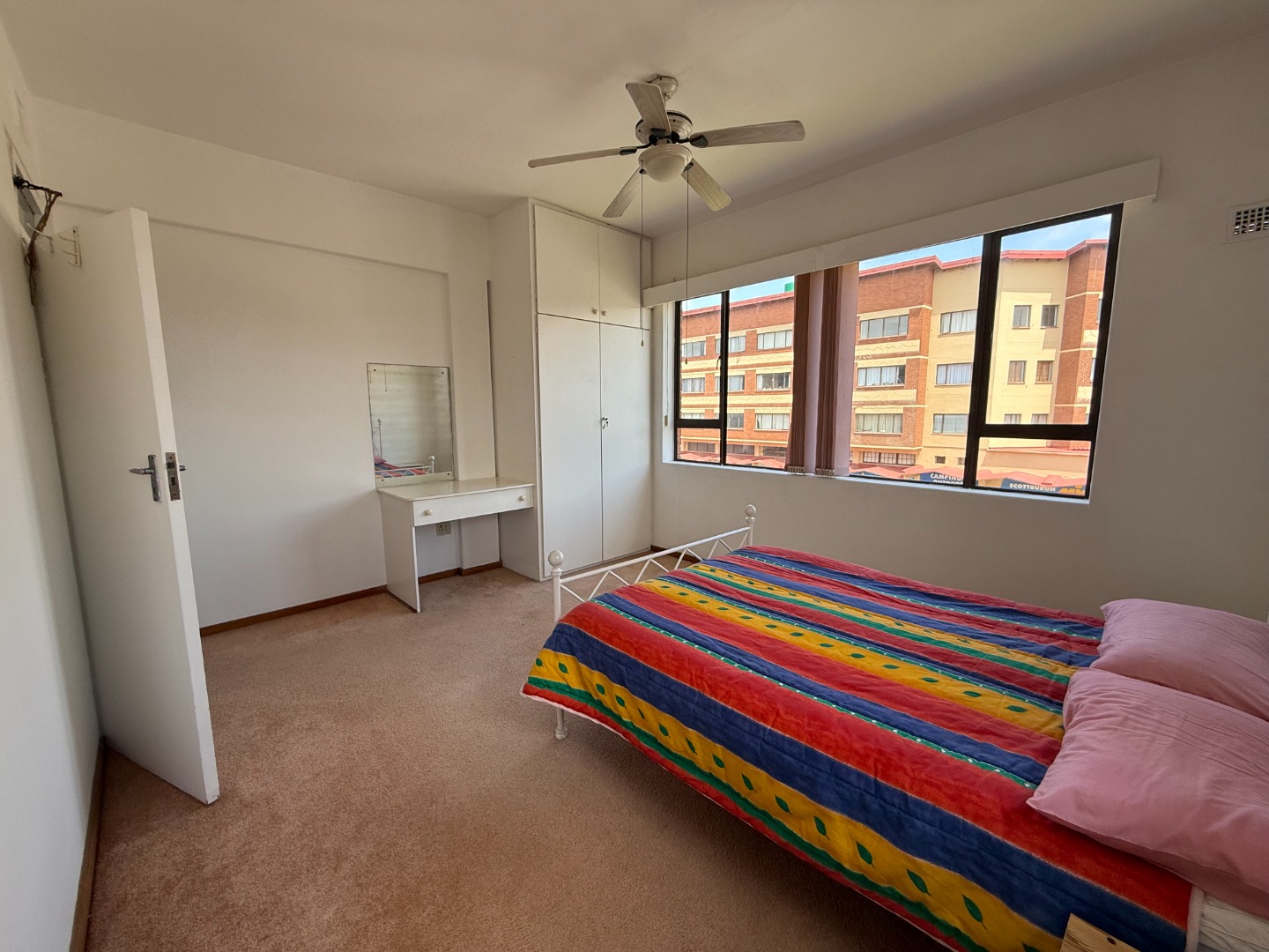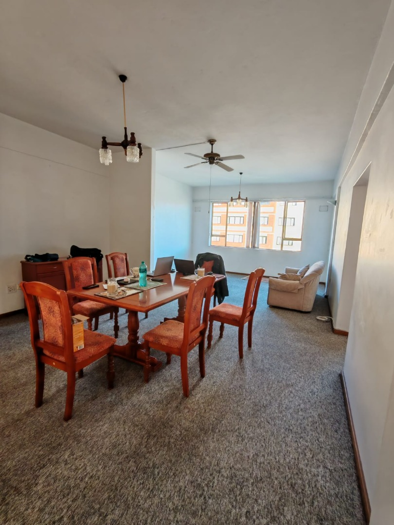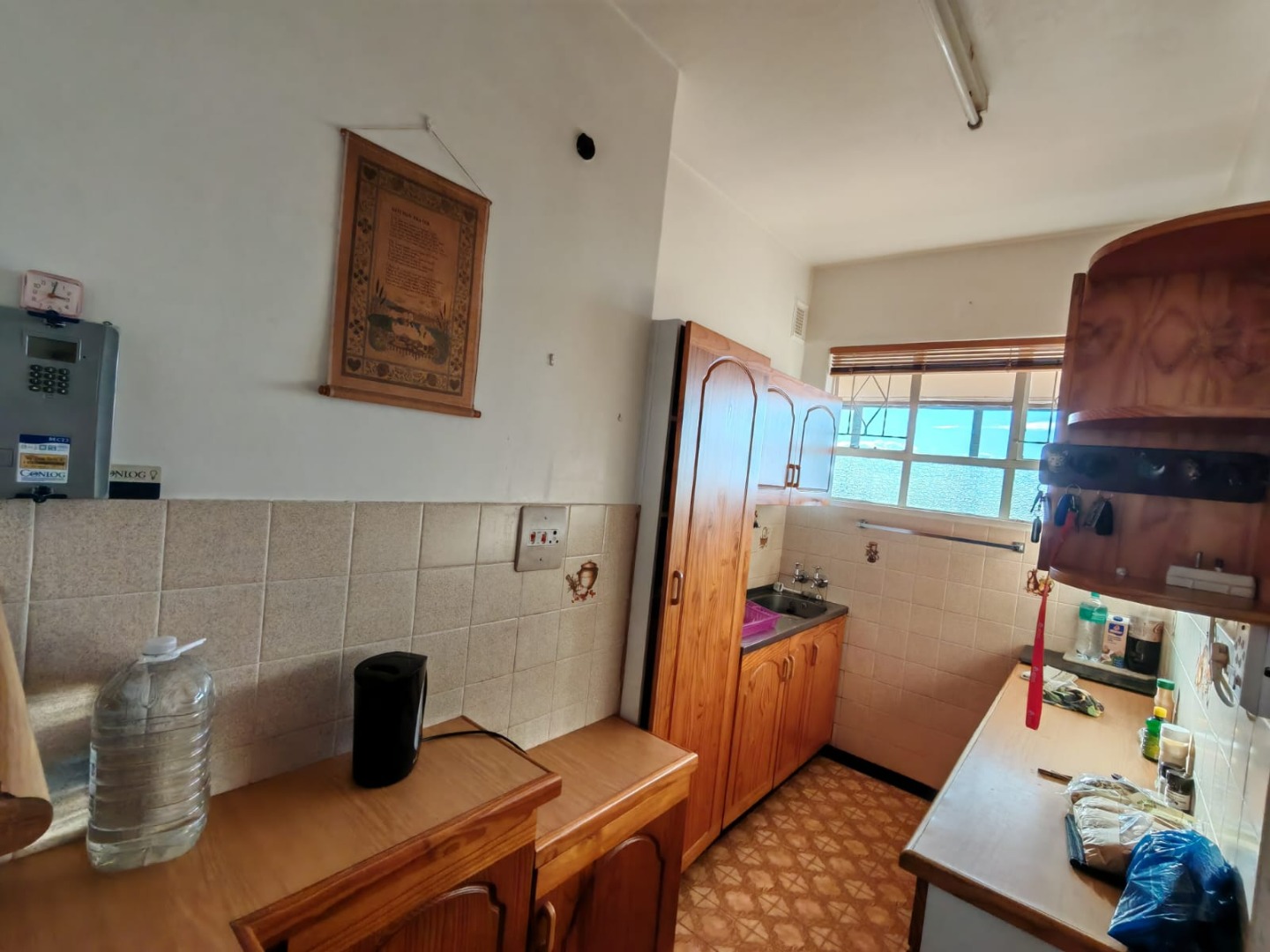Discover coastal living in this secure 2-bedroom, 2-bathroom apartment located in Scottburgh Central. The residence features a spacious open-plan living and dining area, benefiting from ample natural light and equipped with ceiling fans for comfort. While the aesthetic presents an opportunity for modern updates, the functional layout provides a welcoming atmosphere. The compact kitchen offers wooden cabinetry and tiled surfaces, complete with a pre-paid electricity meter for convenience. Both bedrooms are well-lit, featuring natural light and ceiling fans, with one offering extensive built-in wardrobes and overhead storage. The bathrooms are functional, each including a full bathtub and tiled finishes. The property provides a single garage and an additional parking space, ensuring practical accommodation for residents.
