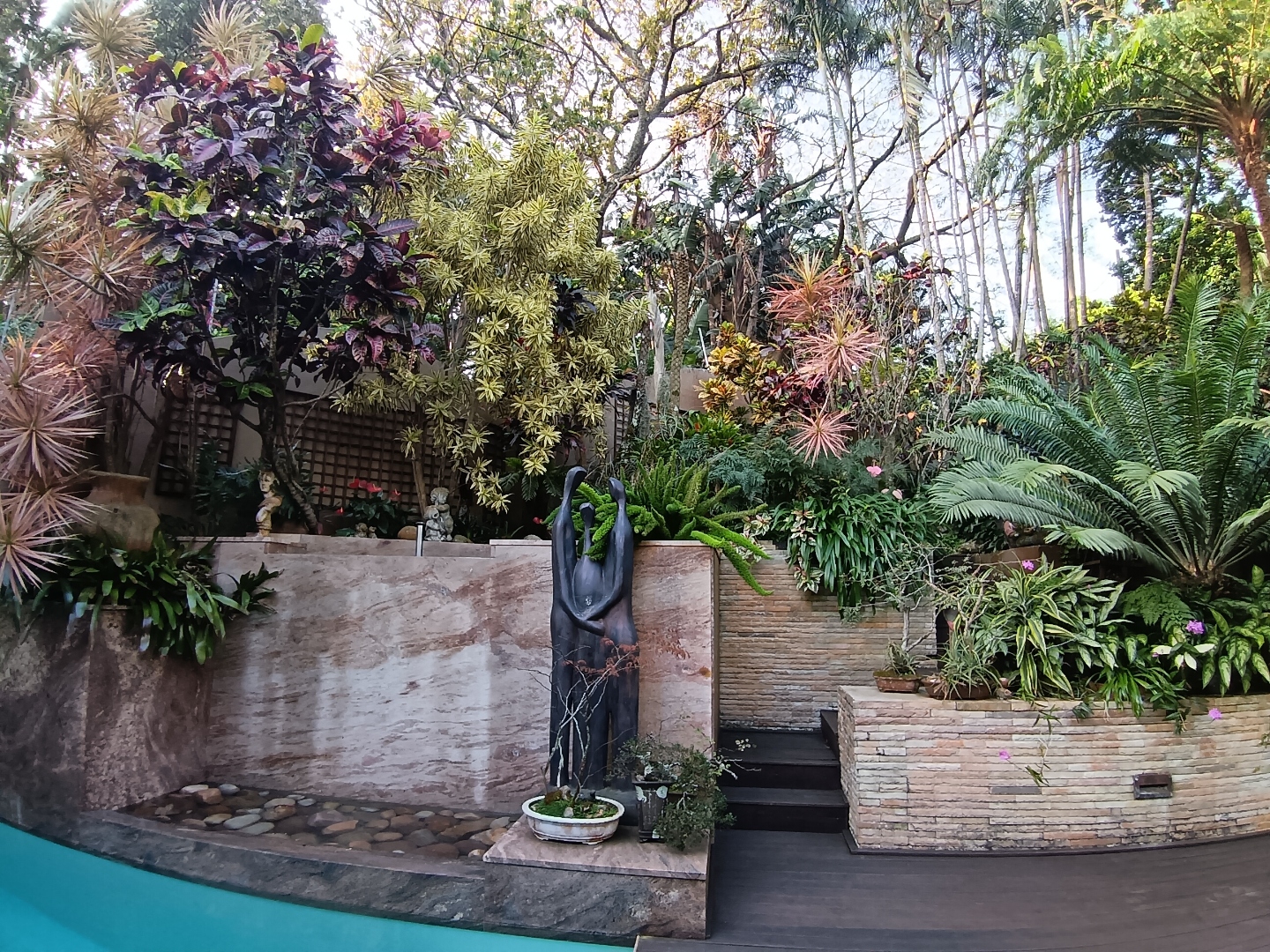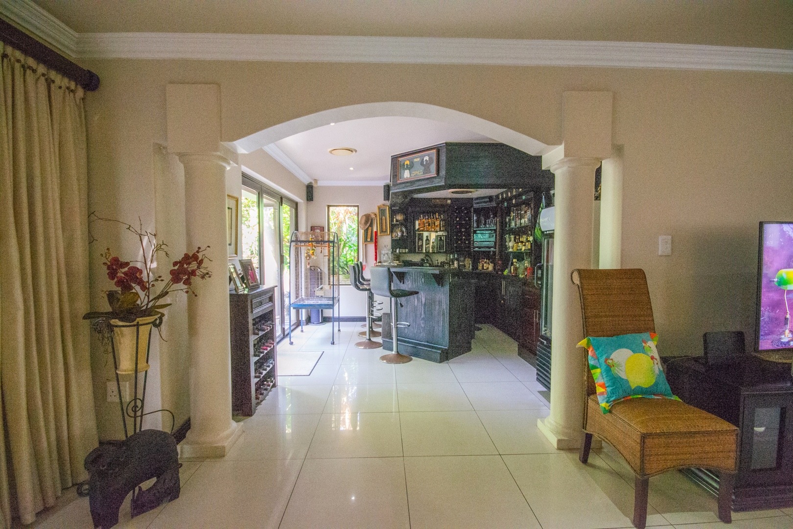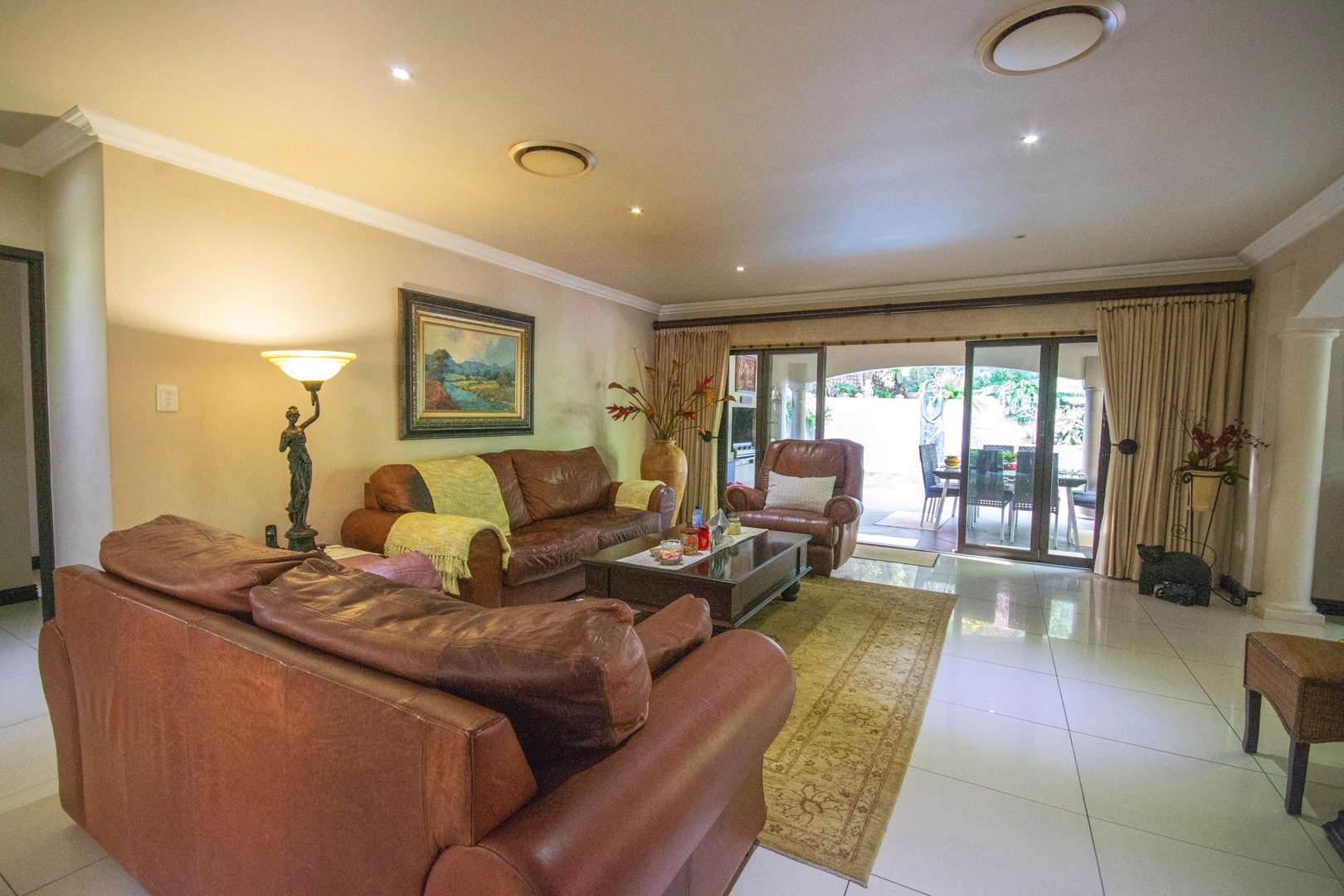 Fabulous freestanding home in a secure complex in upmarket Southbroom now on the market for sale - and WOW - this is stunnng. Welcome to your dream home in the heart of Southbroom – an upmarket, tropical paradise renowned for its elite lifestyle and coastal charm. This luxurious, freestanding townhouse, set in an exclusive, well-maintained complex, offers the perfect blend of privacy, elegance, and modern convenience. From the moment you step inside, you are greeted by seamless flow and exceptional attention to detail. The expansive open-plan design encompasses a chef’s dream kitchen adorned with Caesarstone countertops, concealed lighting, a separate scullery, and an adjoining courtyard – ideal for effortless entertaining. The spacious dining area, lounge, and bespoke bar seamlessly extend to a covered patio with a built-in braai and outdoor cooking station, all overlooking a beautiful wooden deck and rim-flow pool with a tranquil water feature, set amidst an exquisite, lush, mature garden - really so beautiful ! Pool is heated with flexible wooden railings that can be added to secure pool area.