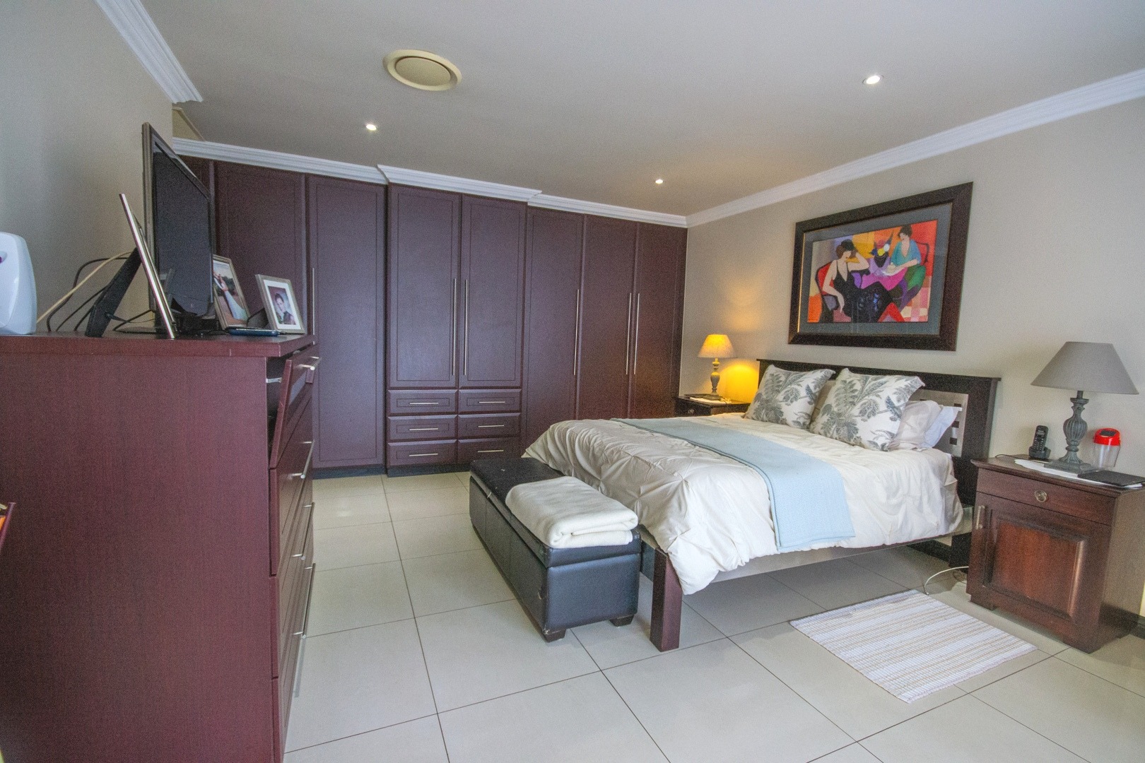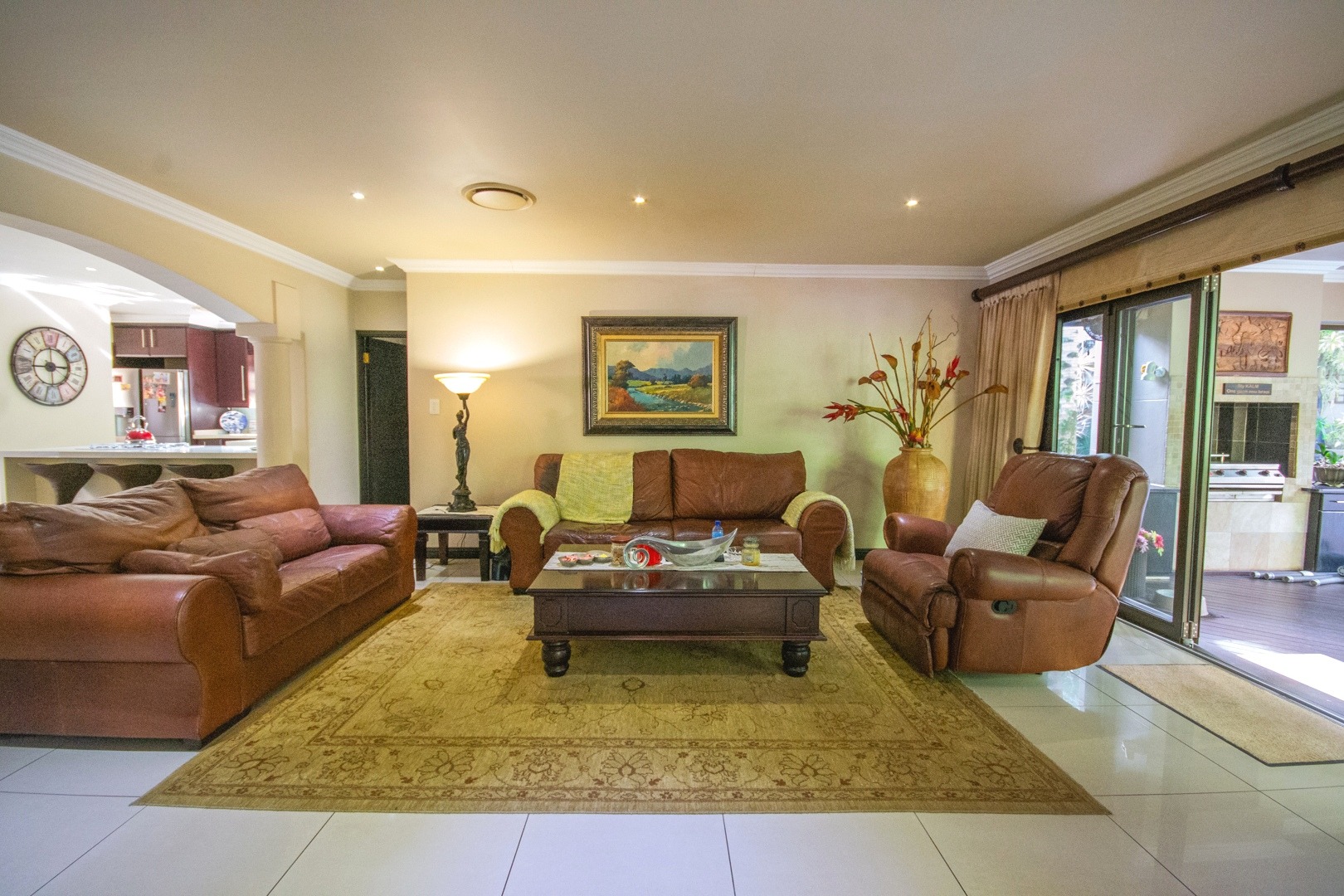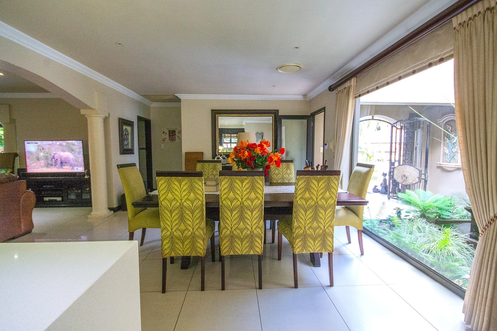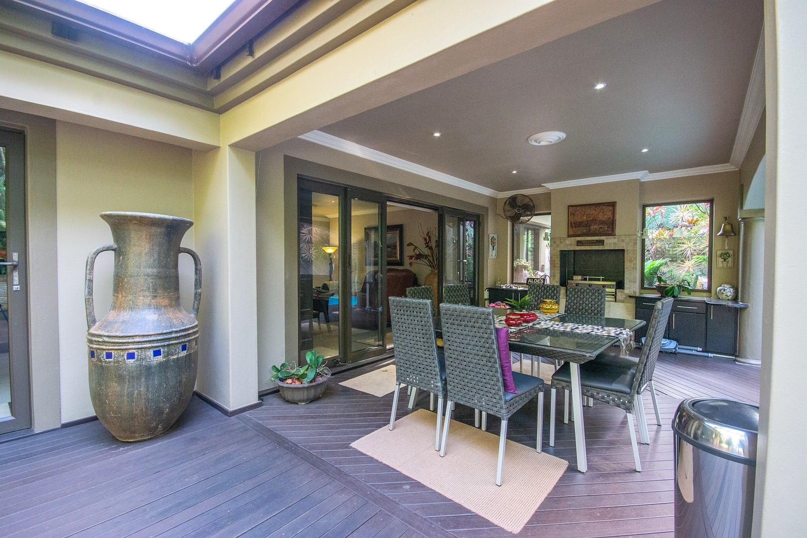 Fabulous freestanding home in a secure complex in upmarket Southbroom now on the market for sale - and WOW - this is stunnng. Welcome to your dream home in the heart of Southbroom – an upmarket, tropical paradise renowned for its elite lifestyle and coastal charm. This luxurious, freestanding townhouse, set in an exclusive, well-maintained complex, offers the perfect blend of privacy, elegance, and modern convenience. From the moment you step inside, you are greeted by seamless flow and exceptional attention to detail. The expansive open-plan design encompasses a chef’s dream kitchen adorned with Caesarstone countertops, concealed lighting, a separate scullery, and an adjoining courtyard – ideal for effortless entertaining. The spacious dining area, lounge, and bespoke bar seamlessly extend to a covered patio with a built-in braai and outdoor cooking station, all overlooking a beautiful wooden deck and rim-flow pool with a tranquil water feature, set amidst an exquisite, lush, mature garden - really so beautiful ! Pool is heated with flexible wooden railings that can be added to secure pool area.
