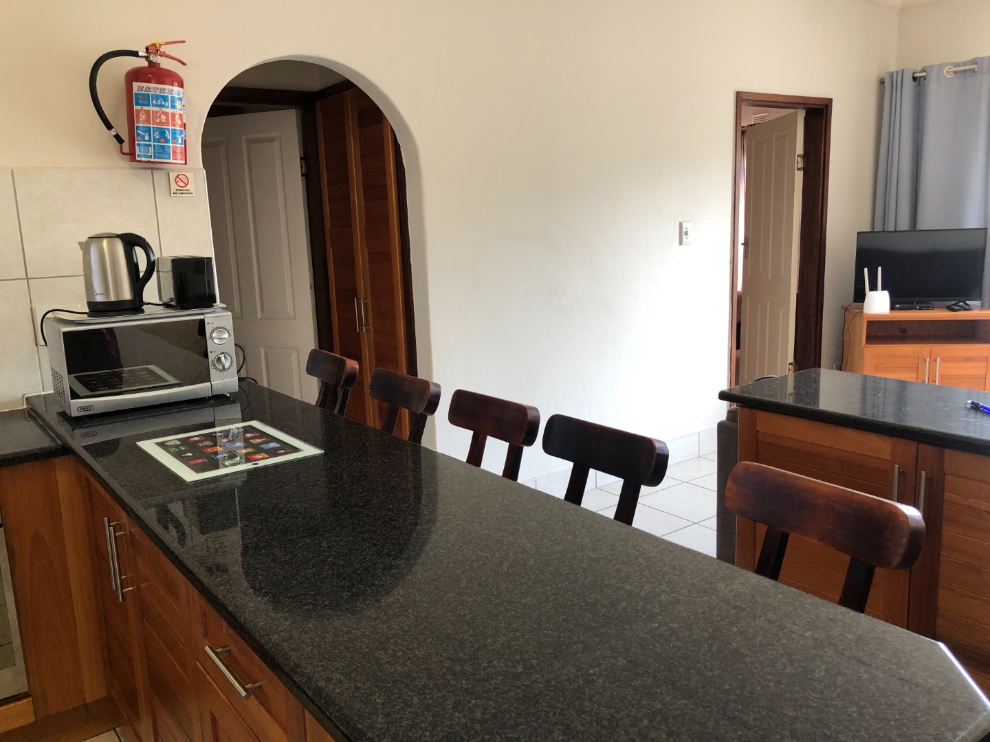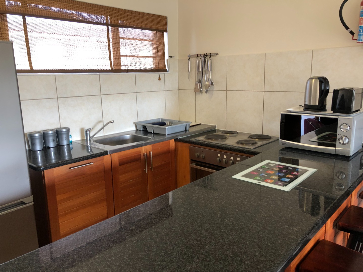 The kitchen area is stylish and has beautiful finishes on the surface worktops of granite.