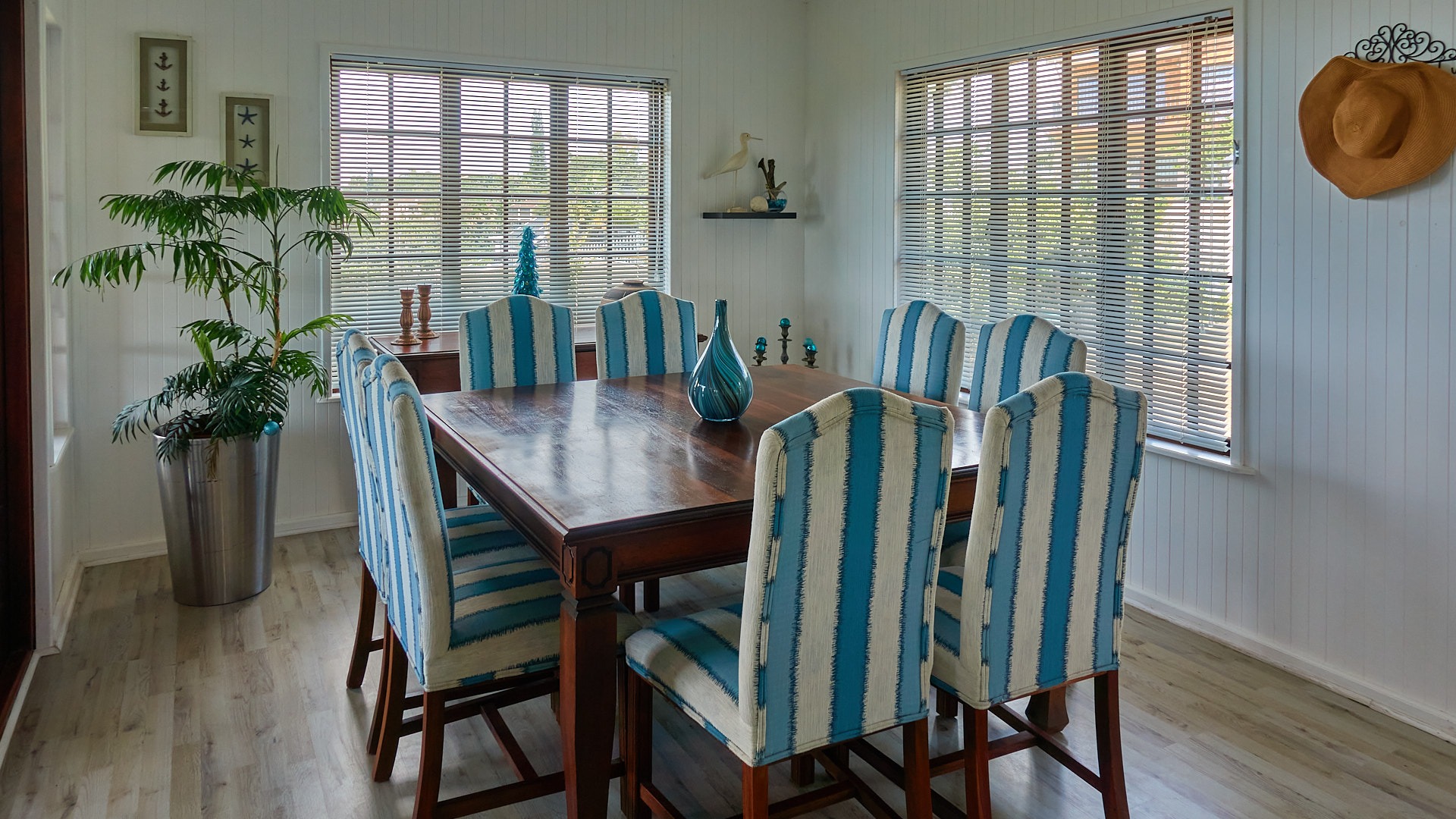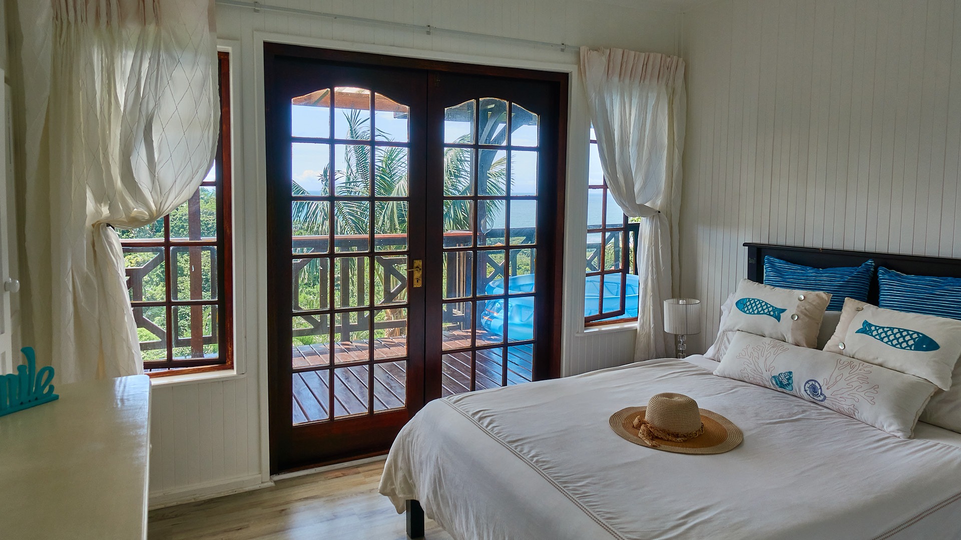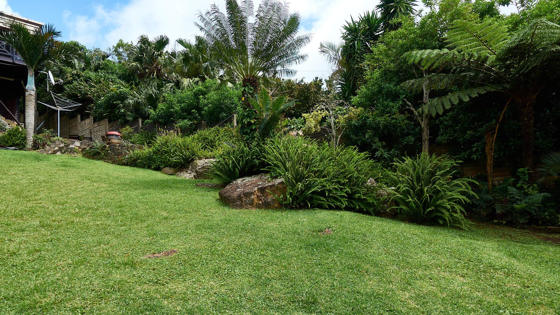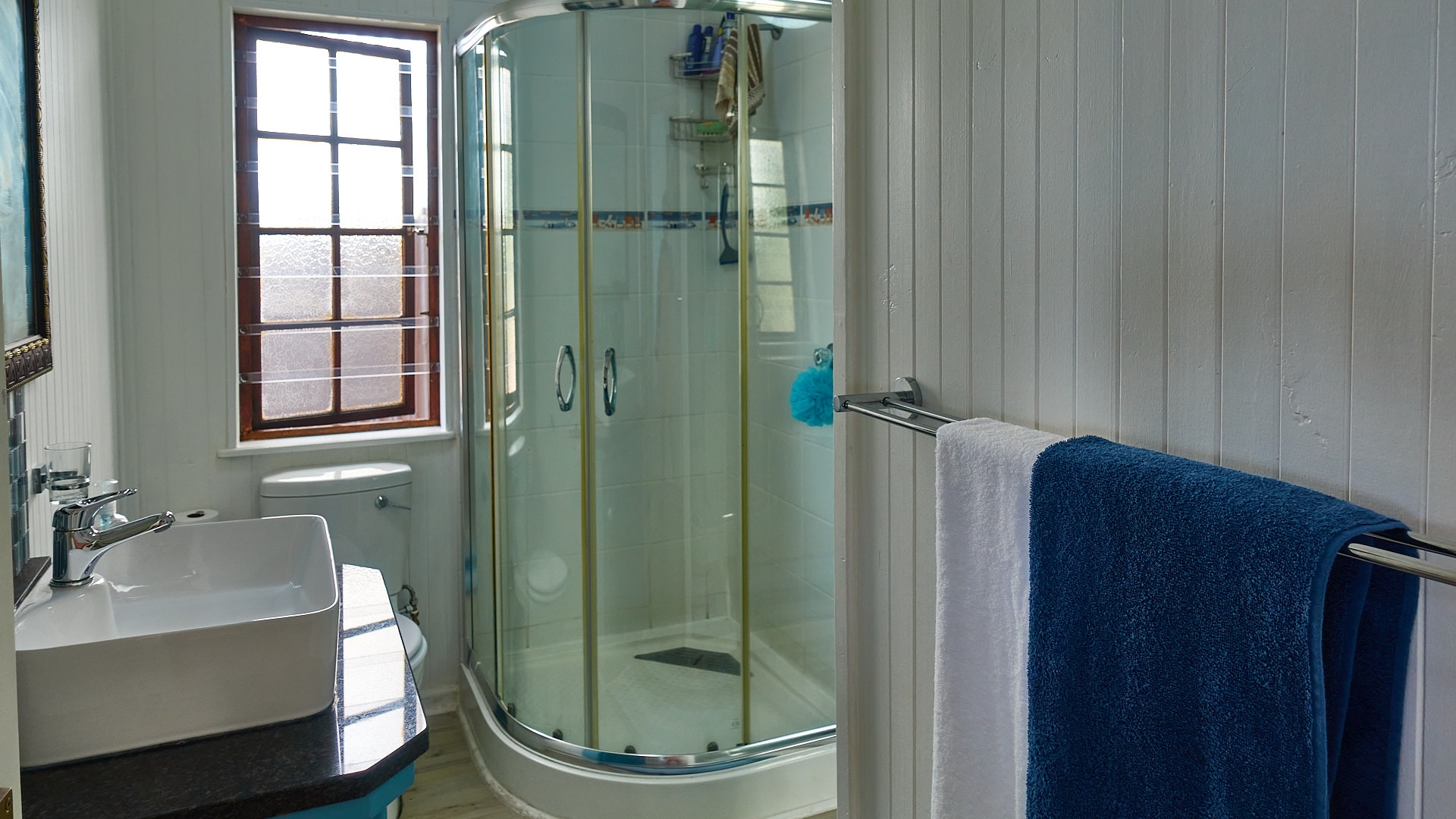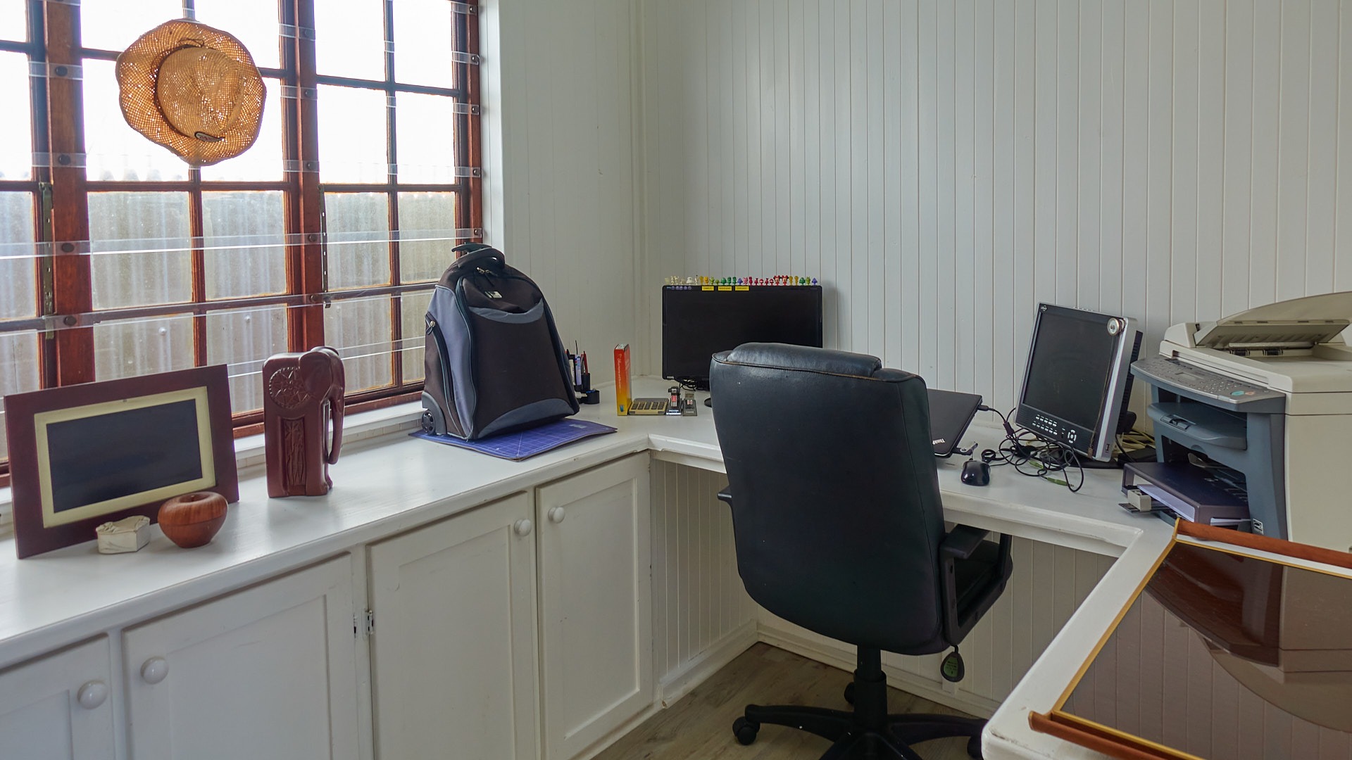 Down the passage, you will find two generous bedrooms and a dedicated office, ideal for working from home or as a study or additional guest space. The main bedroom features a picture-perfect, modern en-suite bathroom, and both the main bedroom and second bedroom open via double doors onto the covered wooden patio. This stunning wooden balcony runs the entire length of the home, offering breathtaking 180-degree ocean views and an exceptional entertainment area, while also wrapping around one side of the house. The garden is large, spacious, and easy to maintain.
