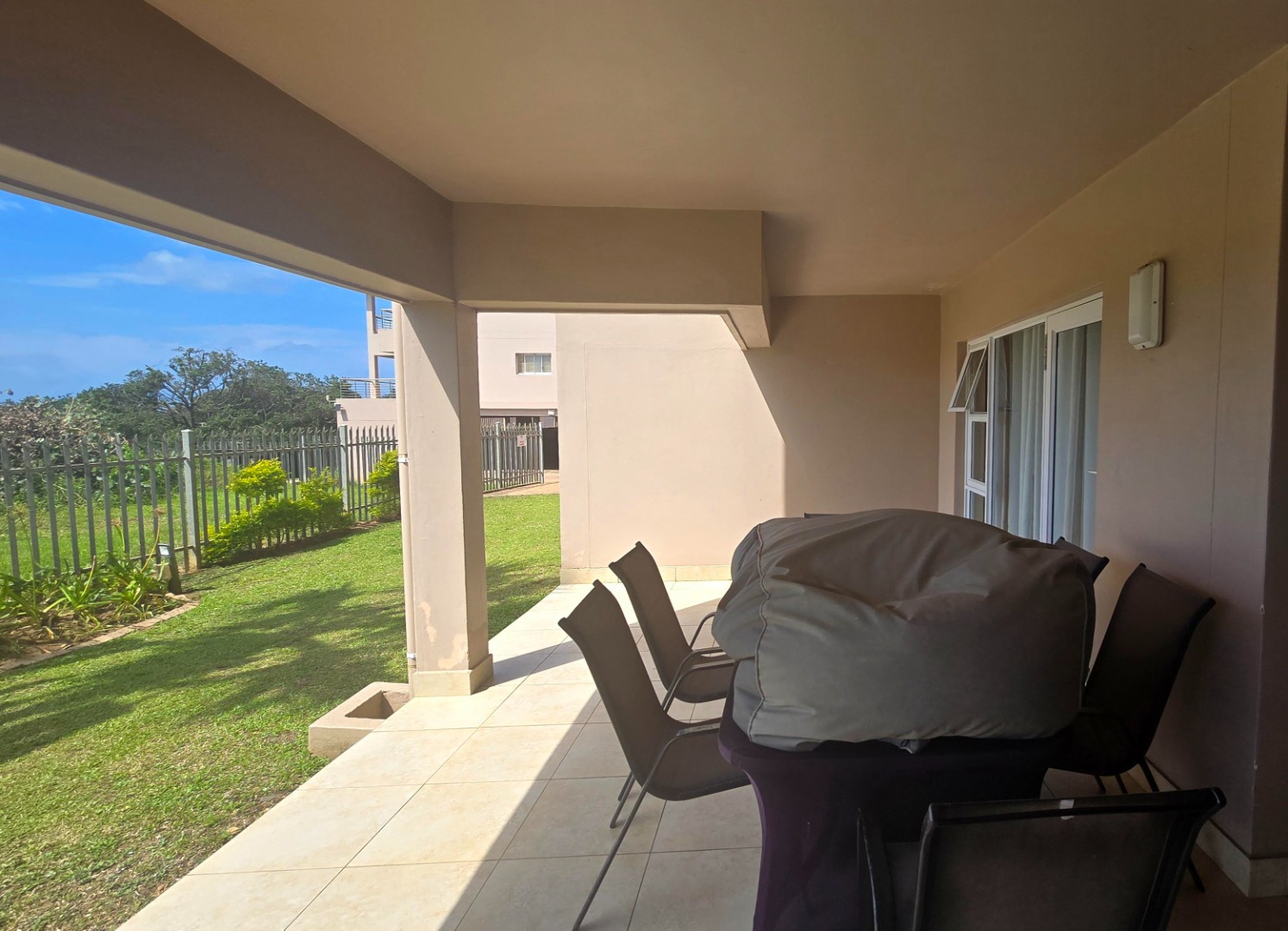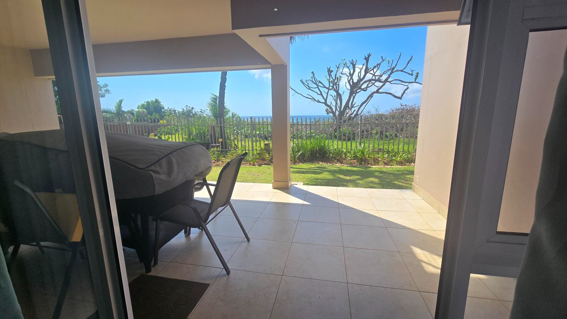 Step outside from the living area through sliding doors to a private, covered outdoor space, offering direct access to a well-maintained garden and stunning ocean views. This outdoor area is perfect for relaxation or entertaining, allowing you to embrace the coastal lifestyle fully. The apartment comes fully furnished. Residents also benefit from access to a communal swimming pool.