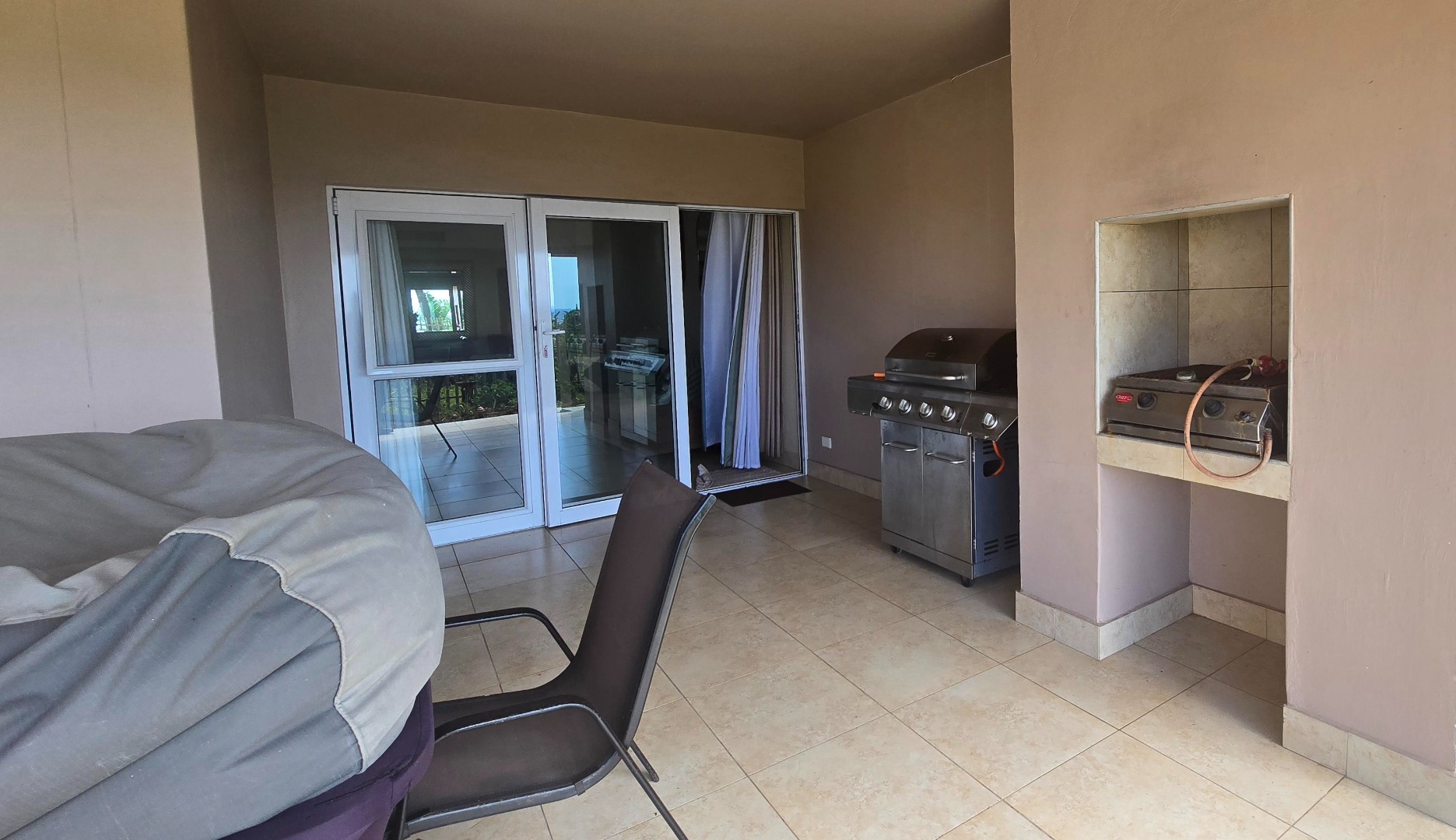 * Covered outdoor area with garden access