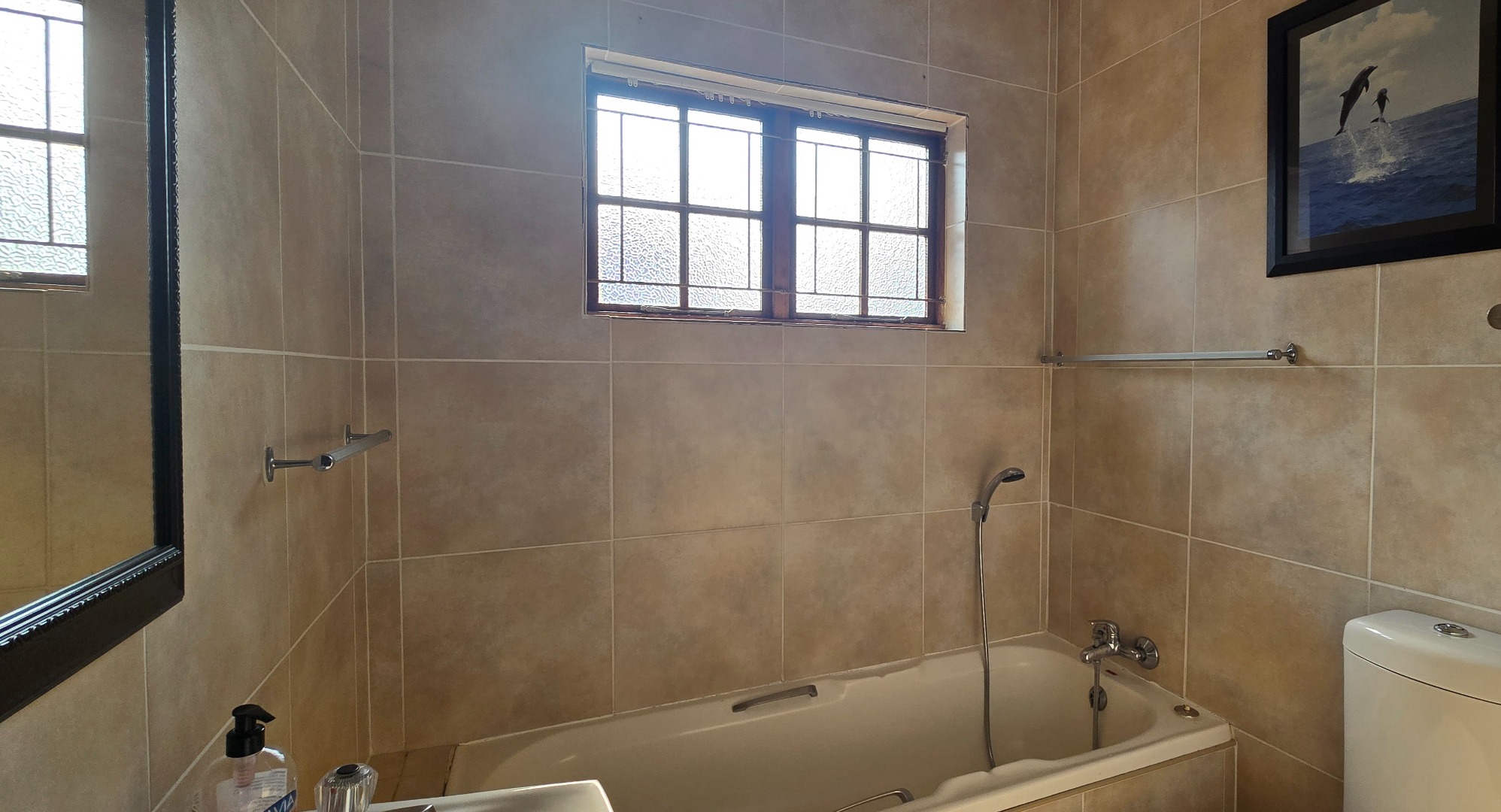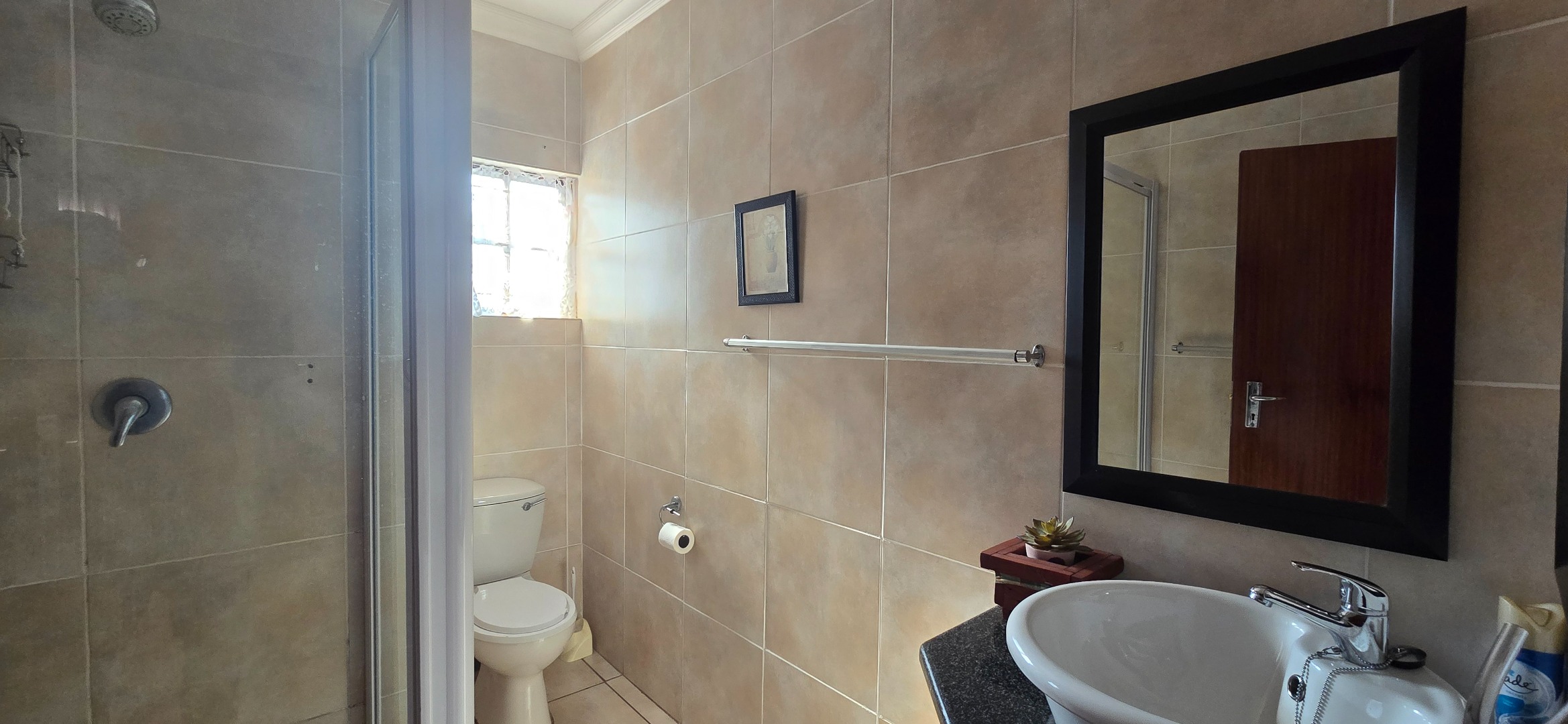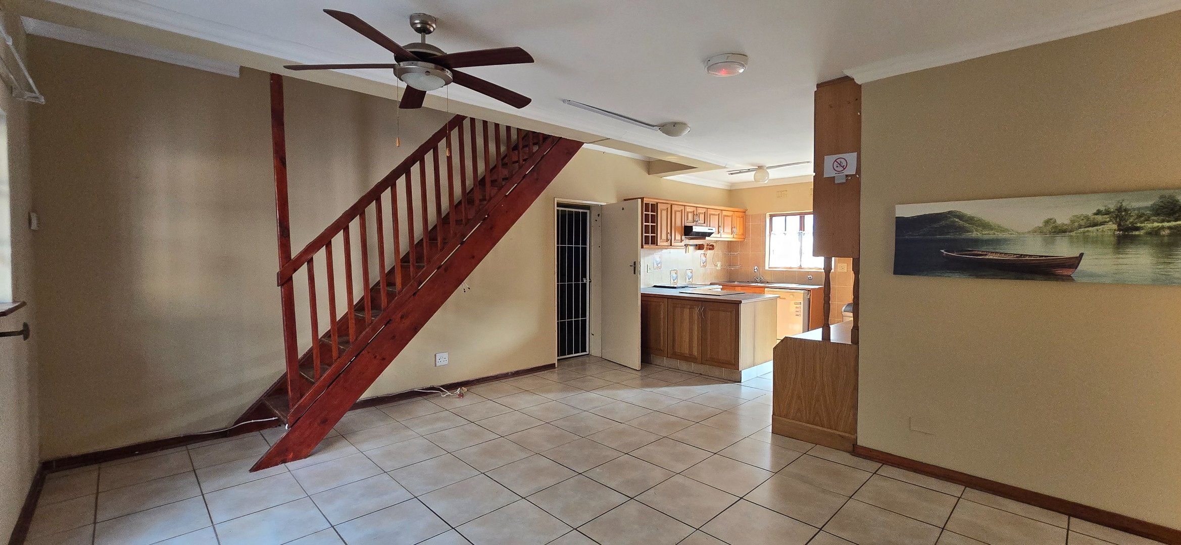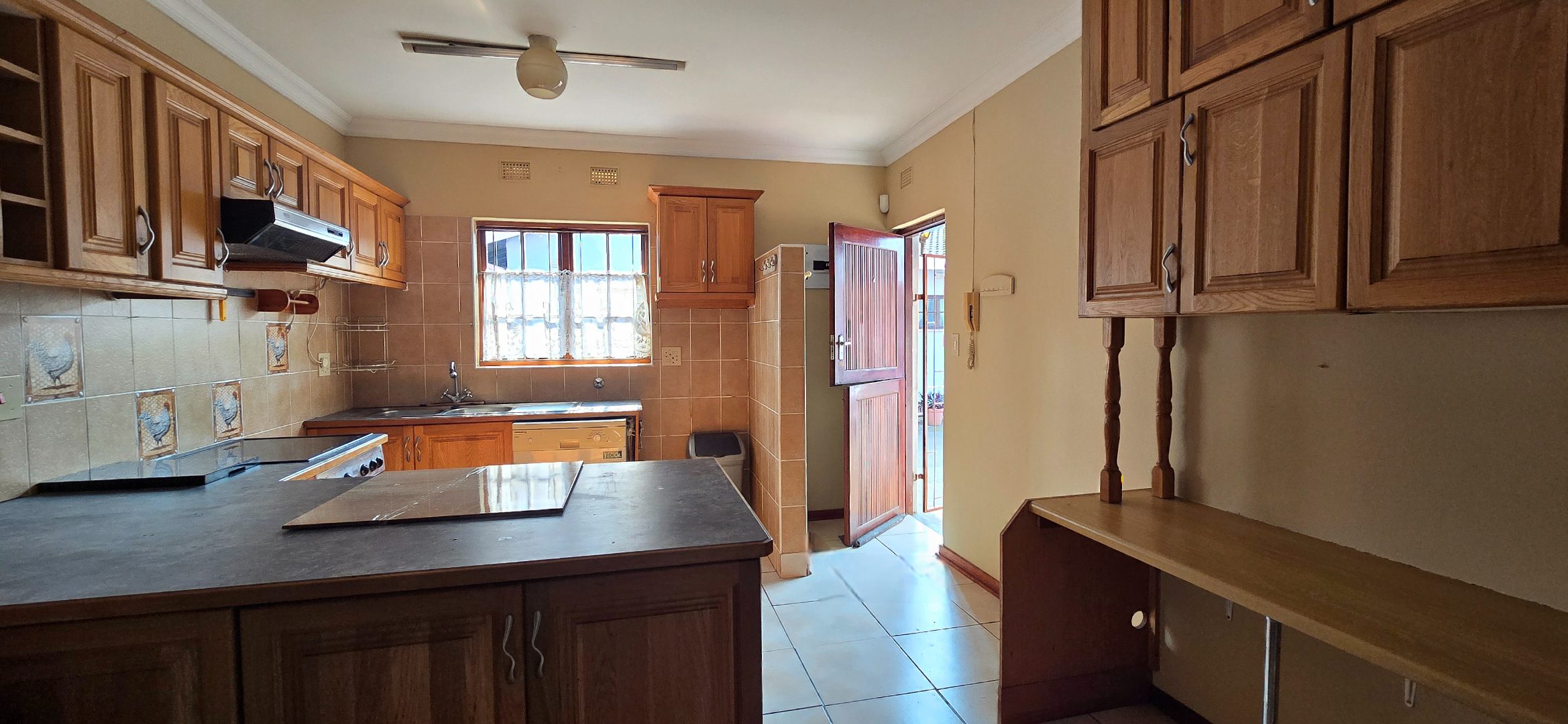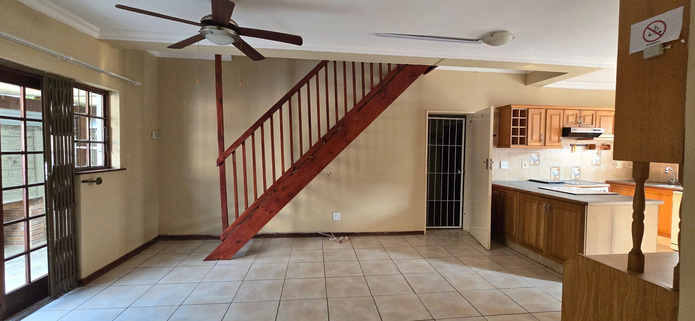 Discover this inviting 3-bedroom, 3-bathroom residence available for rent in a secure complex in Uvongo, Margate. Spanning 139 sqm of floor space on a 1390 sqm erf, this property offers comfortable living with a practical layout. The interior features an open-plan lounge and kitchen area, creating a cohesive space for daily activities and entertaining. The kitchen is well-equipped with ample wooden cabinetry, a built-in oven, hob, and extractor fan, a double sink, and tiled backsplashes, providing a functional environment for meal preparation. Tiled flooring extends throughout the home, ensuring easy maintenance.