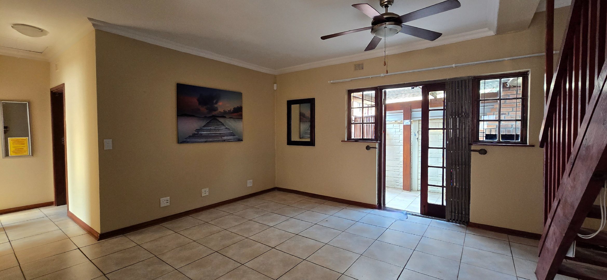 Discover this inviting 3-bedroom, 3-bathroom residence available for rent in a secure complex in Uvongo, Margate. Spanning 139 sqm of floor space on a 1390 sqm erf, this property offers comfortable living with a practical layout. The interior features an open-plan lounge and kitchen area, creating a cohesive space for daily activities and entertaining. The kitchen is well-equipped with ample wooden cabinetry, a built-in oven, hob, and extractor fan, a double sink, and tiled backsplashes, providing a functional environment for meal preparation. Tiled flooring extends throughout the home, ensuring easy maintenance.