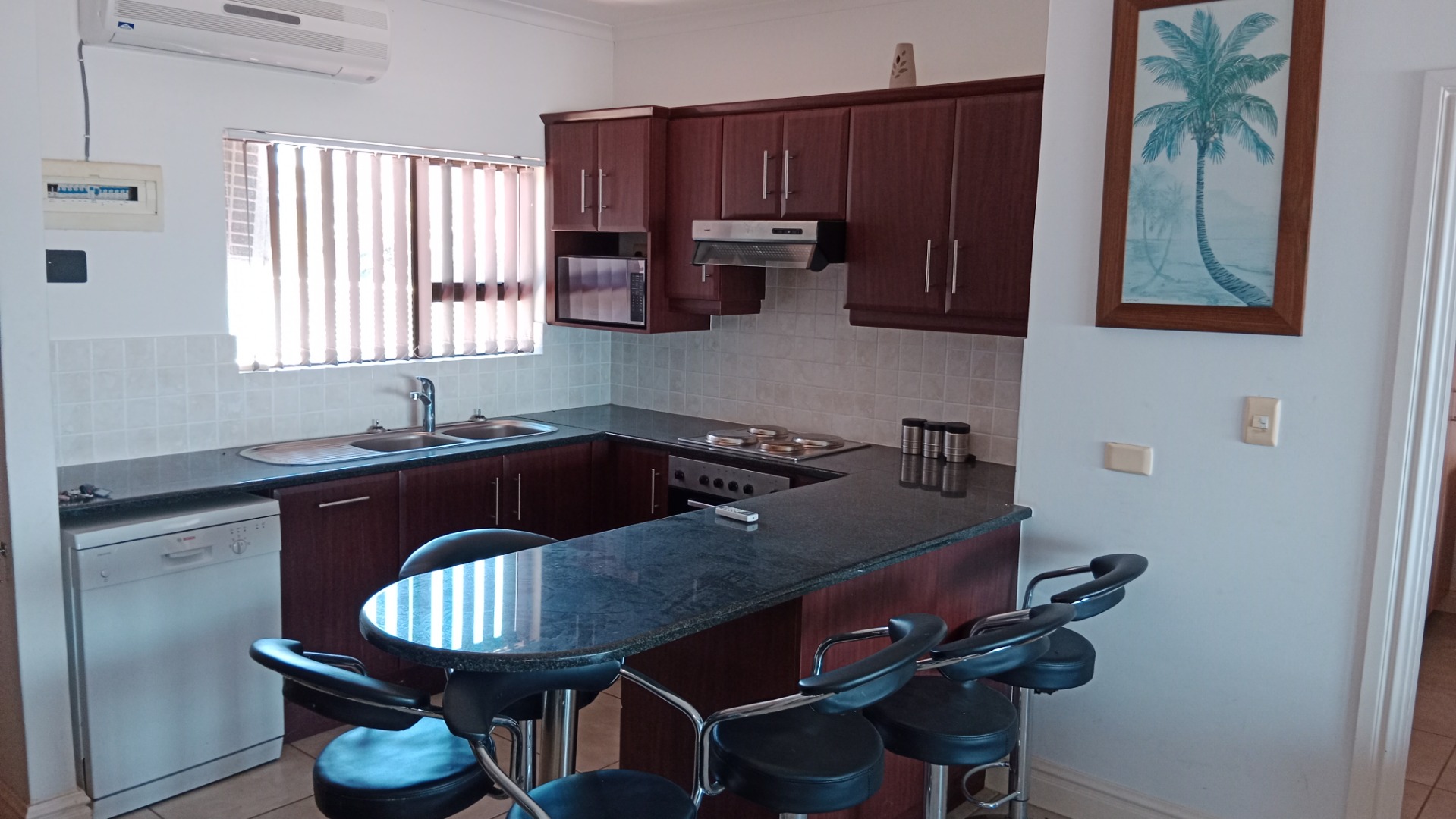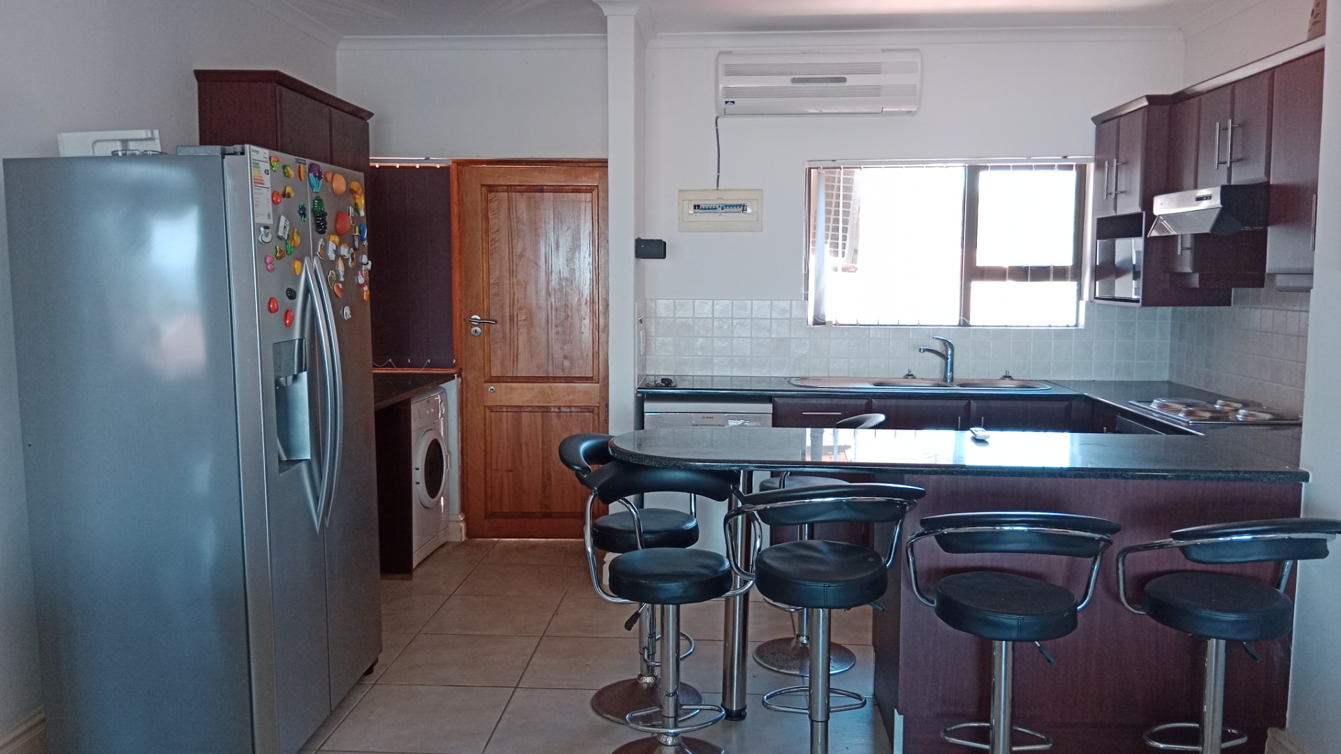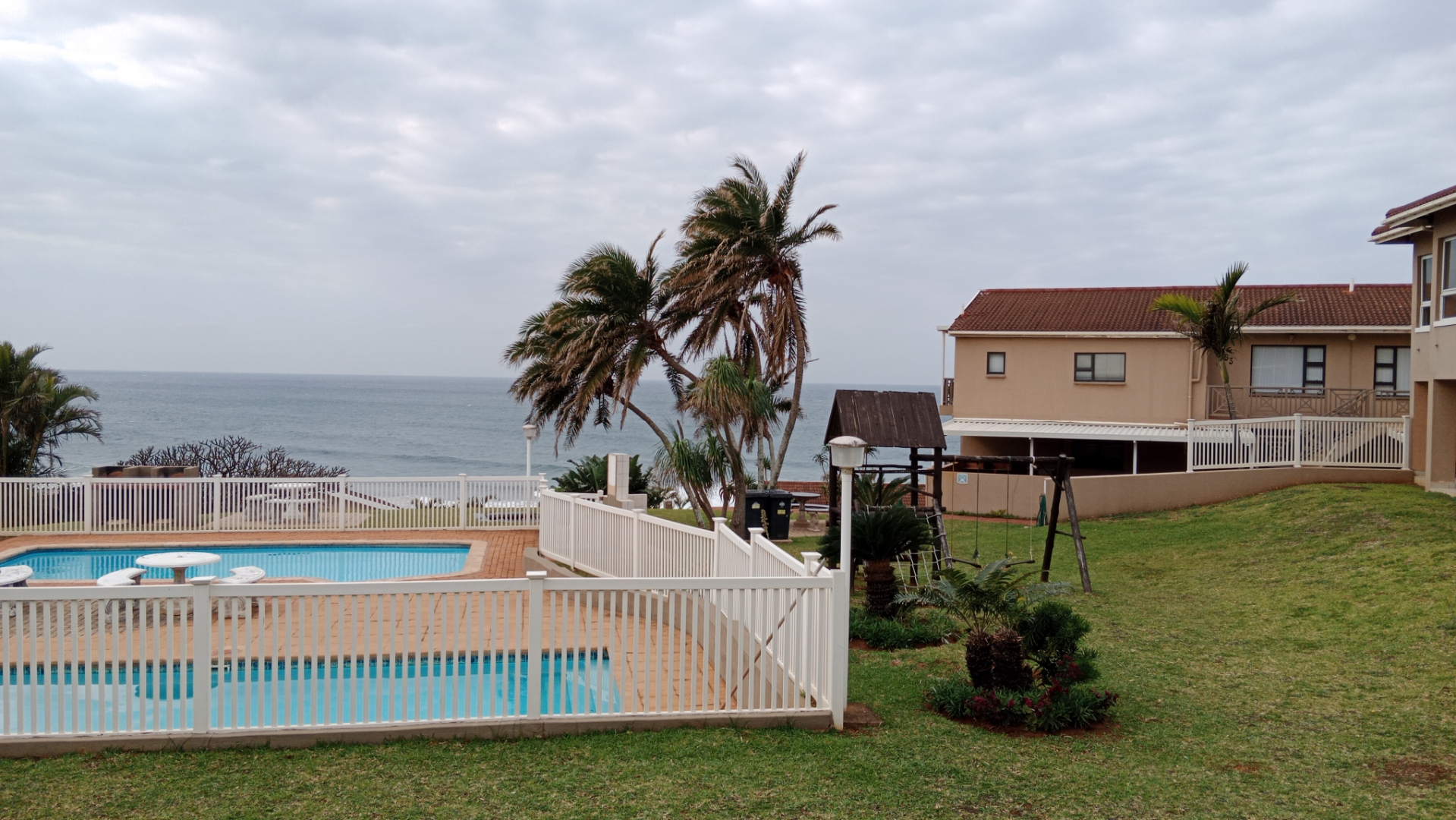 Discover comfortable coastal living in this modern 3-bedroom, 2-bathroom rental property, situated within a secure complex. This residence features a well-appointed kitchen, a spacious lounge, and a single garage, offering practical and inviting spaces for daily life. The exterior boasts a contemporary design with large windows, ensuring ample natural light throughout the home. The heart of this home is its functional kitchen, equipped with dark wood cabinetry, sleek granite-look countertops, and a convenient breakfast bar. Integrated appliances include a hob, oven, microwave, dishwasher, a large refrigerator, and a washing machine, providing everything needed for modern convenience. The open-plan living area seamlessly connects to the kitchen, creating an ideal environment for relaxation and entertaining. Tiled flooring extends throughout the property, ensuring easy maintenance. Enjoy breathtaking panoramic sea views from various rooms, enhancing the tranquil coastal atmosphere. The property also includes access to a refreshing pool, perfect for leisure and recreation. An entertainment area with generous counter space and seating provides an excellent spot for social gatherings. This home is ideally suited for those seeking a relaxed lifestyle by the ocean, whether as a permanent residence or a holiday retreat. Security is a priority, with the property benefiting from 24-hour security, offering peace of mind. Situated in the suburban coastal town of Mtwalume, South Africa, this location is perfect for those who appreciate beachside living. Key Features: * 3 Bedrooms, 2 Bathrooms * 1 Lounge, 1 Kitchen * 1 Garage * Panoramic Sea Views * Access to Pool * Modern Kitchen with Integrated Appliances * Entertainment Area * 24-Hour Security * Tiled Flooring