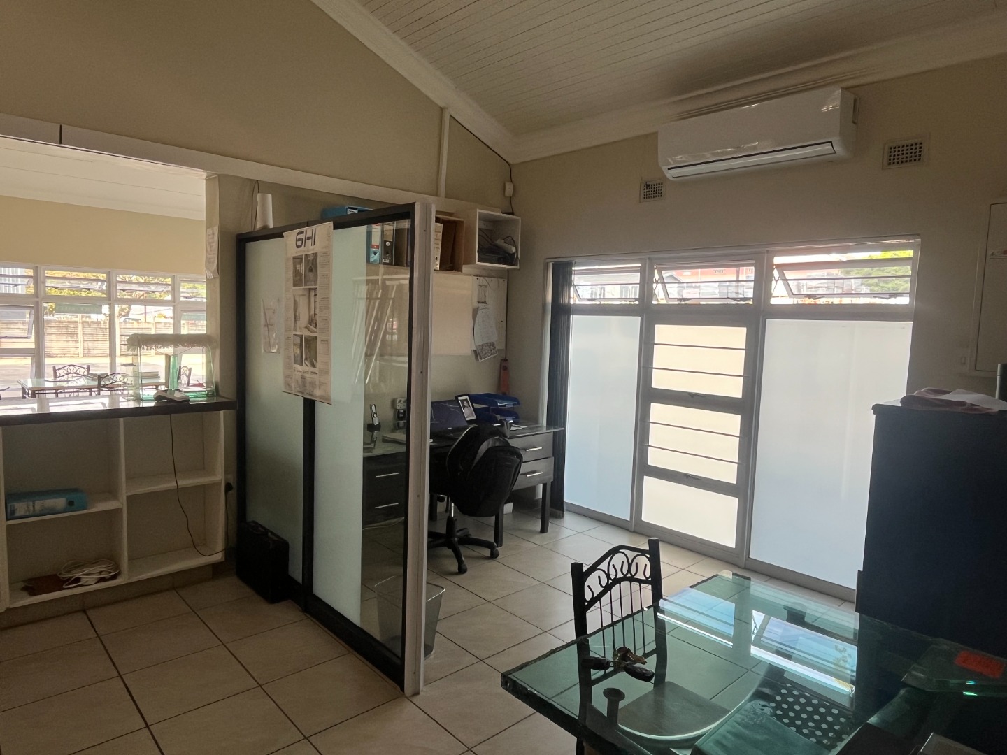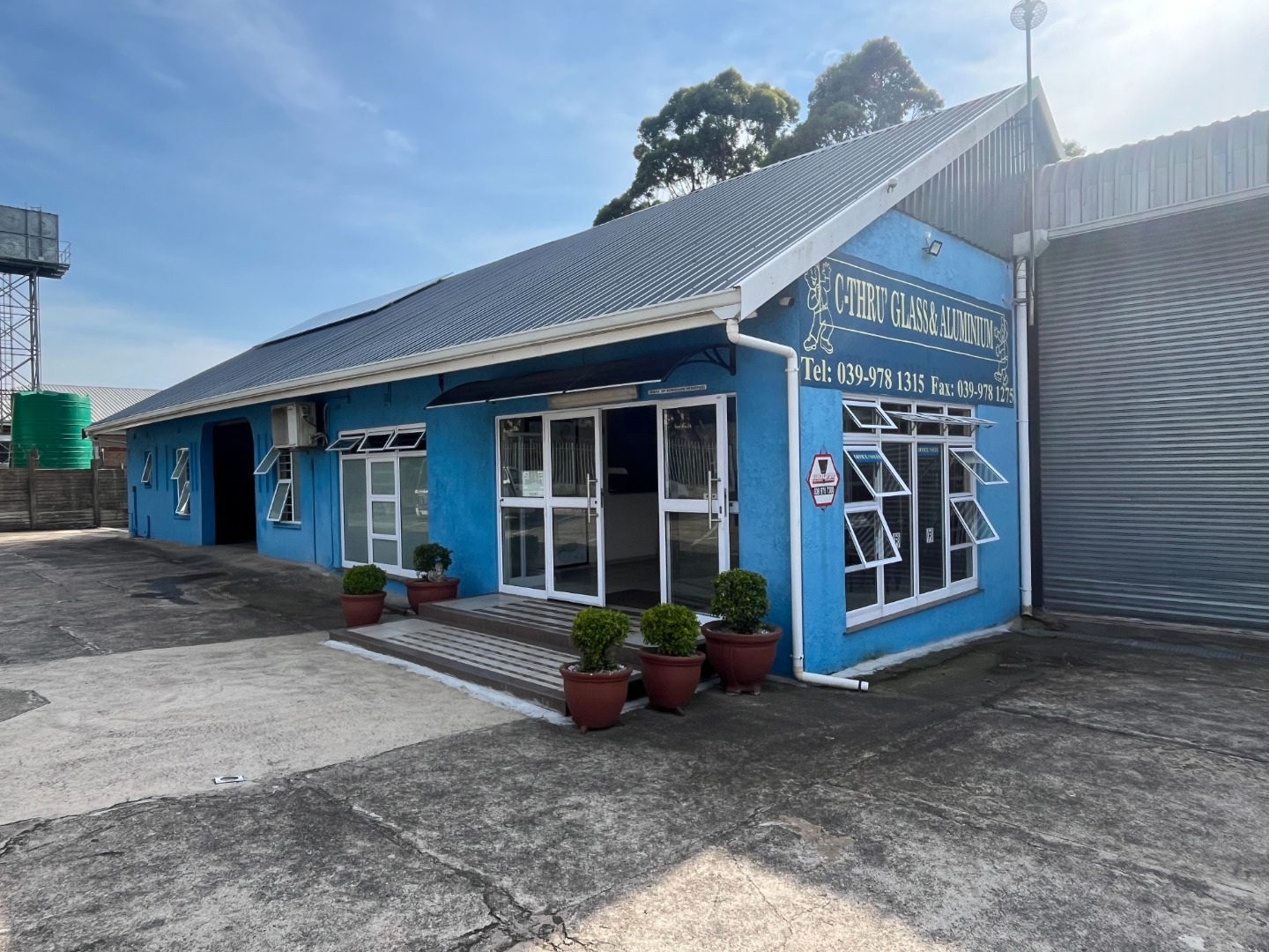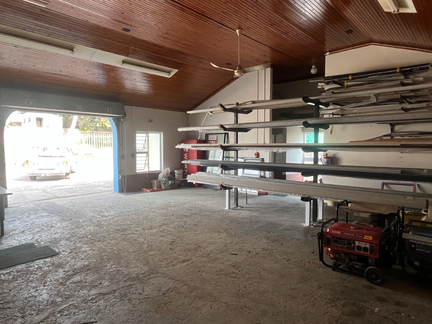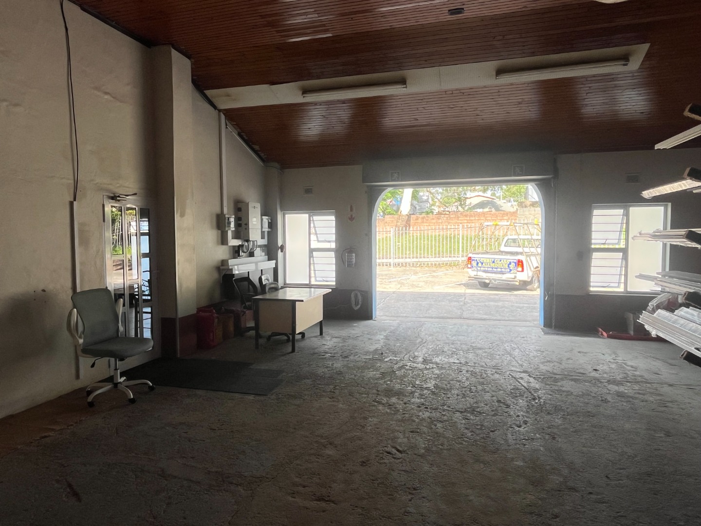 Park Rynie Commercial Warehouse with big office space offering a counter off reception area, kitchen and 2 bathrooms, show area space with big warehouse space with separate big garage door. Side space attached with extra work area. Outside u/cover with Jojo tank with motor, Solar runs all but big machine. Walled and fenced with remote main gate.1 aircon in main office with Fibre. Water and Electricity metered and extra on top.