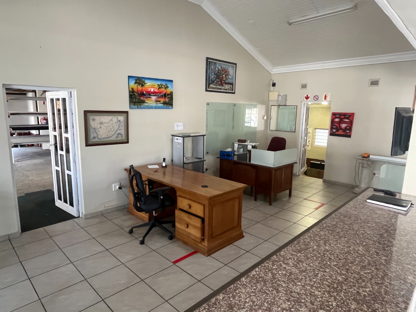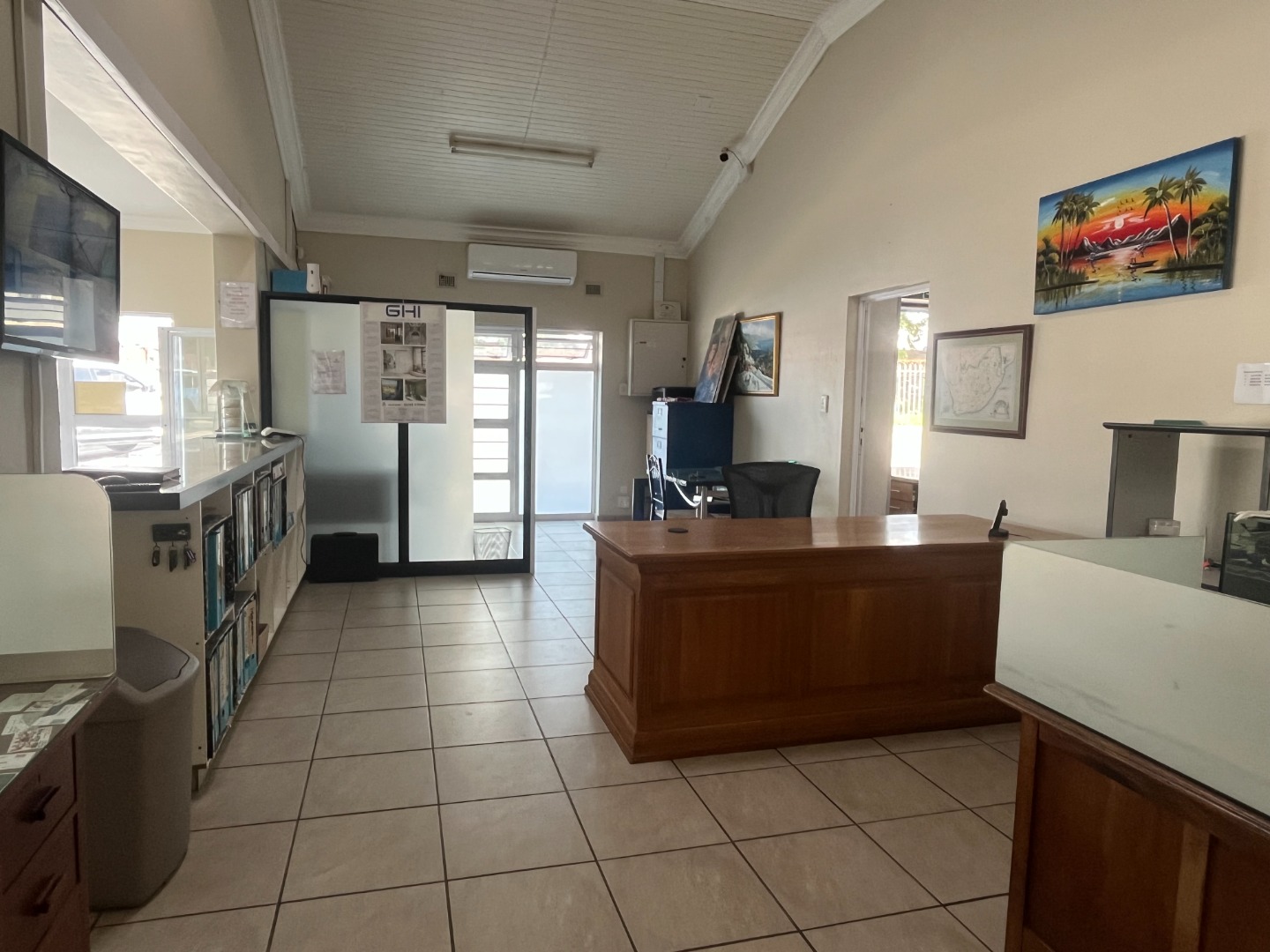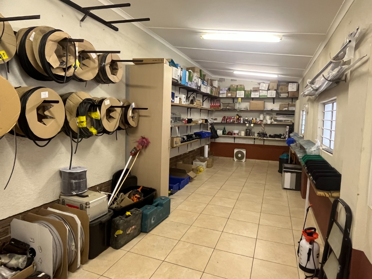 Park Rynie Commercial Warehouse with big office space offering a counter off reception area, kitchen and 2 bathrooms, show area space with big warehouse space with separate big garage door. Side space attached with extra work area. Outside u/cover with Jojo tank with motor, Solar runs all but big machine. Walled and fenced with remote main gate.1 aircon in main office with Fibre. Water and Electricity metered and extra on top.