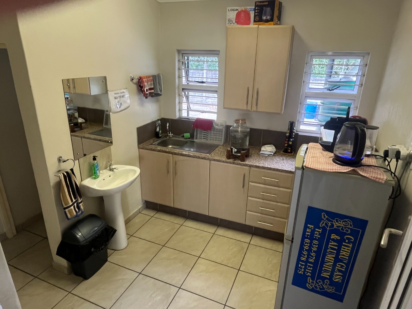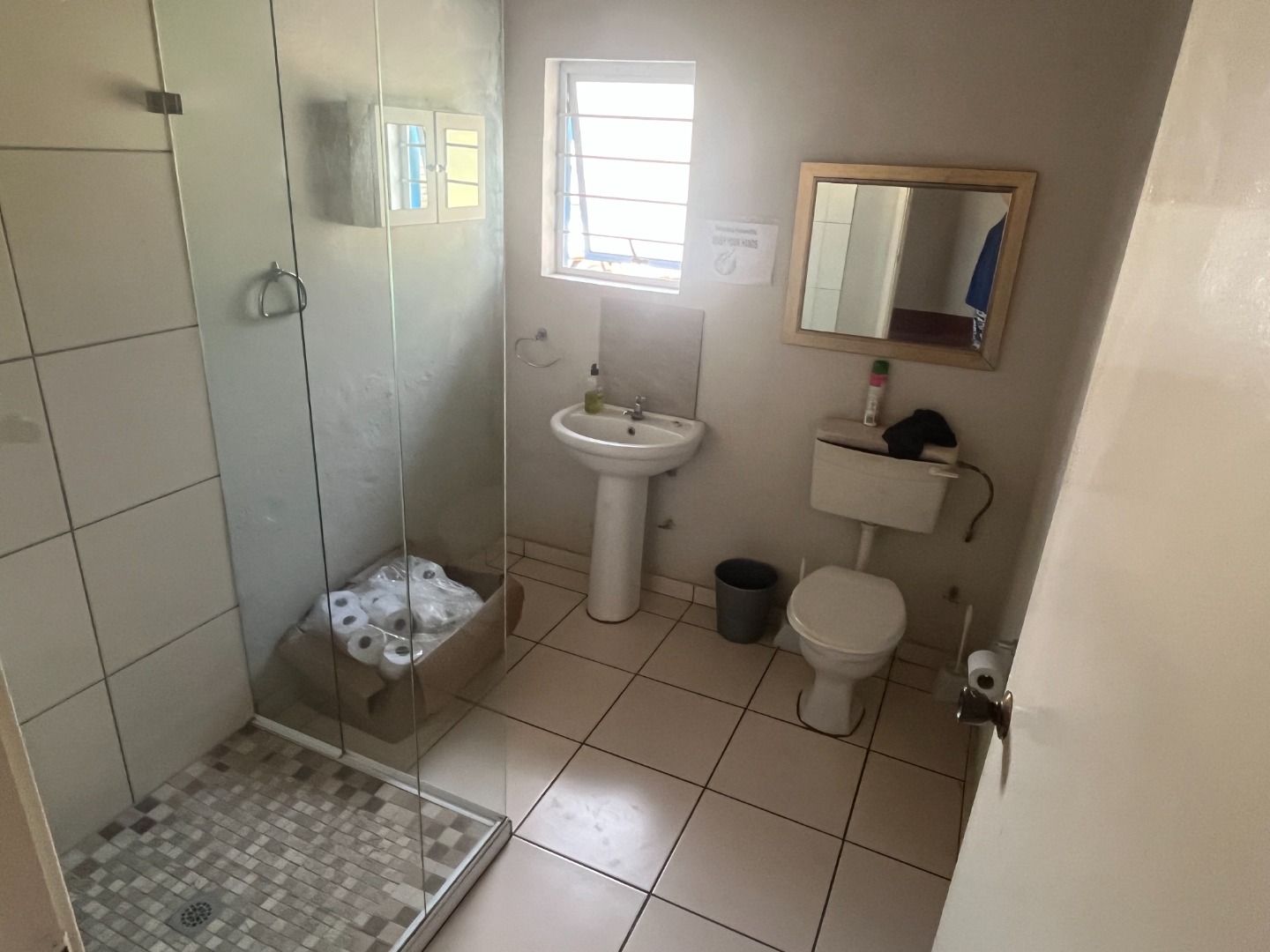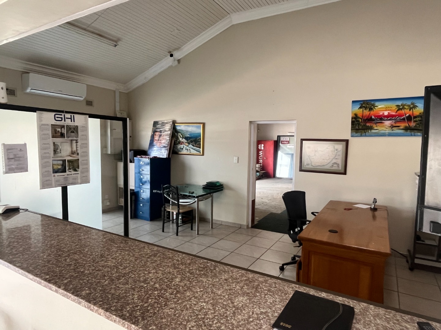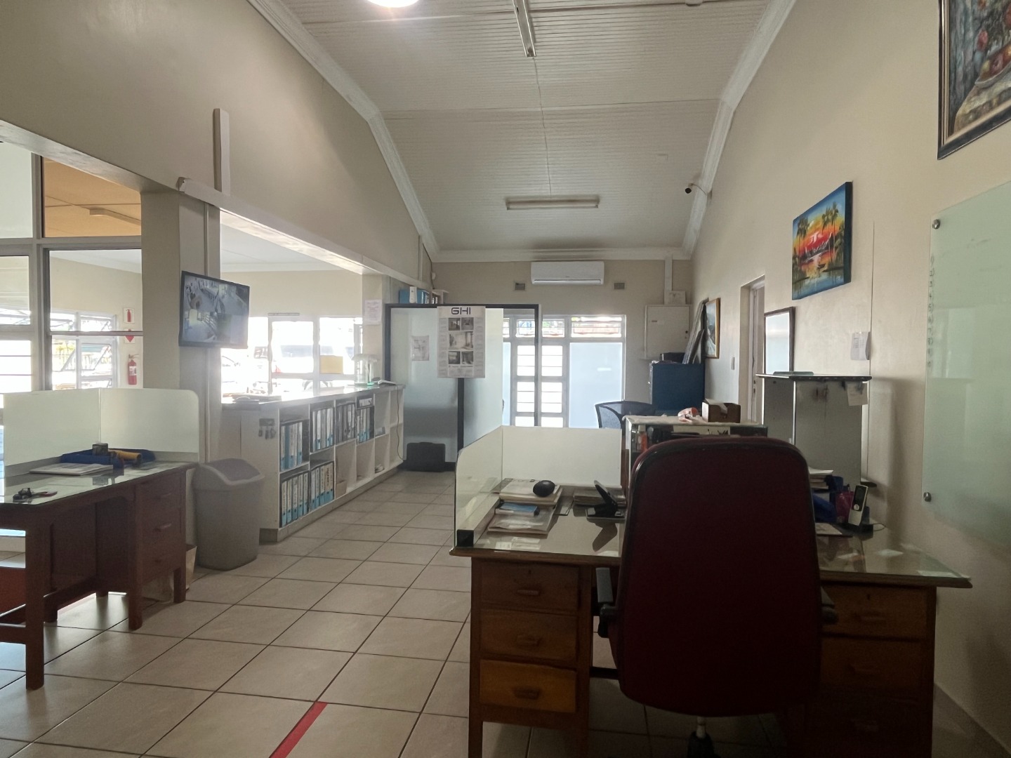 Park Rynie Commercial Warehouse with big office space offering a counter off reception area, kitchen and 2 bathrooms, show area space with big warehouse space with separate big garage door. Side space attached with extra work area. Outside u/cover with Jojo tank with motor, Solar runs all but big machine. Walled and fenced with remote main gate.1 aircon in main office with Fibre. Water and Electricity metered and extra on top.