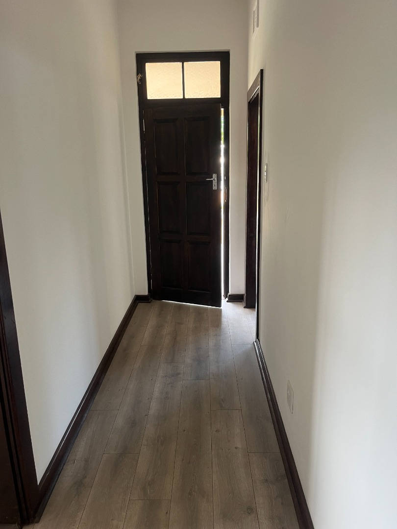 Fresh and revamped, Pet Friendly 2-bedroom ground floor unit with shower bathroom and separate toilet with washing machine connection. New fitted kitchen with gas hob and oven with dishwasher connection. Lounge with access to passage to patio overlooking the garden with undercover parking and storeroom. Remote main gate with intercom and walking distance to shops, beach, golf course and school. Patio can be enclosed with small gate (costs to tenant). Communal area to be used for the dogs BUT must be kept clean of any dog poop.