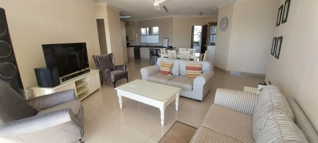 Very modern complex with 3 bedrooms and 3 bathrooms off the spacious living area and balcony overlooking the pool and garden with good sea views. Extra parking, basement parking with gate and storage options within the open basement. Stairs and lift with secure access into area as well as upper washing line facilities on open roof. Water tanks for emergencies and back up on power for lifts use only.