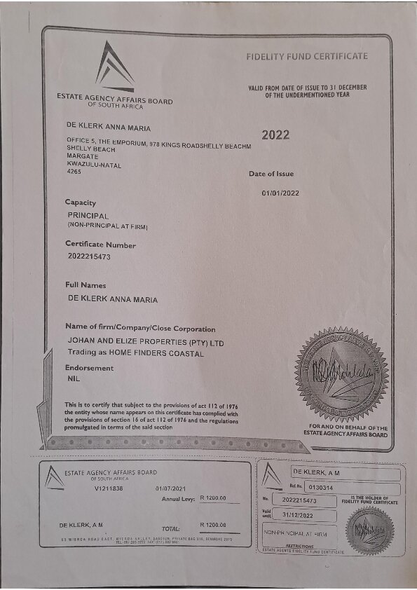 About Anne De Klerk Title: Full Status Property Practitioner Registered with the PPRA FFC Number: 2.0252301819E+14