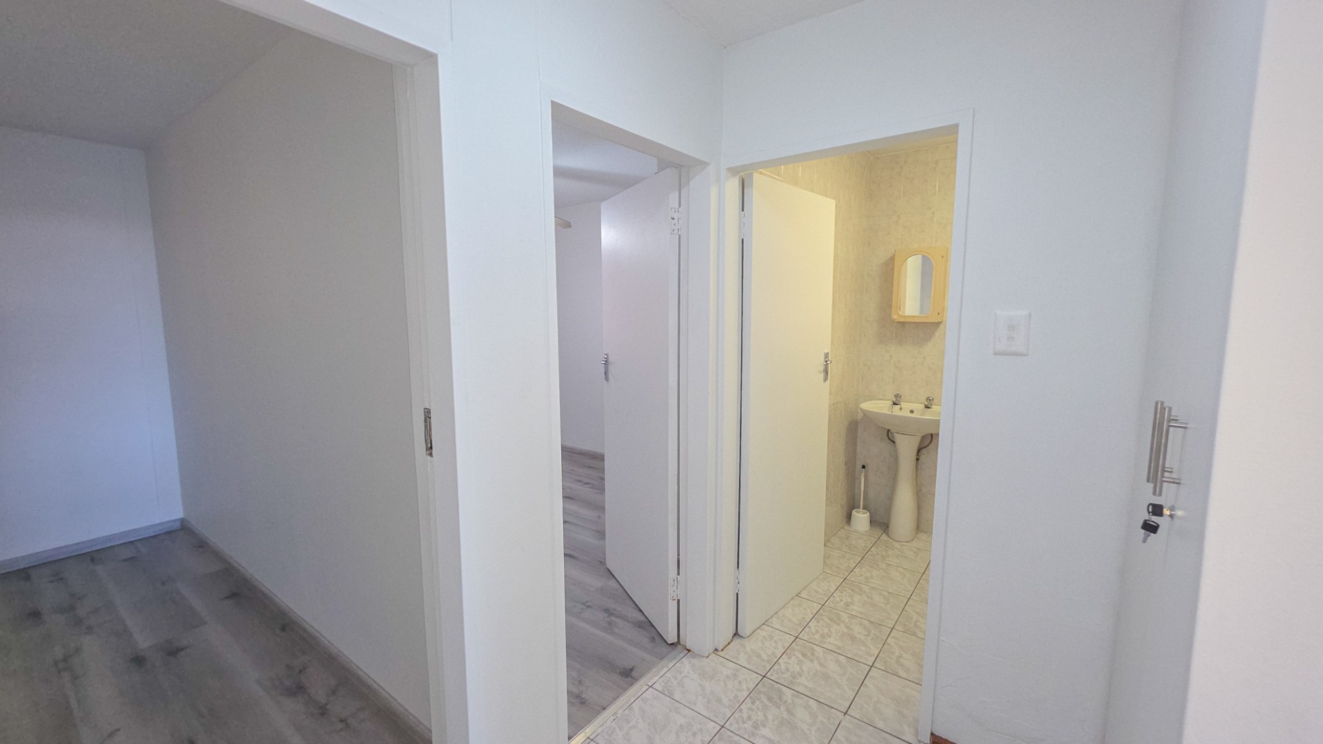 All three bedrooms feature new laminated flooring, adding warmth and a modern touch while providing comfortable accommodation for family or guests. The main bedroom includes an en suite bathroom for added privacy, and the home maintains a clean and cohesive feel throughout.