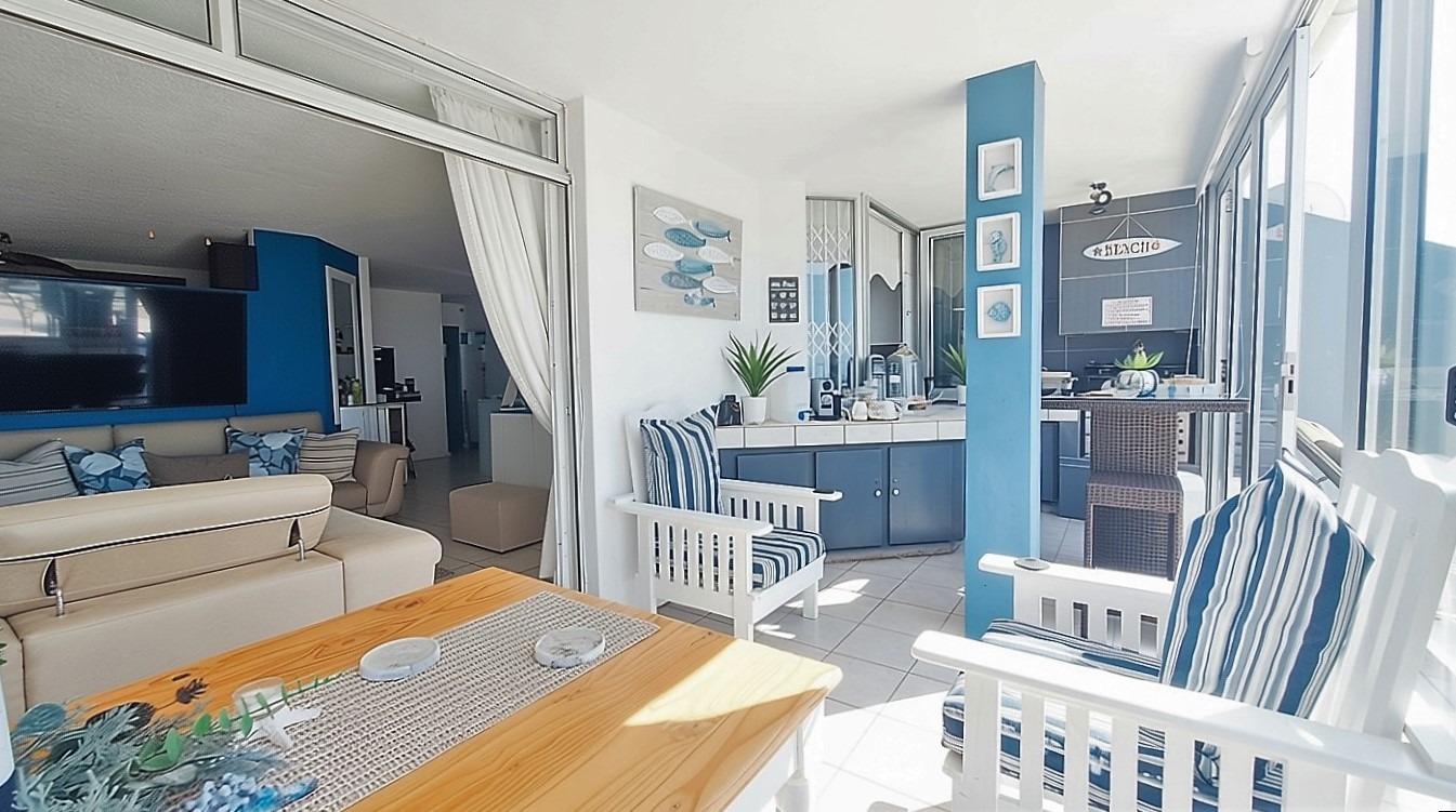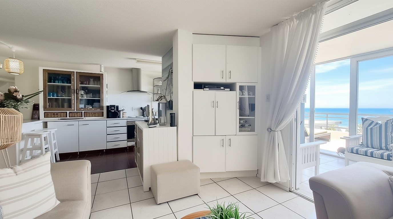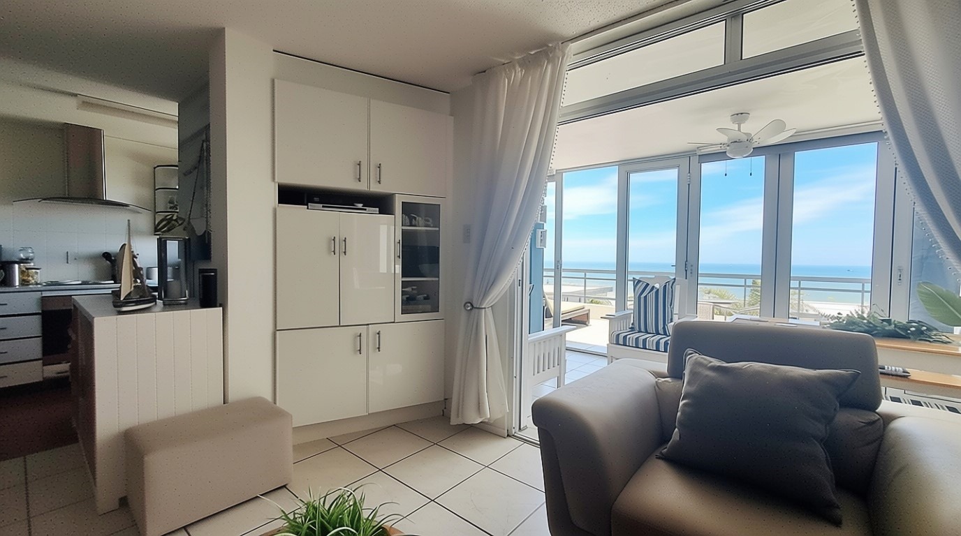 Sole - Mandate Discover coastal living at its finest in this inviting 2-bedroom, 2-bathroom apartment located in Manaba Beach, Margate. This furnished residence offers an exceptional opportunity to embrace a relaxed South African lifestyle, complete with breathtaking panoramic sea views that greet you from expansive glass doors.