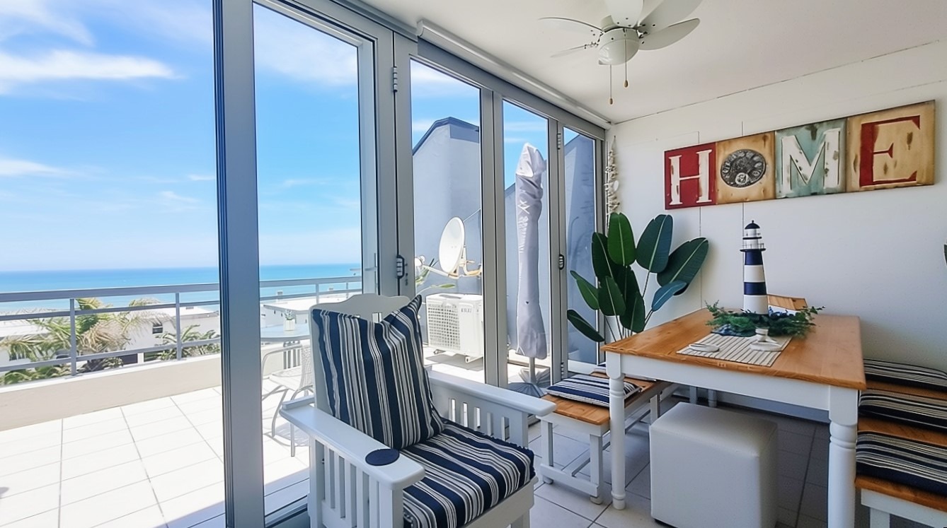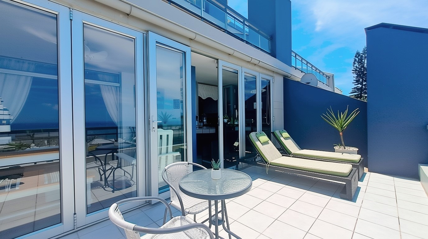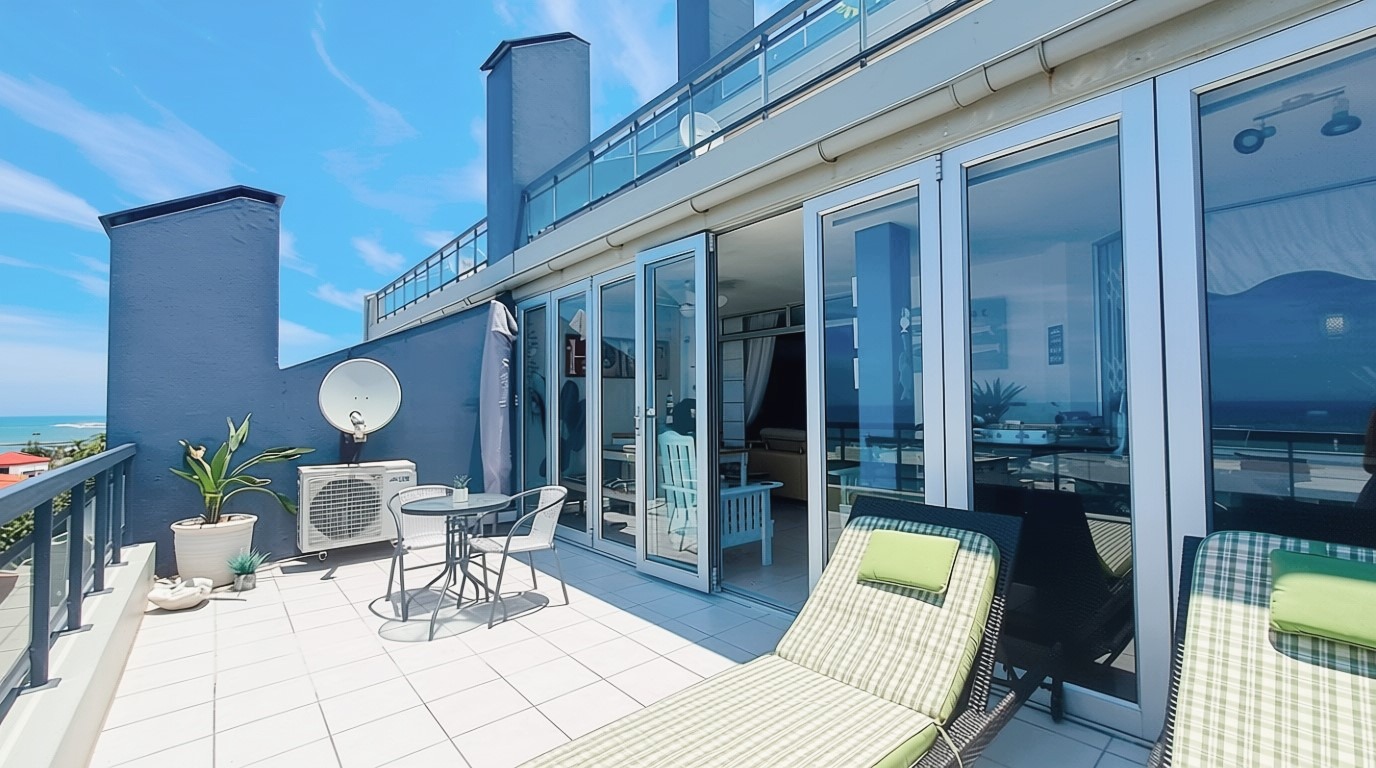 Sole - Mandate Discover coastal living at its finest in this inviting 2-bedroom, 2-bathroom apartment located in Manaba Beach, Margate. This furnished residence offers an exceptional opportunity to embrace a relaxed South African lifestyle, complete with breathtaking panoramic sea views that greet you from expansive glass doors.