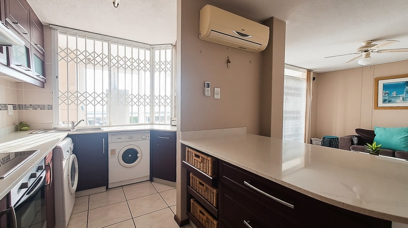 Sole Mandate - This inviting two-bedroom, two-bathroom residence is situated within a desirable complex in Manaba Beach, offering an excellent opportunity for a holiday home or permanent coastal living. The property features an open-plan design, enhancing the sense of space and natural light, complemented by sliding doors that lead to a private patio. Residents can enjoy the convenience of a private pool, perfect for relaxation and entertaining in the South African sunshine.
