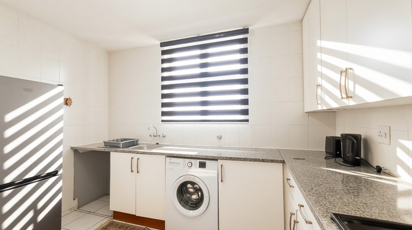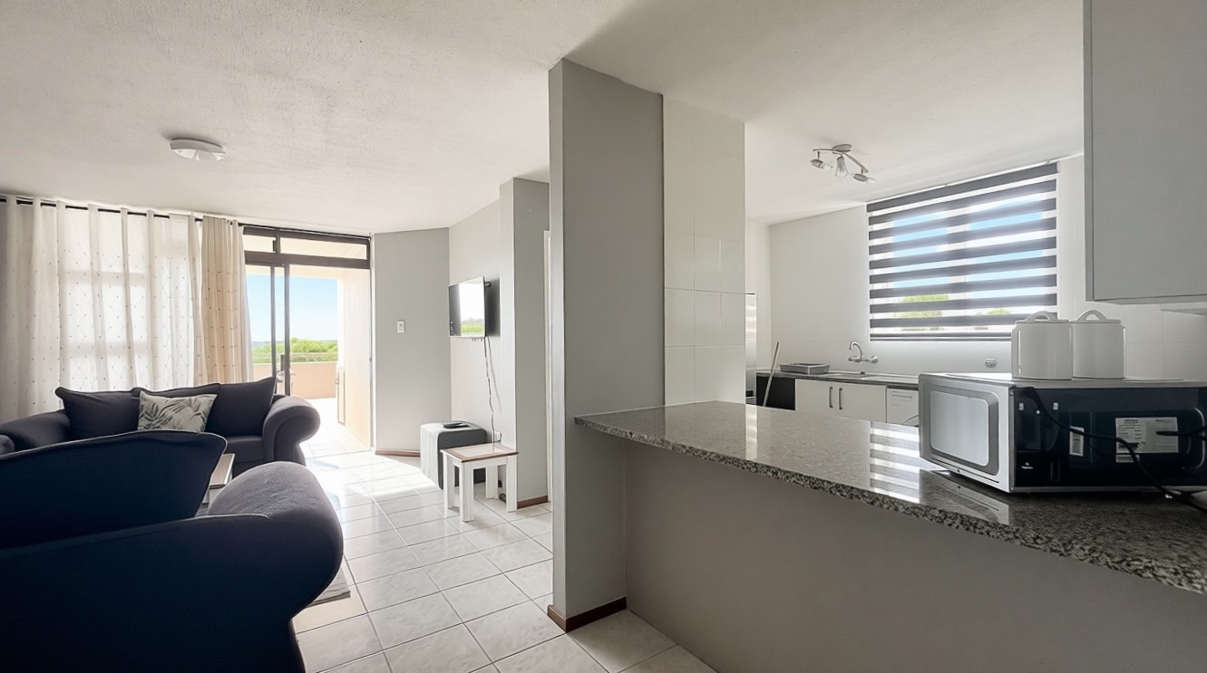 Discover coastal living in this inviting 3-bedroom, 2-bathroom apartment located in the vibrant Manaba Beach, Margate. This furnished residence offers an open-plan layout, seamlessly connecting the living, dining, and kitchen areas, all bathed in natural light. The modern kitchen features white cabinetry, granite-look countertops, a breakfast bar, and an integrated washing machine, providing both style and functionality.