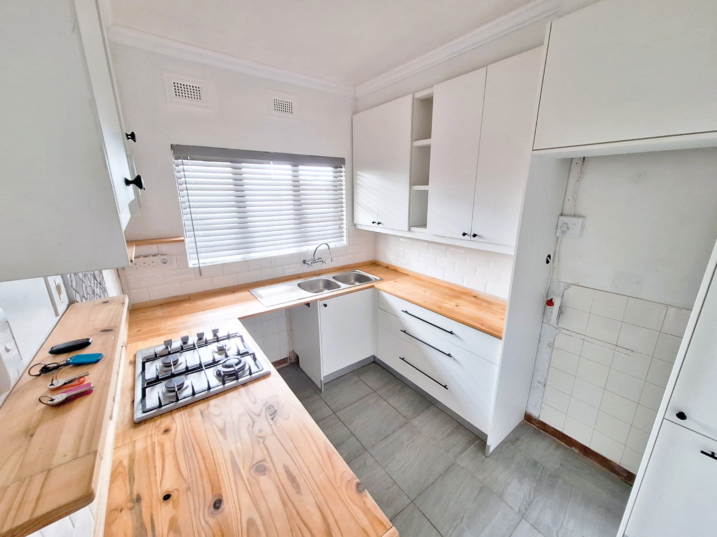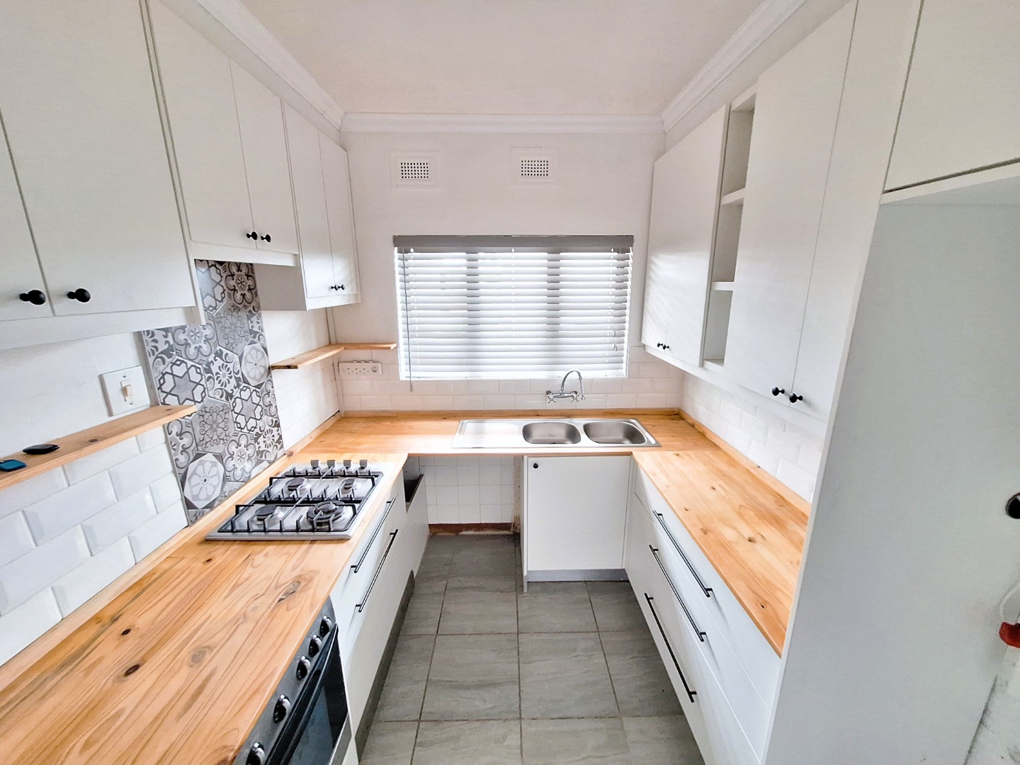 1 x Beautiful modern kitchen with ample cupboard space and a gas stove.