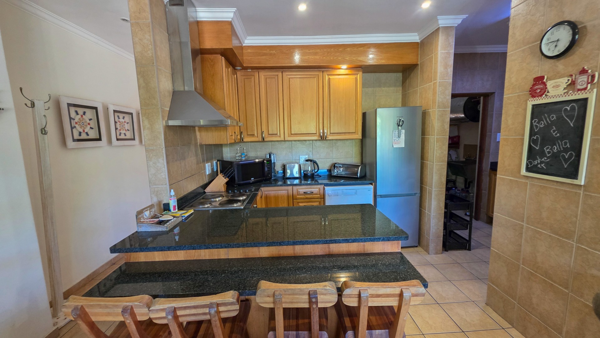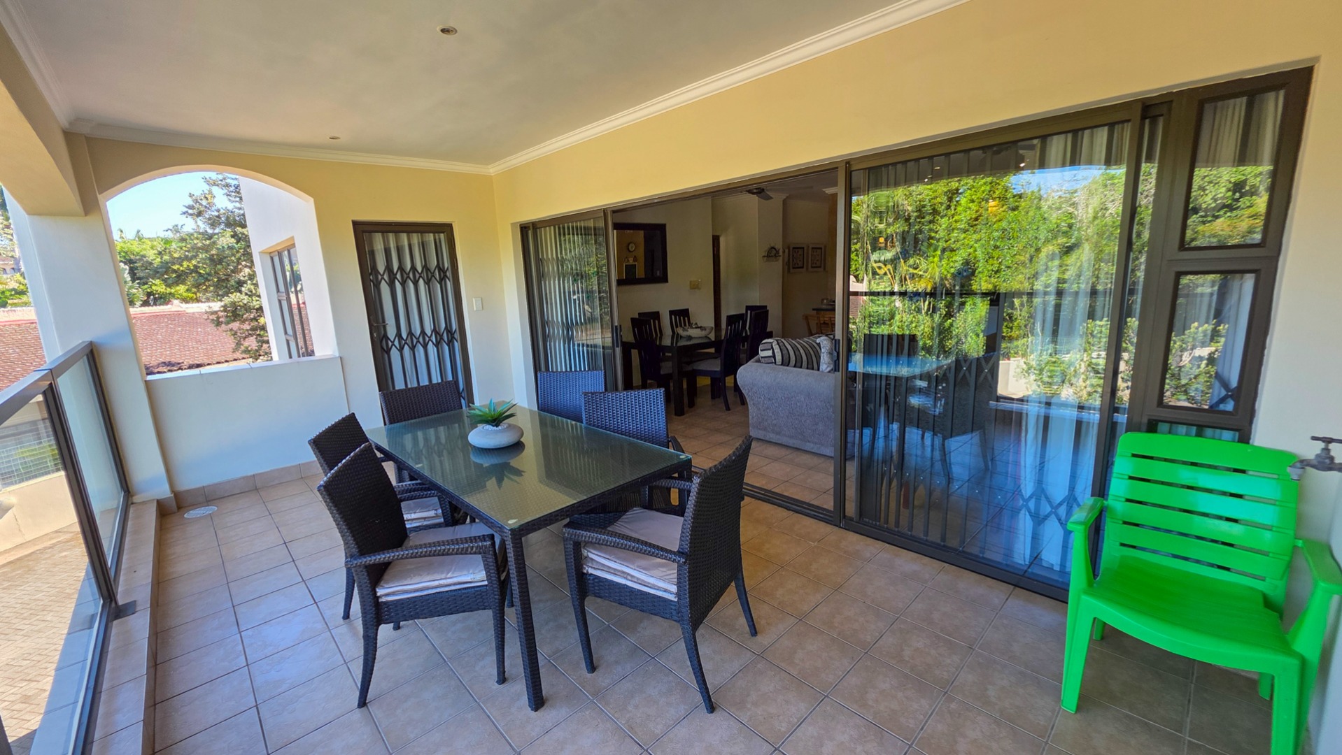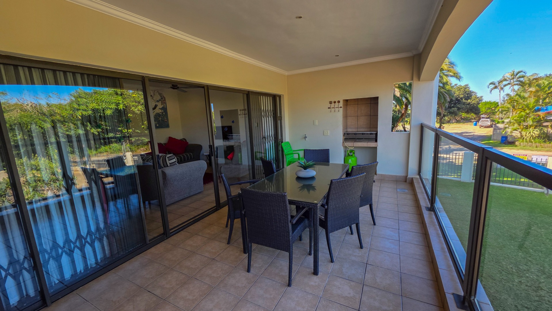 The heart of the home is a stylish kitchen adorned with granite countertops, seamlessly flowing into a separate scullery and laundry/storage area. An airy lounge and elegant dining space open onto a patio. As an added bonus, this exquisite property comes fully furnished with top-of-the-line furniture—allowing you to simply move in and start living the dream. Covered parking completes the offering, ensuring convenience and peace of mind.