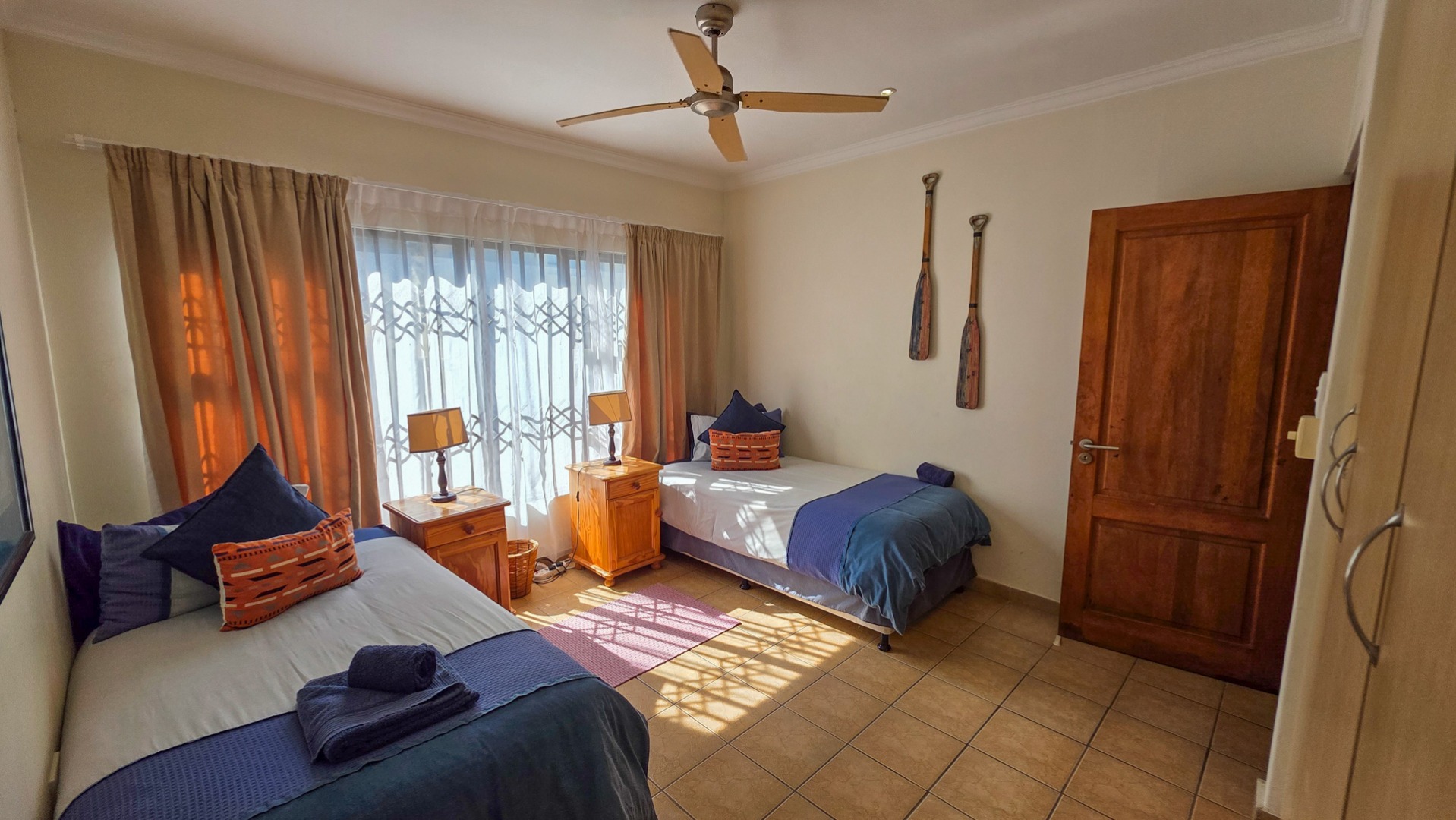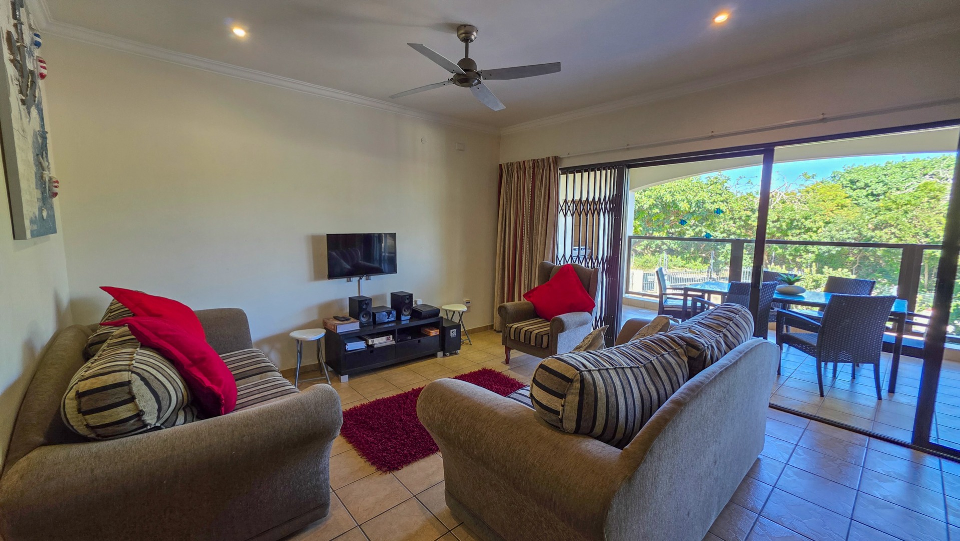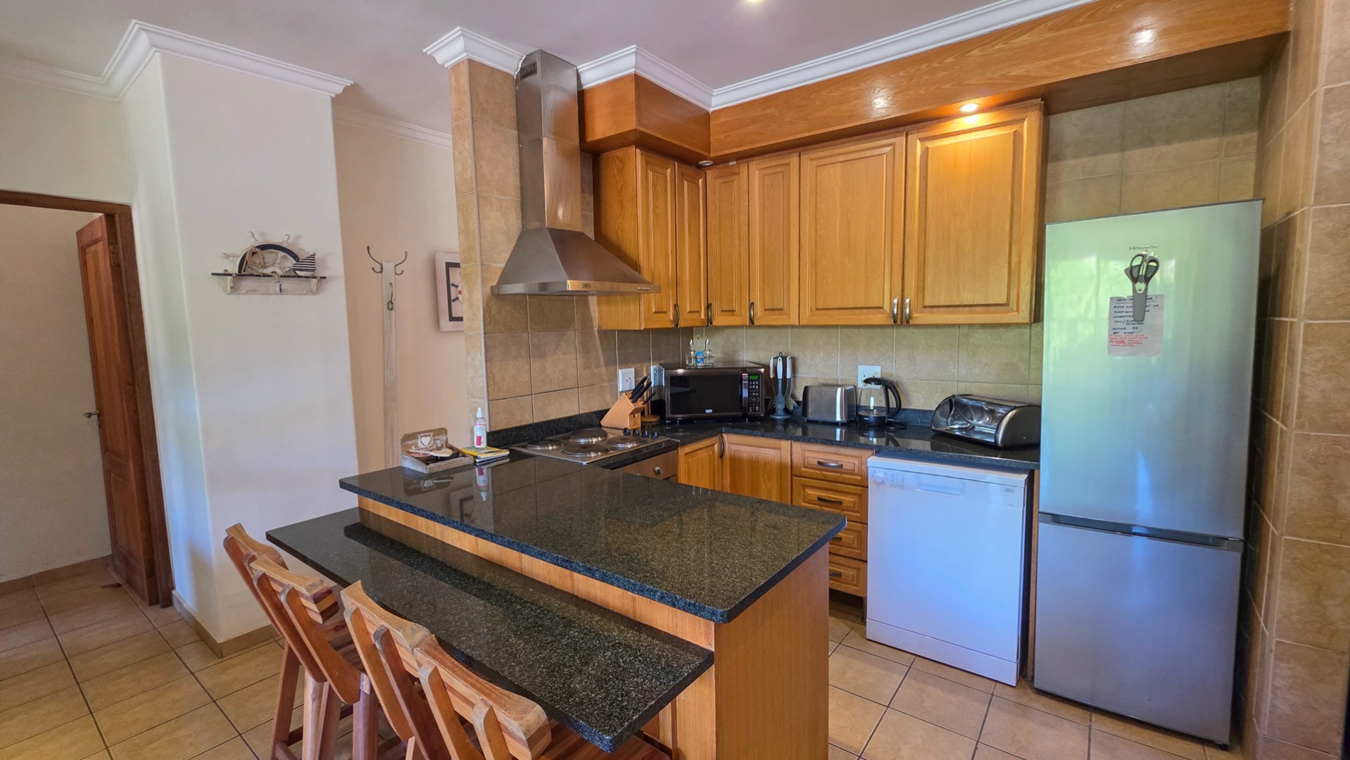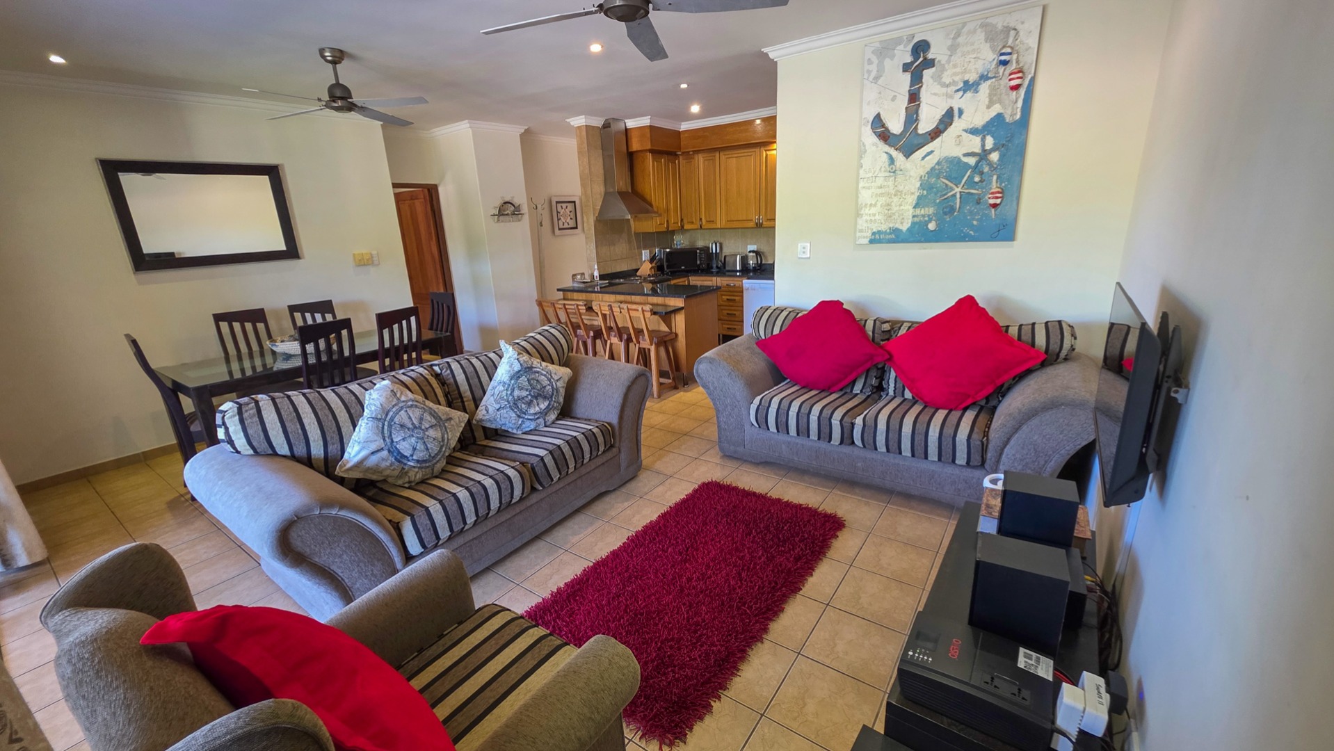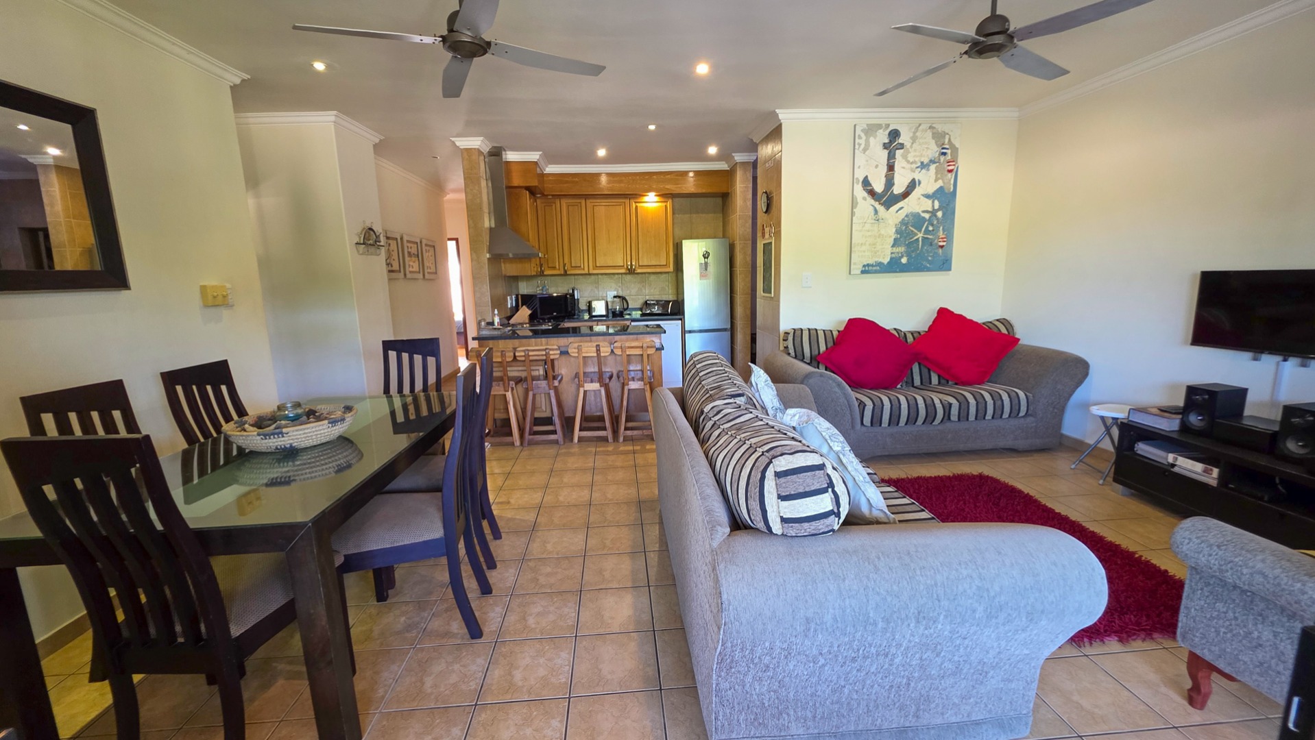 Nestled in the serene coastal haven of Ramsgate, right on the border of picturesque Southbroom, lies this impeccably maintained and secure complex—an idyllic retreat just 50 meters from the soft sands and rolling waves of the Indian Ocean. Surrounded by lush, manicured gardens and featuring a sparkling communal pool, this property offers a lifestyle of relaxed sophistication. Step inside to discover a spacious, beautifully appointed home boasting three generously sized bedrooms and two modern bathrooms, including an en-suite off the master suite.