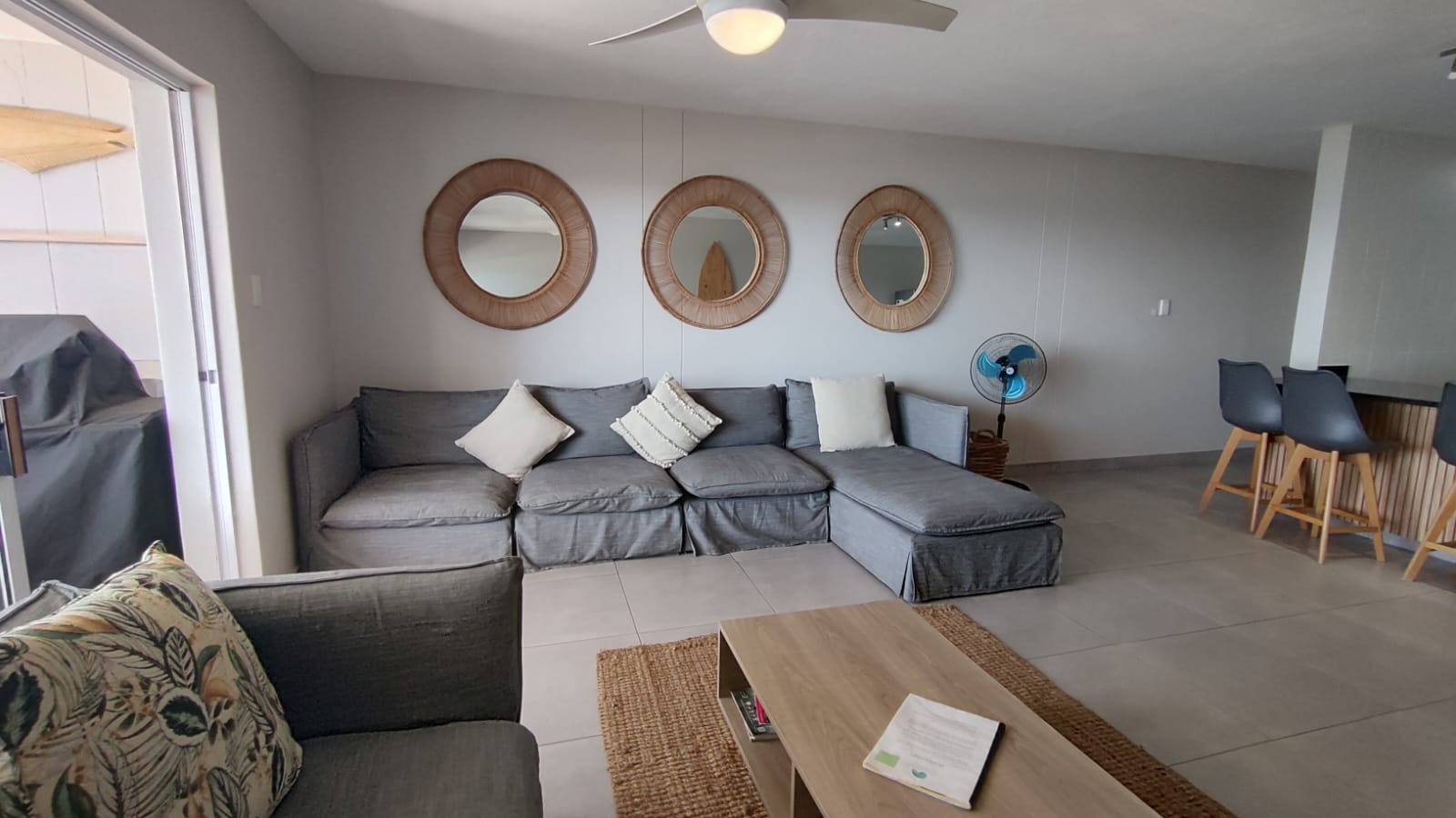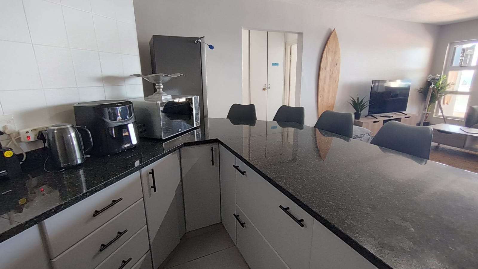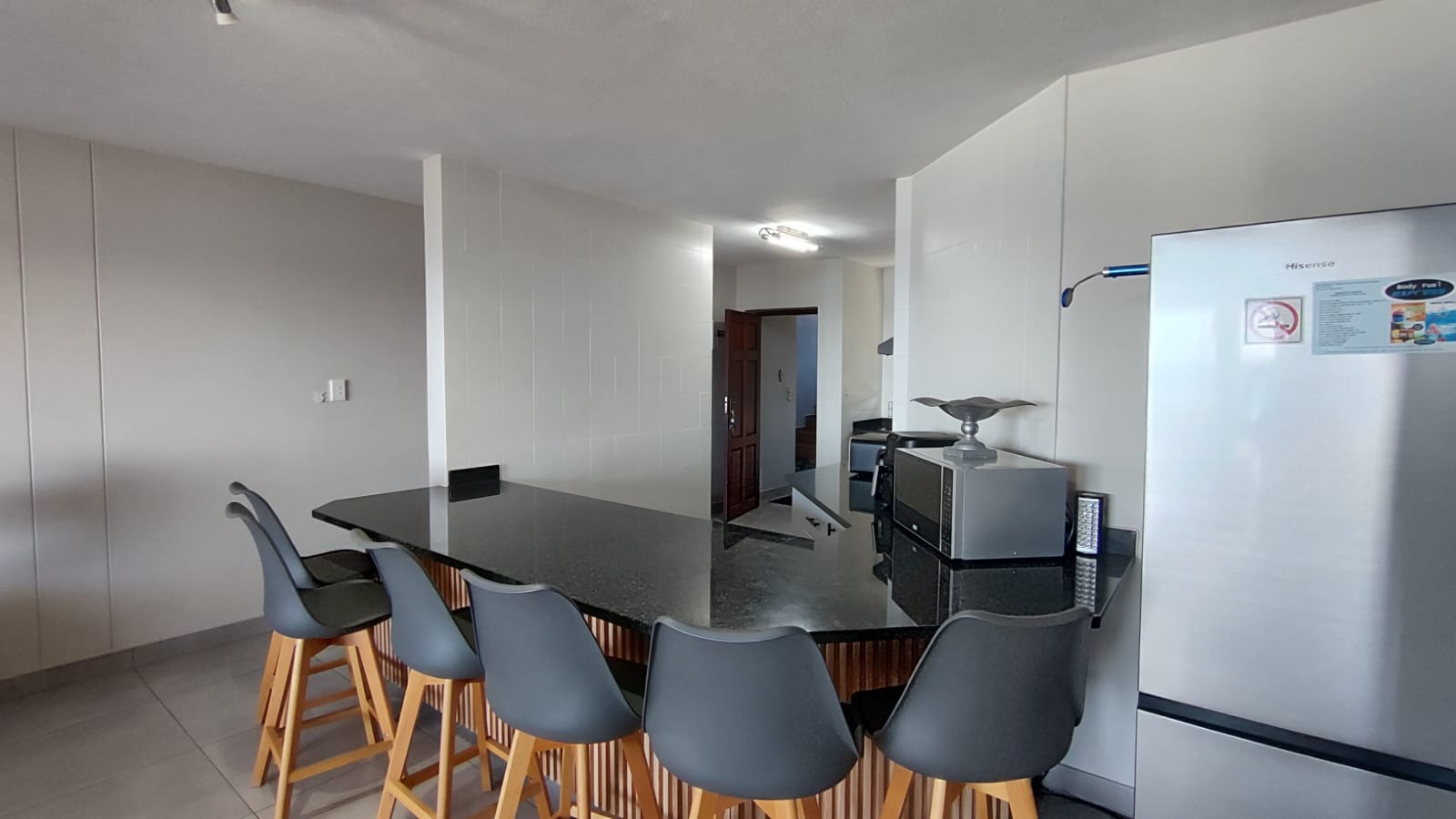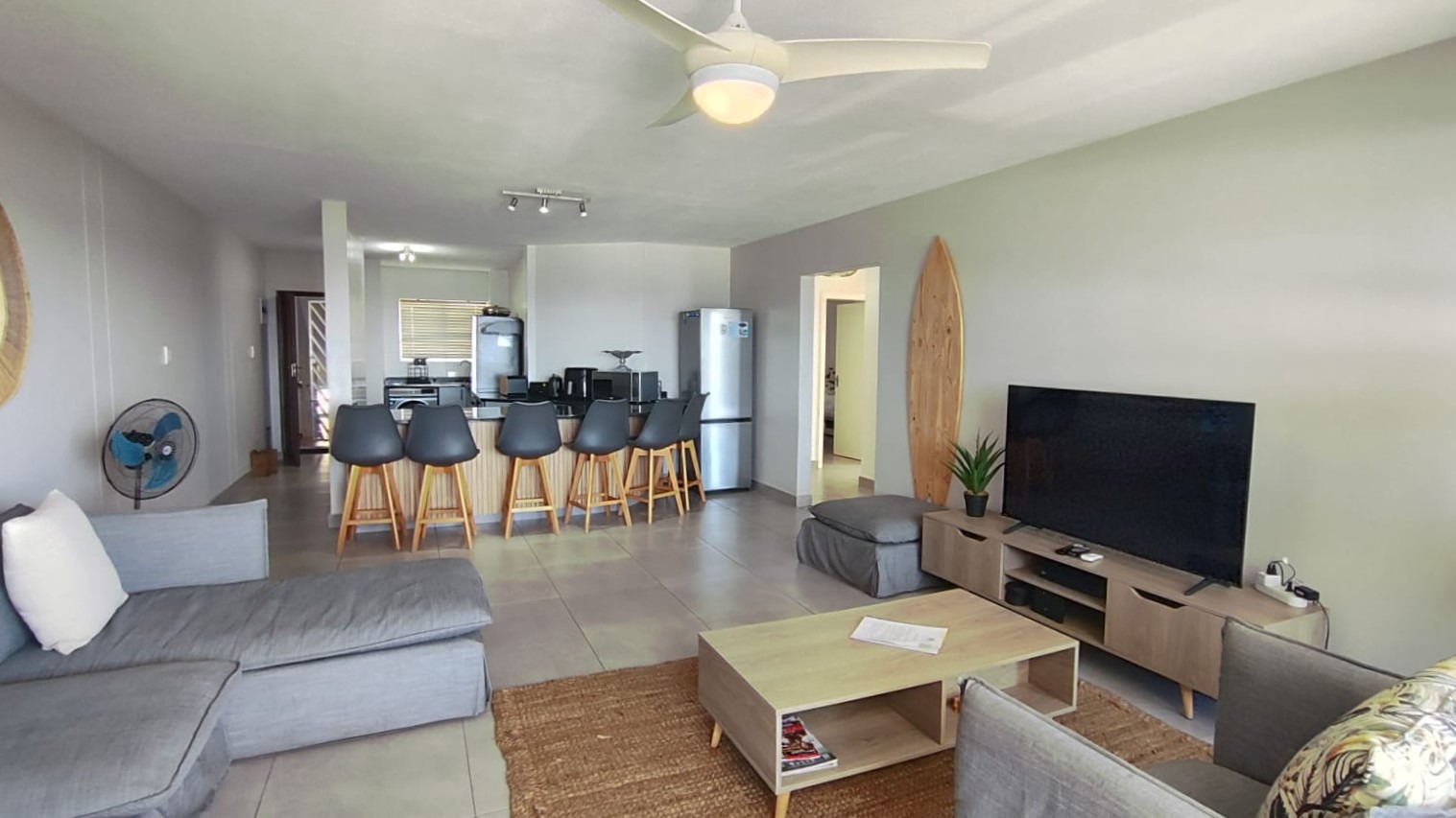 A defining feature of this property is the expansive private balcony, which walks from the spacious main living area, and offers breathtaking panoramic Indian ocean views. Equipped with modern glass railings that ensure an unobstructed view. darts. The balcony allows gas braaiing and there is also a communal braai for wood/charcoal in the swimming pool area. This outdoor oasis is perfect for entertaining and enjoying the stunning coastal scenery.