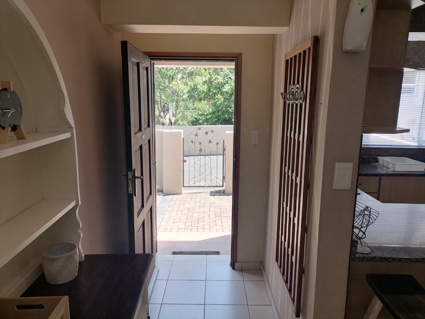 The residence comprises three well-proportioned bedrooms and two bathrooms, including a private ensuite for added convenience. The interior is clean and well-maintained, offering a cohesive living experience. Access to outdoor spaces is seamless, with sliding doors leading to various private areas.