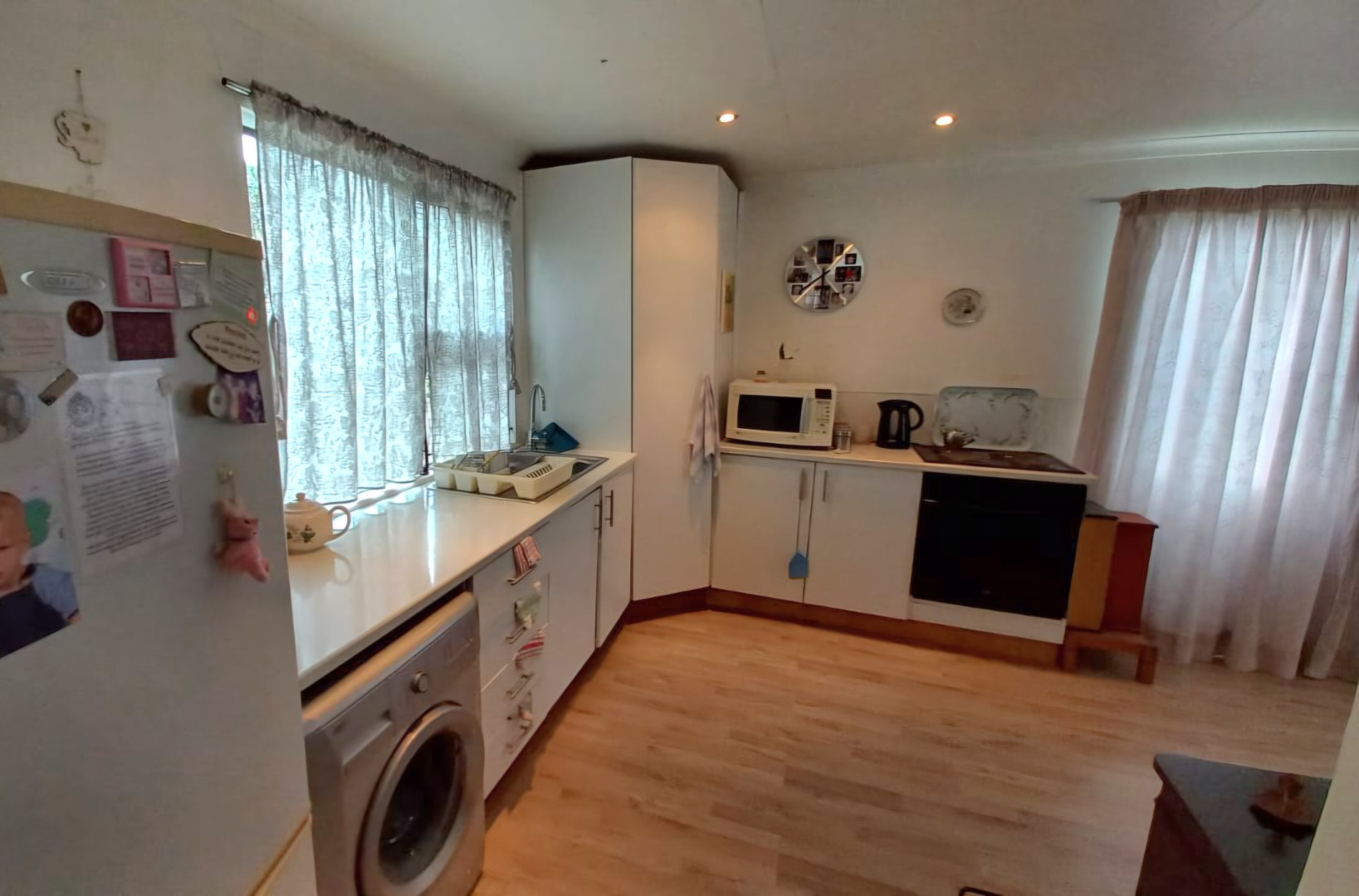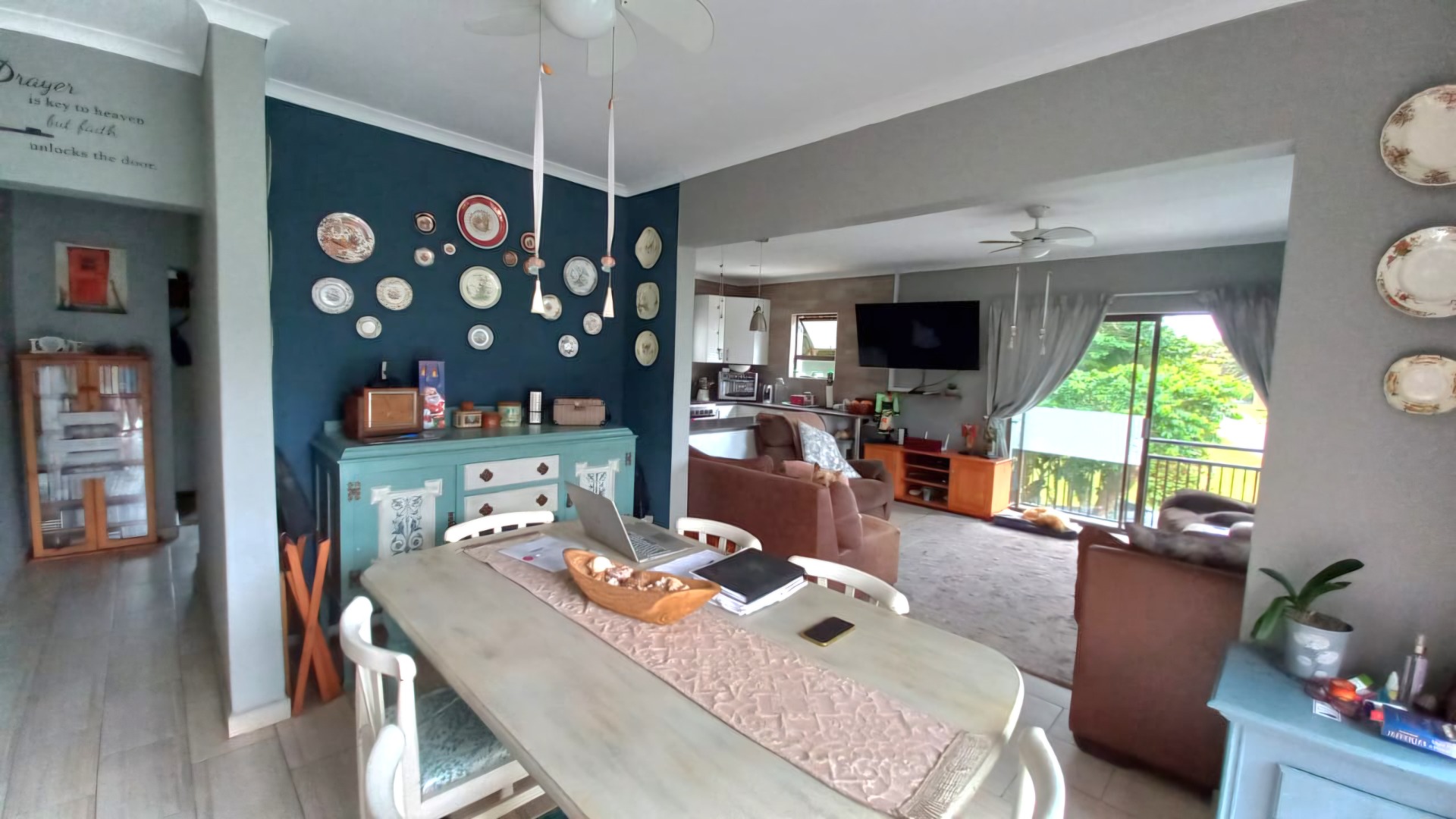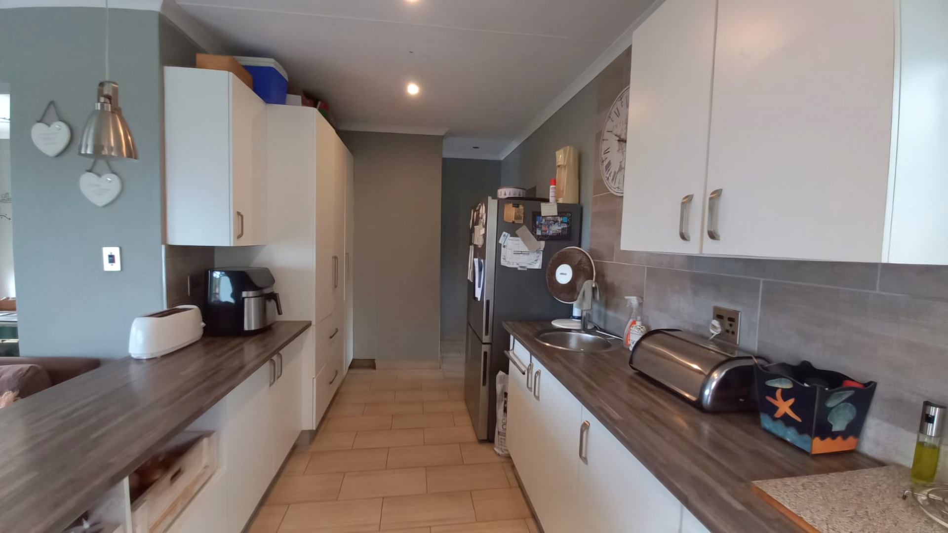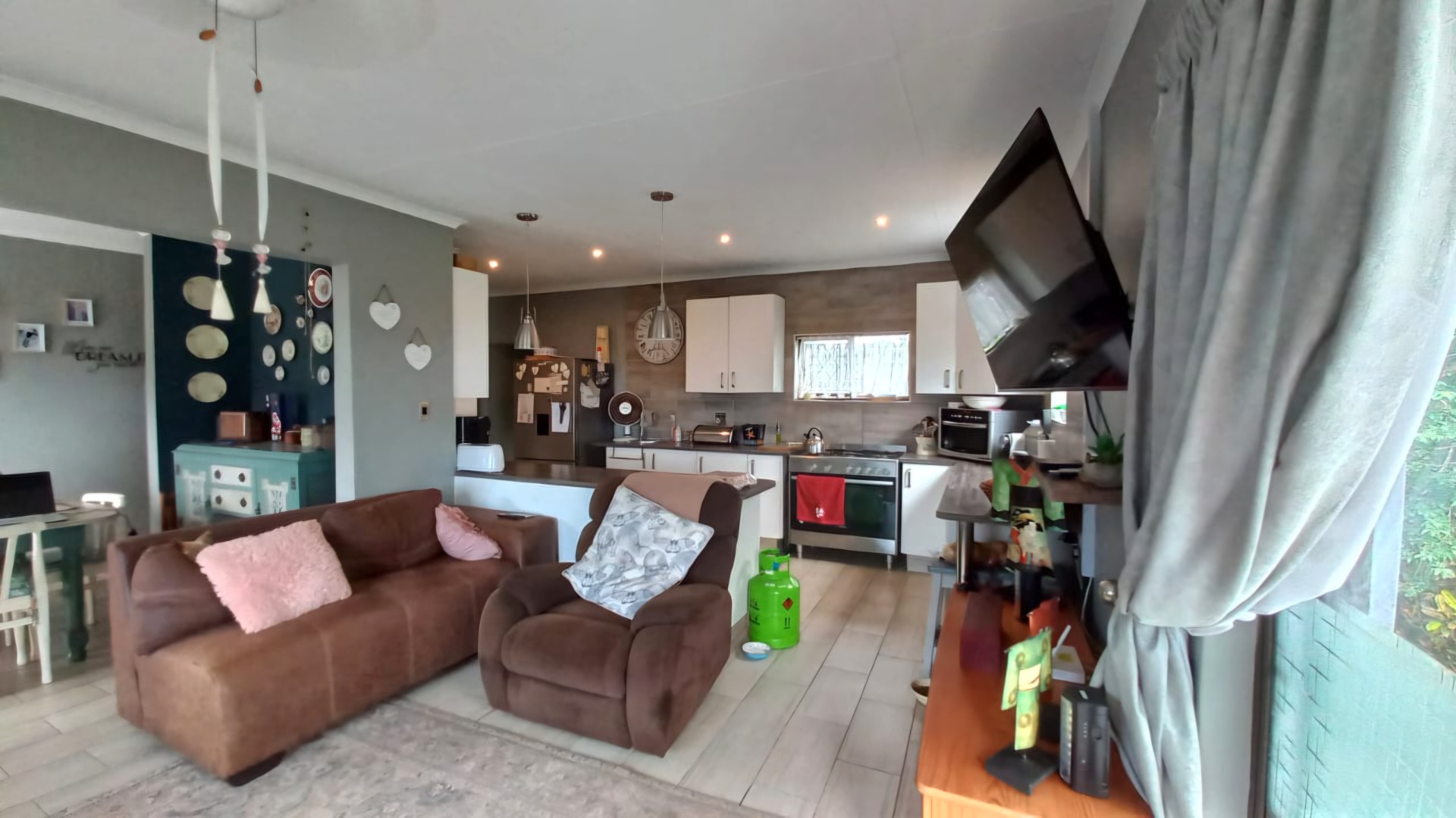 This lovely 4-bedroom home in Ramsgate welcomes you with its modern, two-story design and light grey exterior, beautifully framed by lush tropical landscaping. A spacious concrete driveway leads to a double garage, providing ample parking for your vehicles. Inside, you'll find a wonderfully open-plan living area that just feels right. The modern kitchen, featuring white cabinetry, dark wood-look countertops, and stainless steel appliances, flows seamlessly into the lounge and dining spaces, complete with a handy kitchen island/breakfast bar. Large sliding doors invite natural light and connect you to the outdoors, perfect for enjoying the coastal breeze. The home offers four comfortable bedrooms and two well-appointed bathrooms, including a convenient ensuite, ensuring everyone has their own private space. Step outside to discover your private oasis: a refreshing swimming pool and an inviting outdoor patio, perfect for entertaining or simply relaxing. From the upper-level balcony, you can catch glimpses of the distant ocean, adding a special touch to your coastal lifestyle. The generous 1205 sqm erf size provides plenty of room to enjoy the established tropical garden. Plus, there's a flatlet, offering fantastic flexibility for guests or potential rental income. For your peace of mind, the property is equipped with an alarm system, and it's pet-friendly too! This fantastic home is nestled in a charming coastal and suburban area within Margate, South Africa. It’s the perfect spot to embrace a relaxed beach lifestyle, with the ocean just a stone's throw away. Key Features: * 4 Bedrooms, 2 Bathrooms (1 En-suite) * Open-plan Living & Modern Kitchen * Double Garage & 3 Parking Spaces * Private Swimming Pool * Lush Tropical Garden * Outdoor Patio & Balcony * Distant Ocean Views * Alarm System * Pet-Friendly * Includes a Flatlet