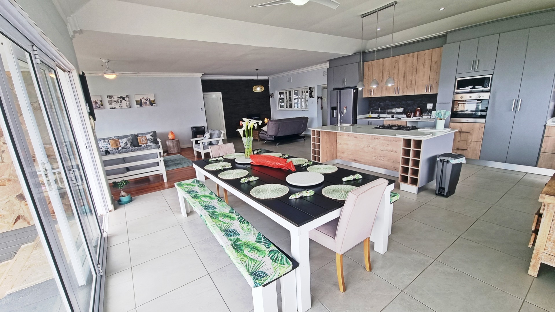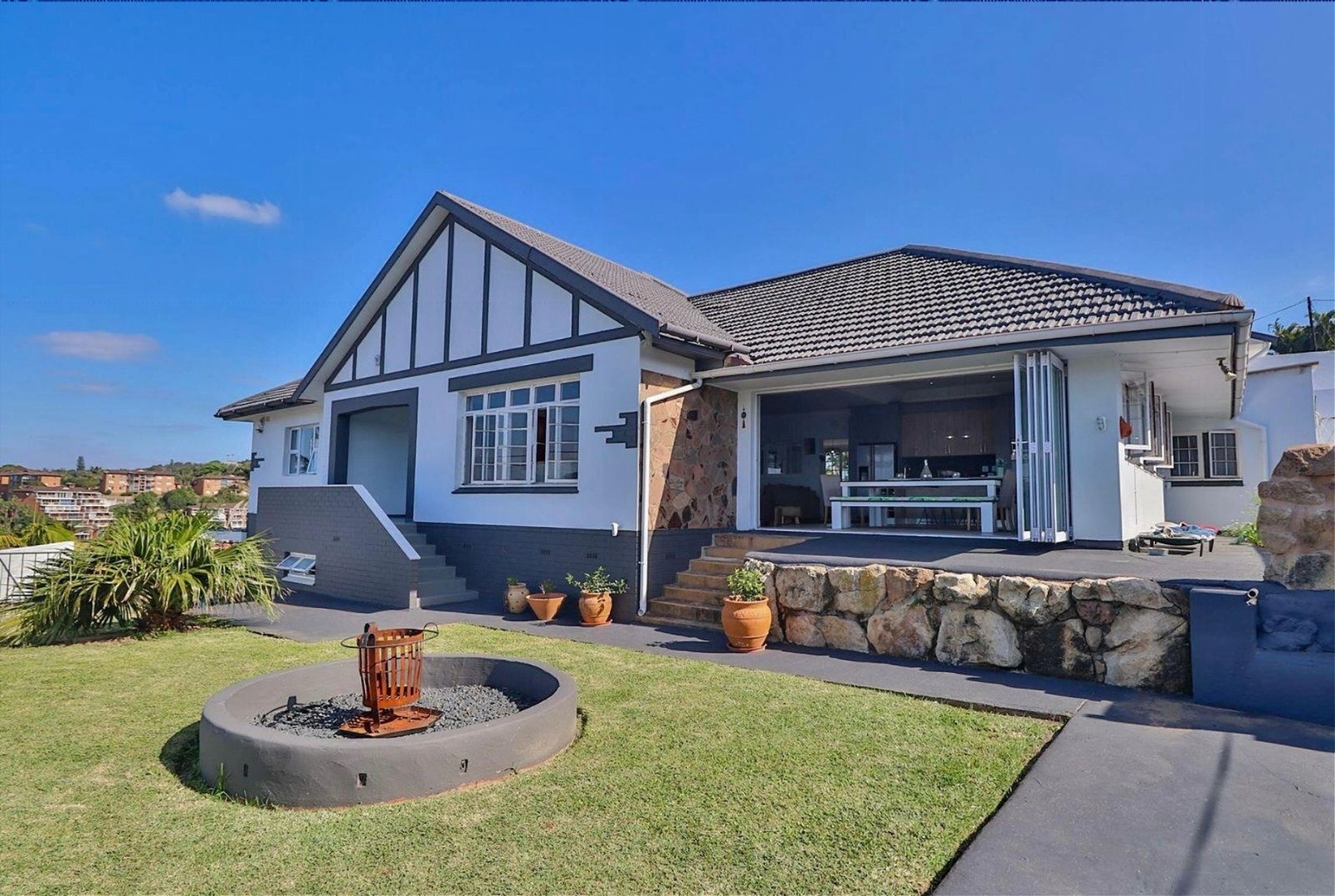 7. Built-in braai with stone outdoor seating as well as a fire-pit off the dining area.