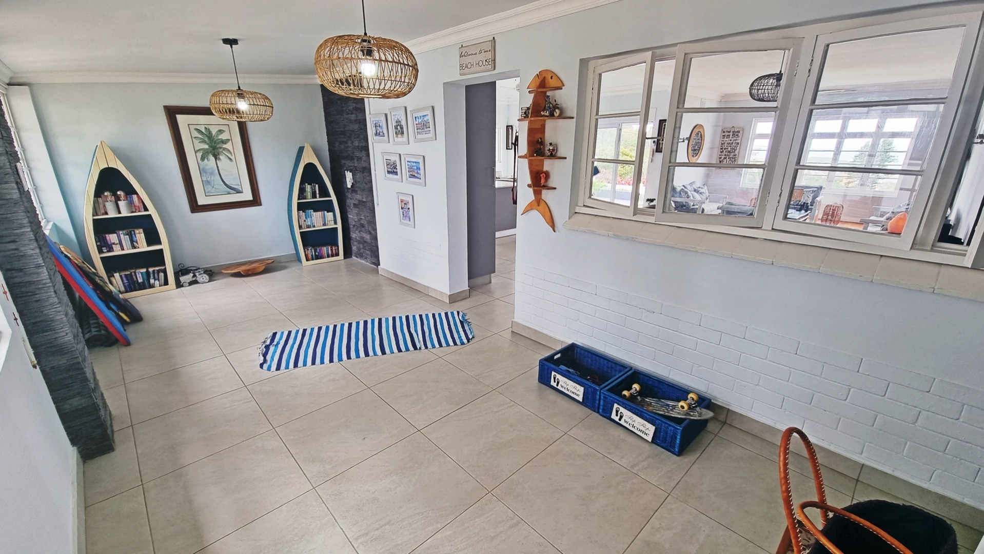 12. Natural stone cladding in the sunroom, kitchen and tv room.