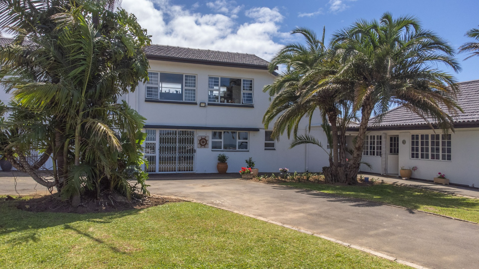 Simply gorgeous entertainer's delight in a cul-de-sac in the sought-after coastal town of Ramsgate! The front of this historical property built by German builder Gerry Bunge has spectacular sea views of the main Ramsgate beach, while the side of the property has beautiful views of the hillside and lagoon. Minutes to the beach, fine dining, shopping and entertainment. This luxurious, newly restored family home nestled in beautiful, landscaped gardens is move-in ready! This magnificent four-bedroom main home is luxuriously tiled in the living areas while the bedrooms and part of the lounge have the old-world charm of the original Oregon Pine flooring that has been sanded down and re-stained to preserve the character and integrity of the house. You will find features that take you back in time throughout the property – such as the restored butler basin in the laundry, the antique basin in the upstairs cottage and the lion’s head brass knocker near the entrance to the sunroom. The open plan kitchen is a chef’s delight with a large centre island and beautiful Caesarstone countertops. The beautifully renovated bathrooms will take your breath away.