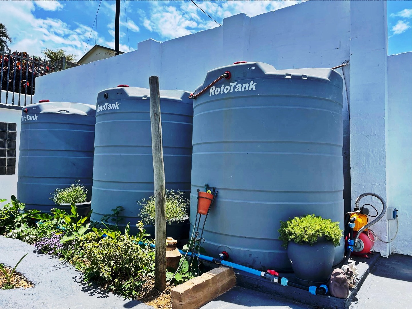 10. Three 5000L water tanks and pump