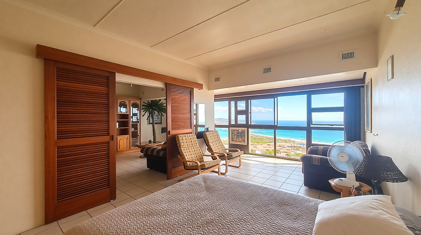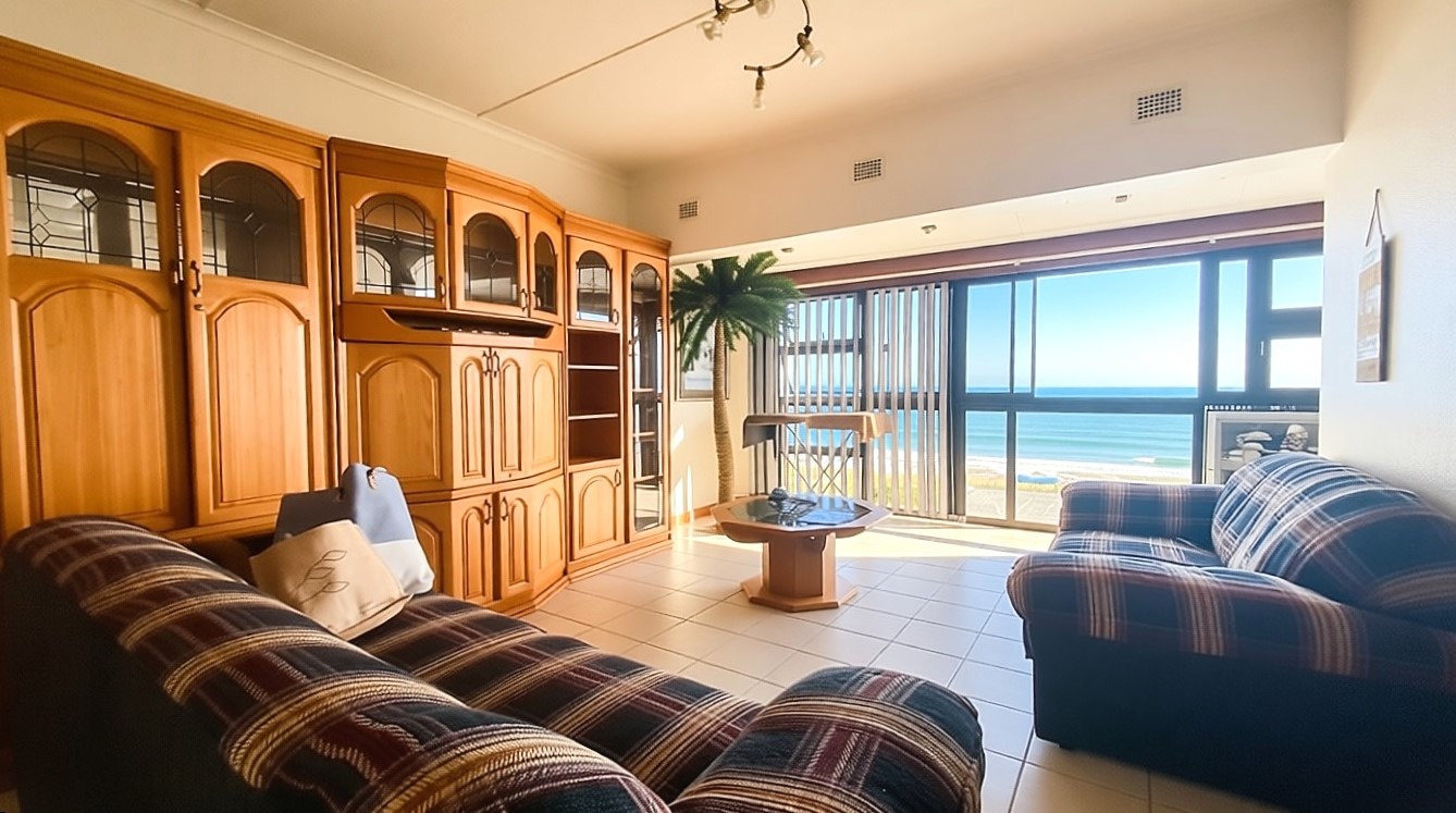 As part of a complex, residents have access to a refreshing communal pool and a dedicated braai area, perfect for outdoor entertaining. The property includes two convenient parking spaces, enhancing the ease of coastal living. Security features include an access gate, burglar bars, and a totally walled perimeter, providing peace of mind. The complex also benefits from water tanks, contributing to water resilience. The undeniable highlight of this apartment is its breathtaking panoramic sea and scenic views, visible from multiple rooms, creating an idyllic coastal retreat.