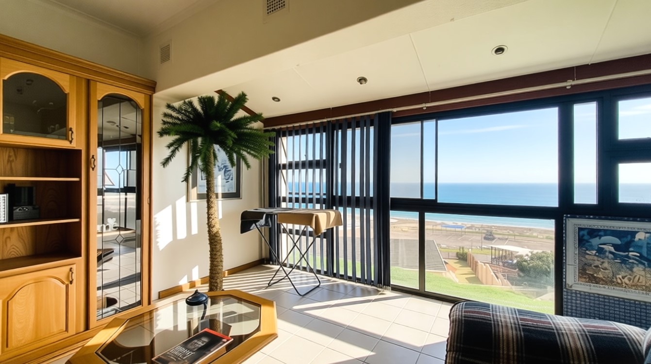 This 82 sqm apartment offers an open-plan living experience, seamlessly connecting the kitchen, lounge, and dining areas. Enjoy abundant natural light and direct, expansive ocean views from the spacious lounge, which features durable tiled flooring. The functional kitchen is equipped with ample built-in cabinetry, providing practical storage solutions. The property is offered fully furnished, ensuring a hassle-free move-in.