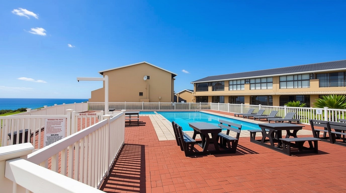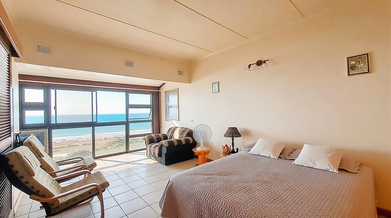 As part of a complex, residents have access to a refreshing communal pool and a dedicated braai area, perfect for outdoor entertaining. The property includes two convenient parking spaces, enhancing the ease of coastal living. Security features include an access gate, burglar bars, and a totally walled perimeter, providing peace of mind. The complex also benefits from water tanks, contributing to water resilience. The undeniable highlight of this apartment is its breathtaking panoramic sea and scenic views, visible from multiple rooms, creating an idyllic coastal retreat.