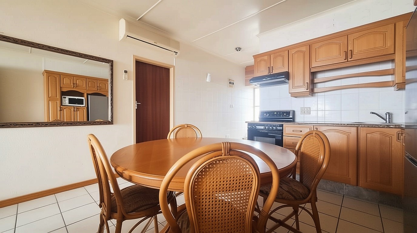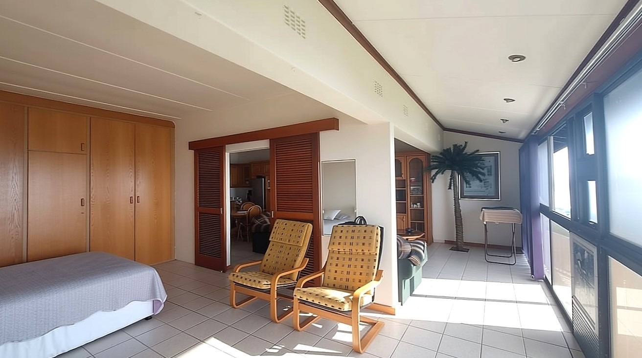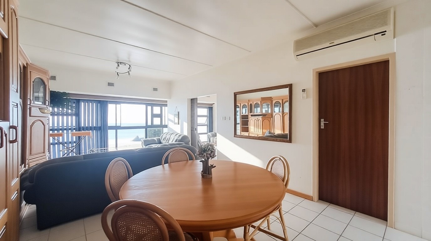 This 82 sqm apartment offers an open-plan living experience, seamlessly connecting the kitchen, lounge, and dining areas. Enjoy abundant natural light and direct, expansive ocean views from the spacious lounge, which features durable tiled flooring. The functional kitchen is equipped with ample built-in cabinetry, providing practical storage solutions. The property is offered fully furnished, ensuring a hassle-free move-in.