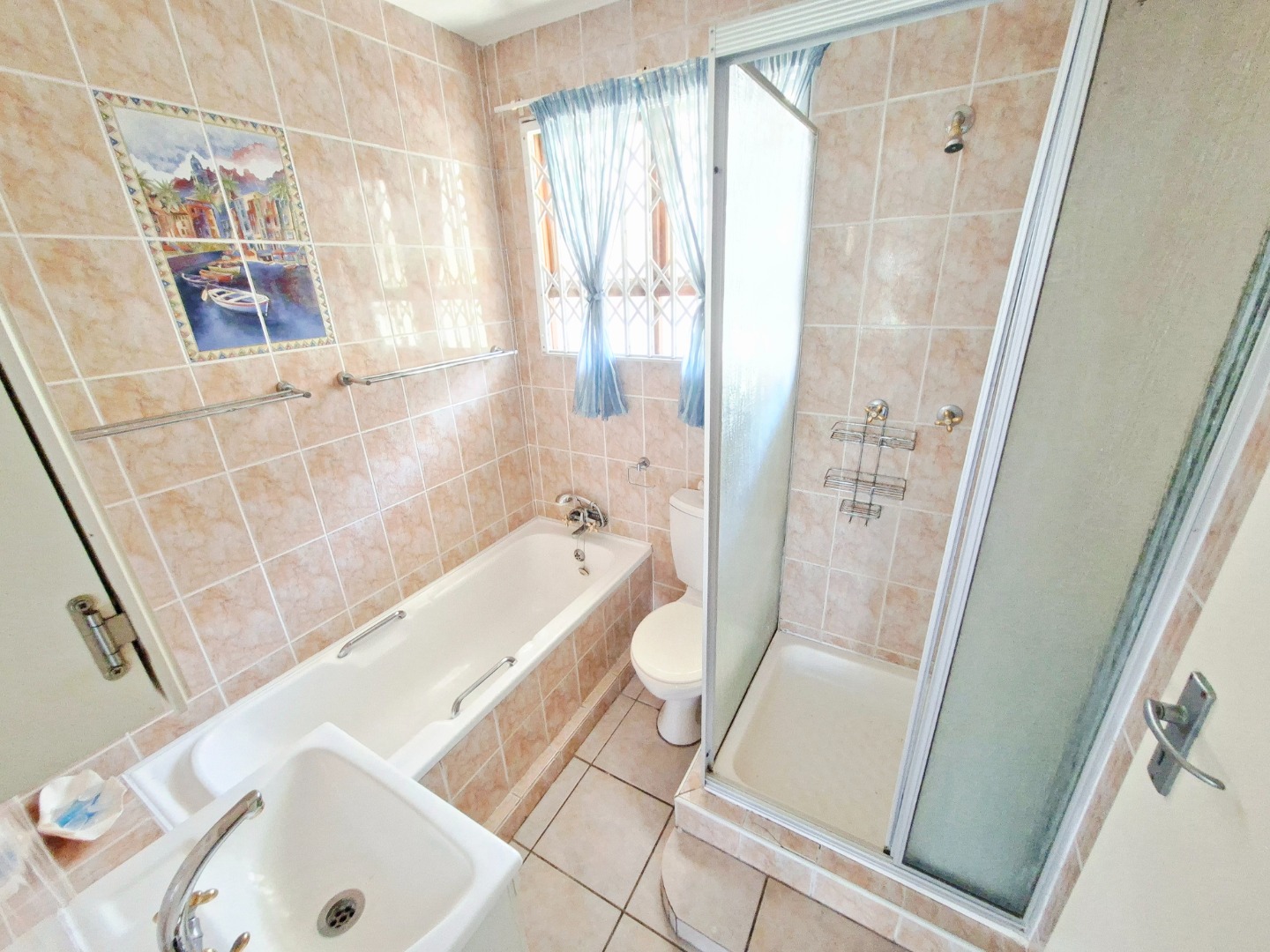 This apartment comprises two comfortable bedrooms and one well-appointed bathroom. The bedrooms are bright, featuring tiled floors and ceiling fans, with one offering direct access to an outdoor patio. Security is paramount, with security gates on sliding doors, burglar bars on windows, an access gate, and a security post providing peace of mind. The property is also wheelchair friendly.