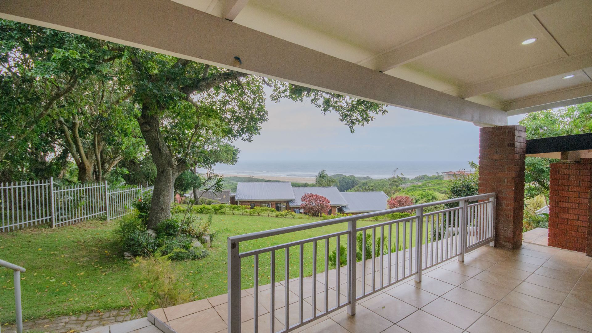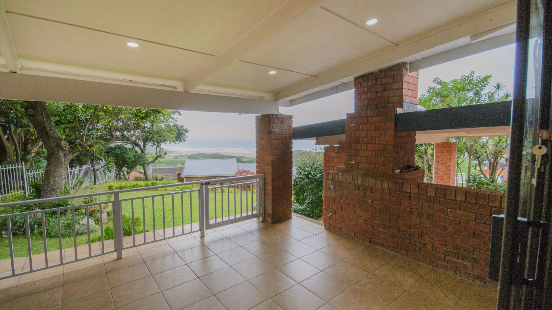 You enter the property onto a tiled patio with a built in braai and a lovely outlook over the ocean. This space works well for relaxed outdoor living and entertaining while enjoying the coastal setting.